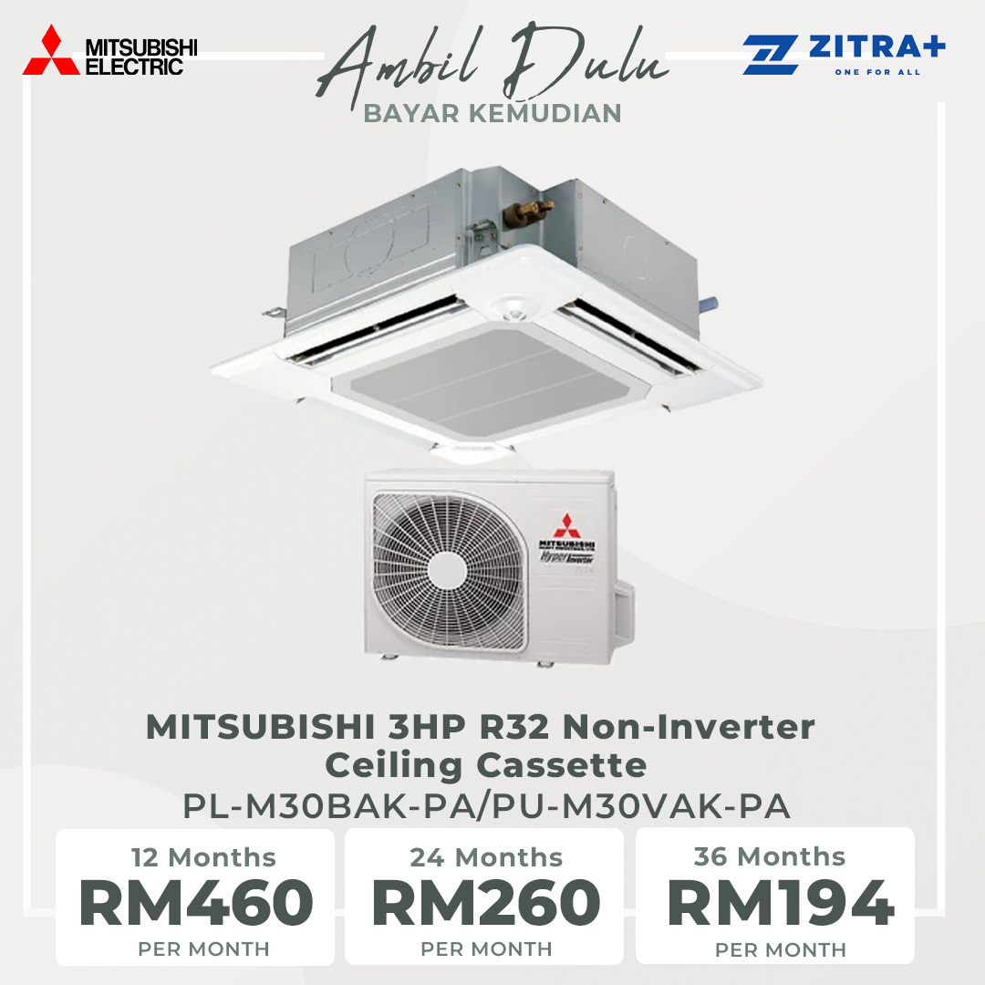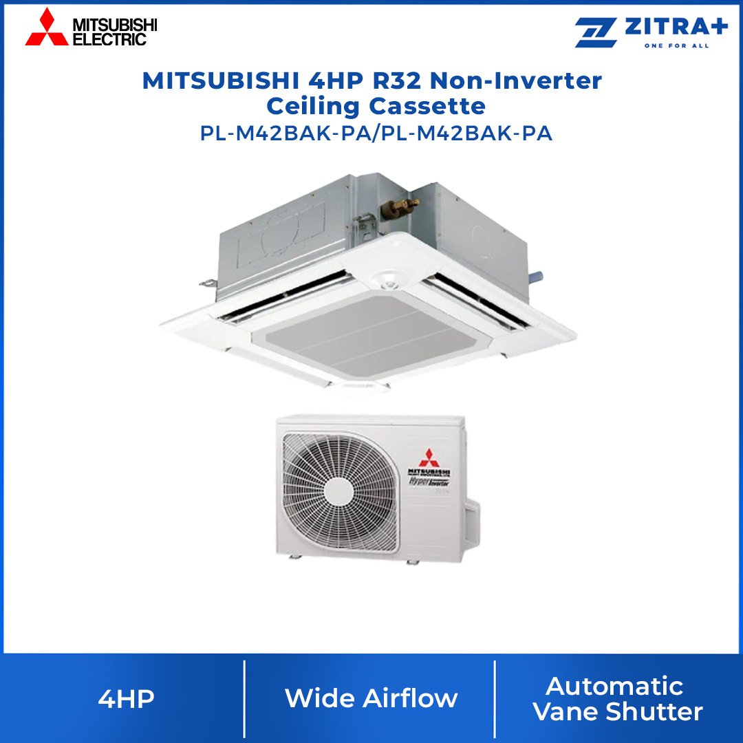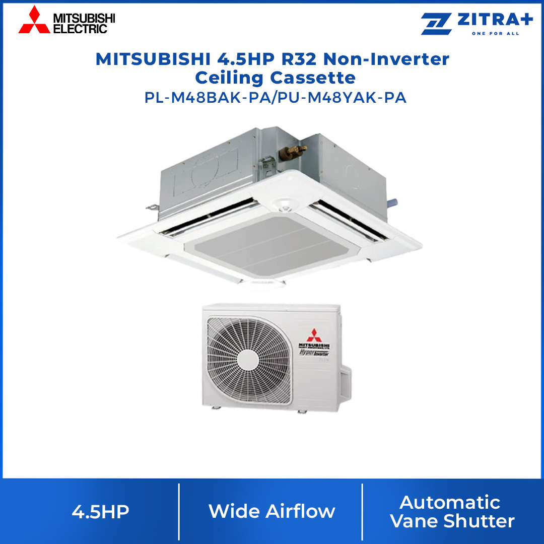 MITSUBISHI R32 Non-Inverter Ceiling Cassette | Wide Airflow | Quiet Operation | Blue Fin Condenser | I-See Sensor | Air Conditioner with 1 Year Warranty
