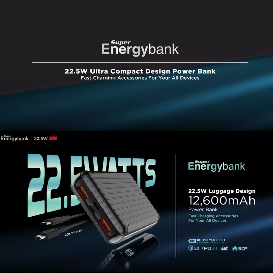 mYmosh 12600mAh 22.5W Luggage Design Power Bank | Digital Display | Qualcomm Quick Charge 5.0 | Fast Charging | Powerbank with 1 Year Warranty