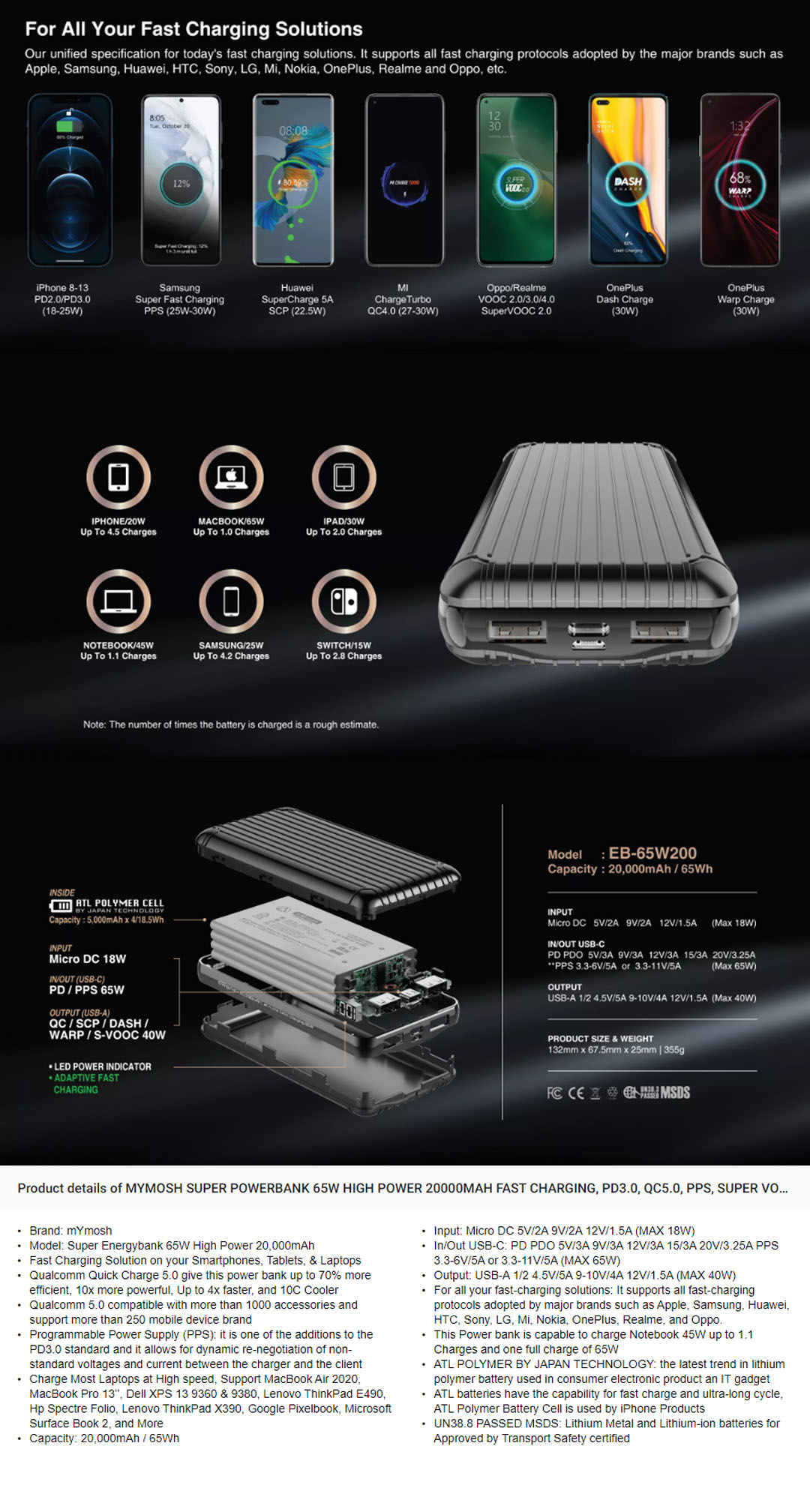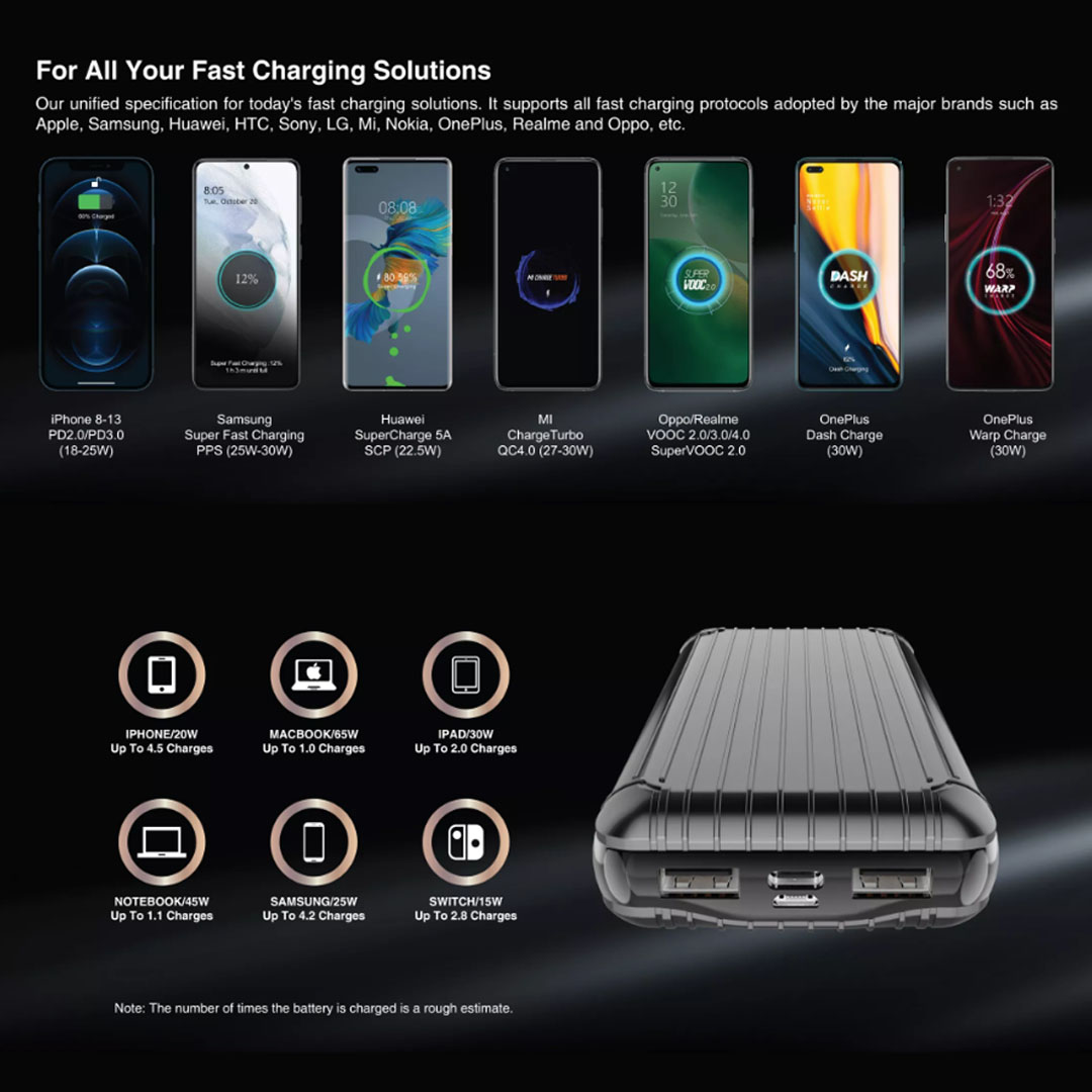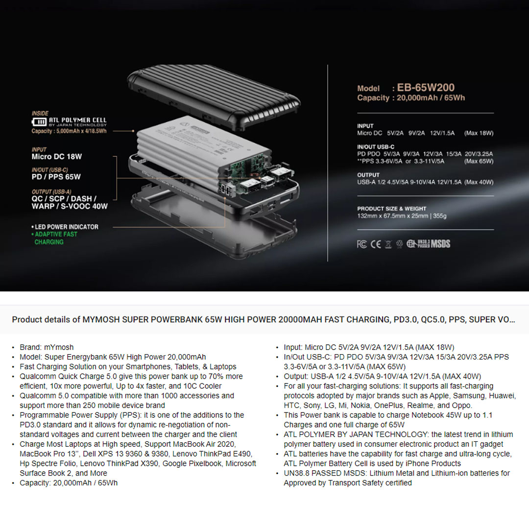 mYmosh 20000mAh 65W High Power Super All in One Power Bank | Digital Display | Qualcomm Quick Charge 5.0 | Fast Charging | Powerbank with 1 Year Warranty