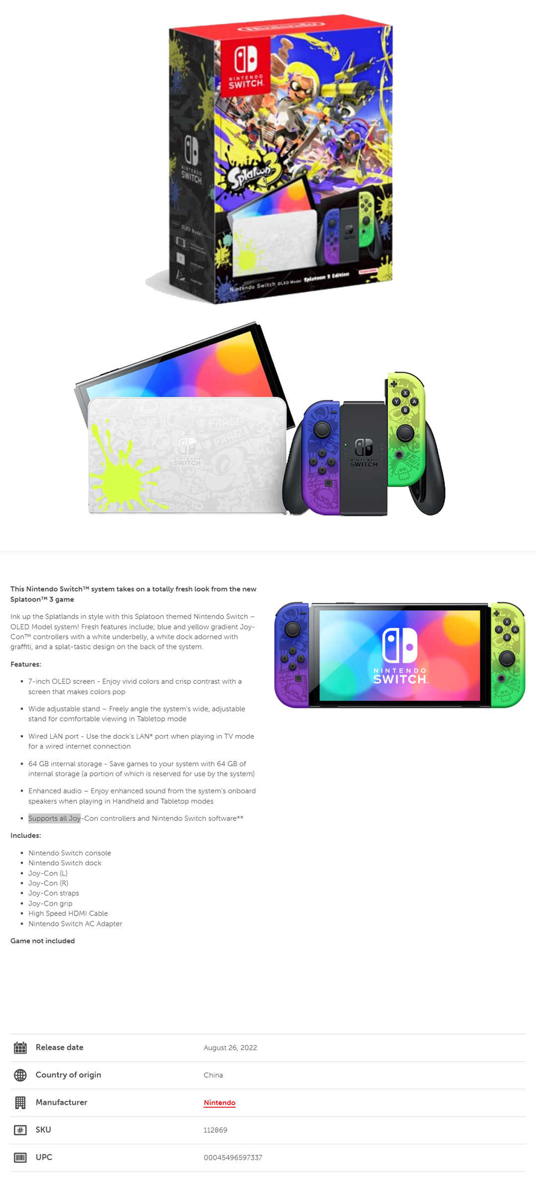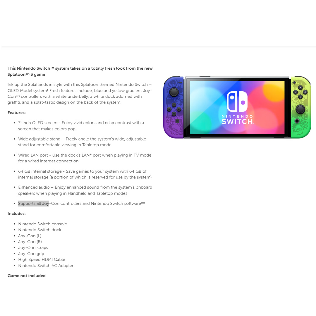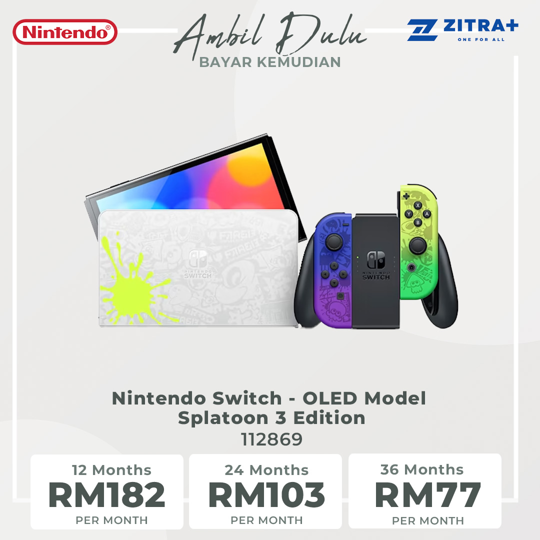 Nintendo Switch - OLED Model Splatoon 3 Edition (Global Edition) 112869 | Wide Adjustable Stand | TV Mode | Tabletop Mode | Handheld Mode | Consoles with 1 Year Warranty