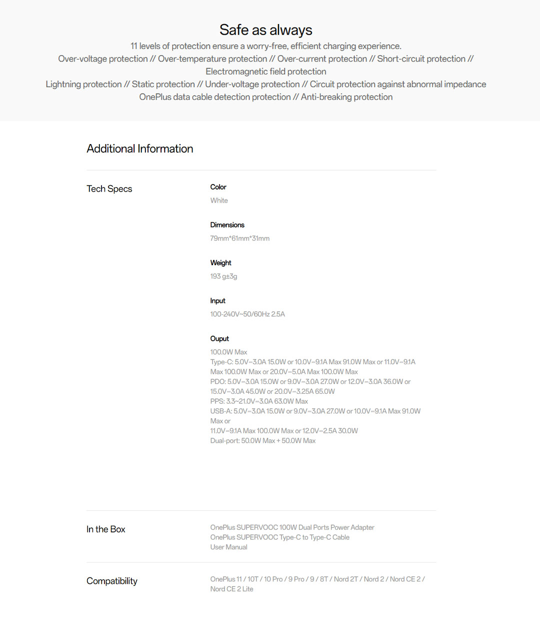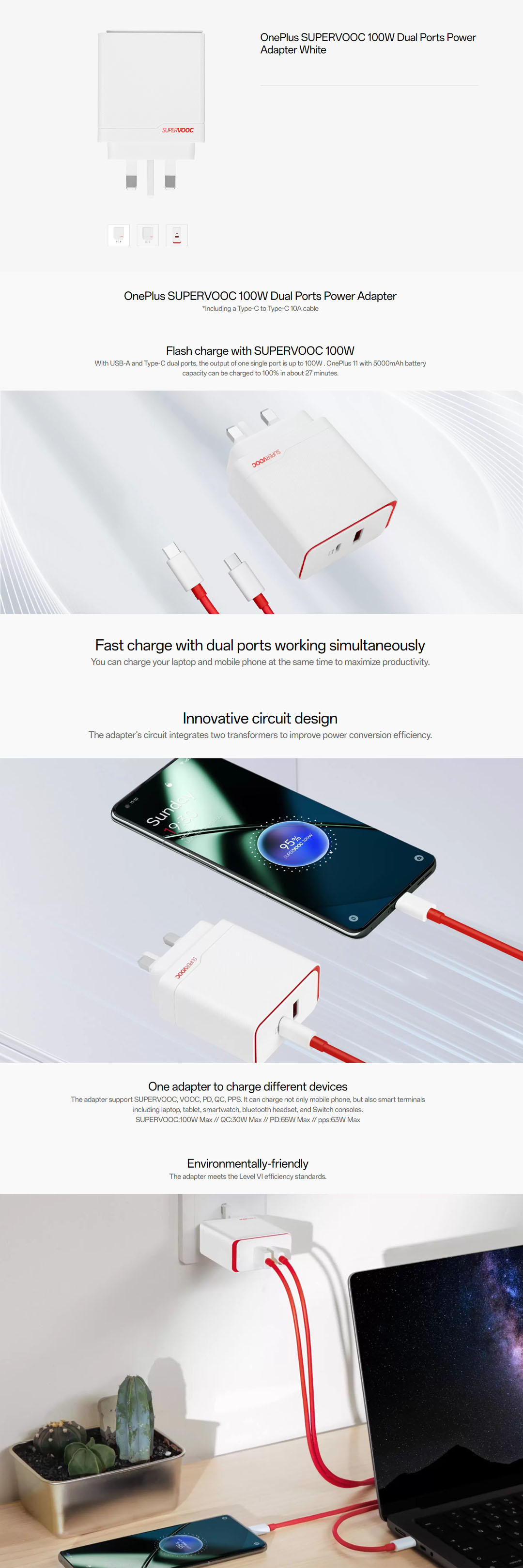 OnePlus 100W SUPERVOOC Power Adapter (Kit) VCBAOBYH | 5000mAh | Fast charge | Innovative circuit design | 11 levels of protection | Power Adapter with 1 Year Warranty