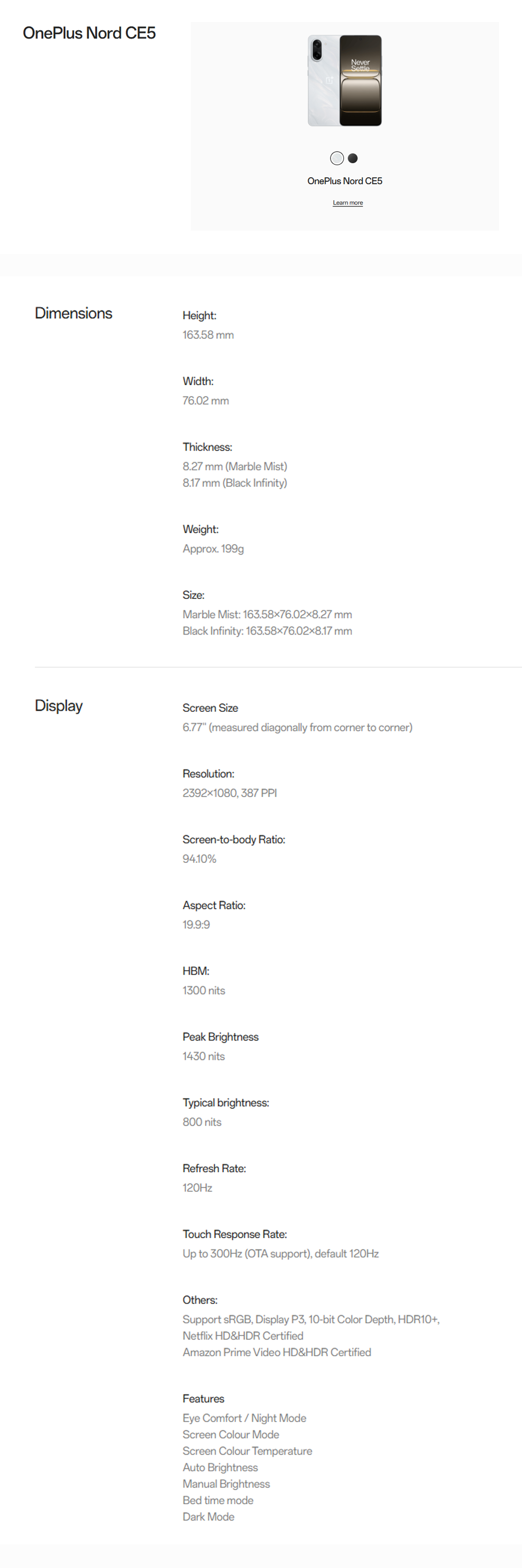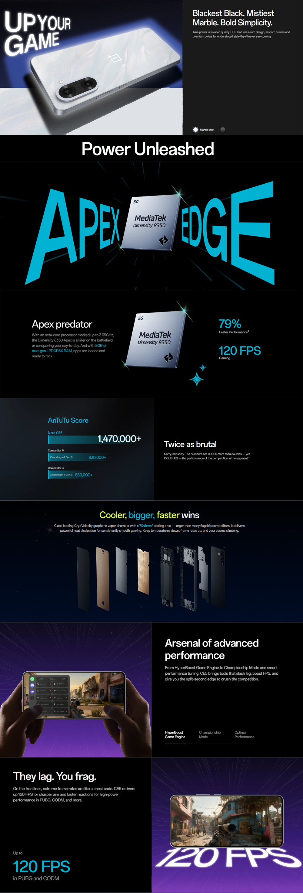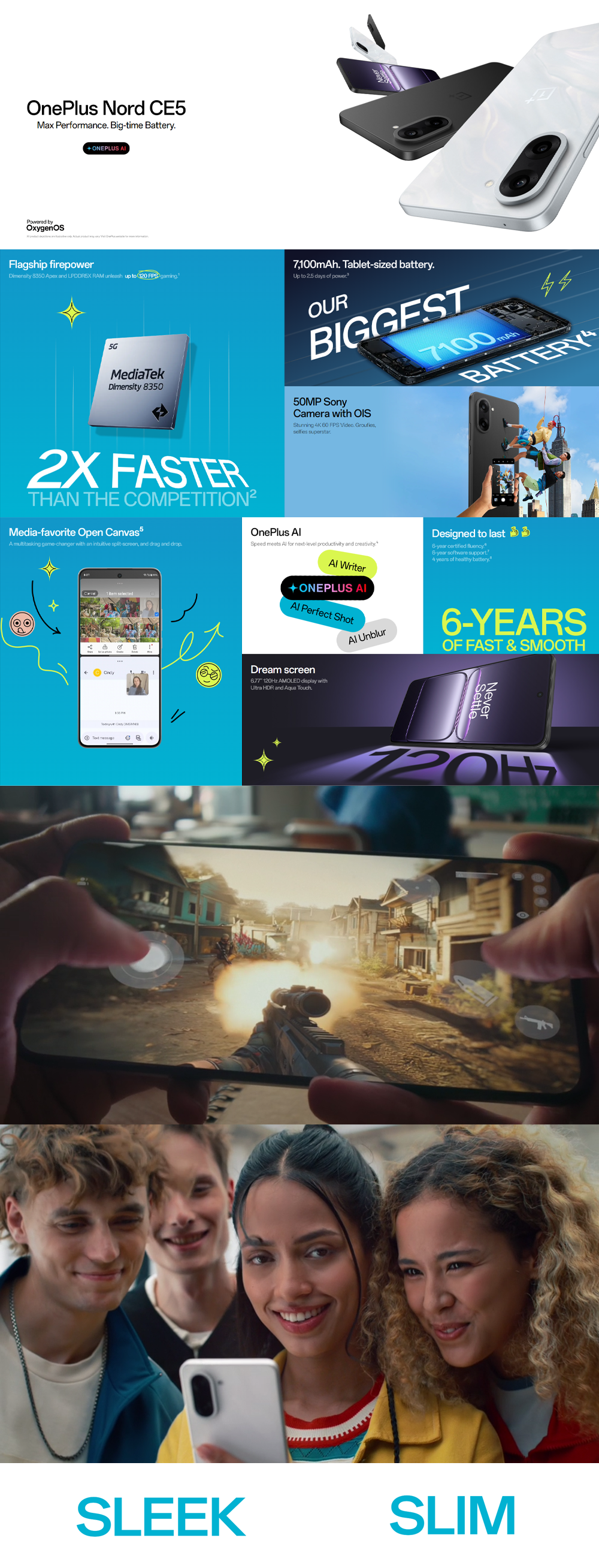 OnePlus Nord CE5 8GB+256GB | 6.67 inch | 50MP Rear Camera | Mediatek Dimensity 8350 Apex (4 nm) | Android 15, ColorOS 15