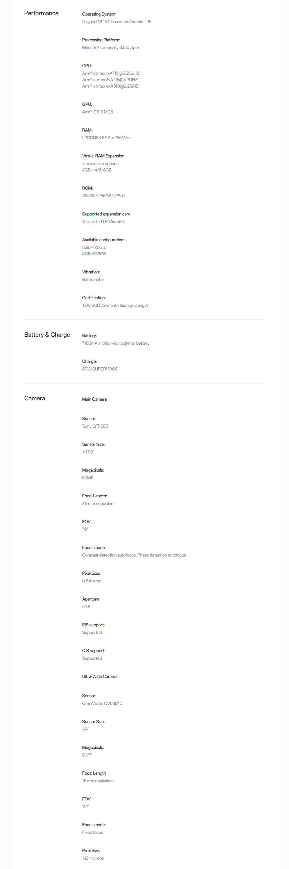 ▪ Processor Type : Mediatek Dimensity 8350 Apex (4 nm)