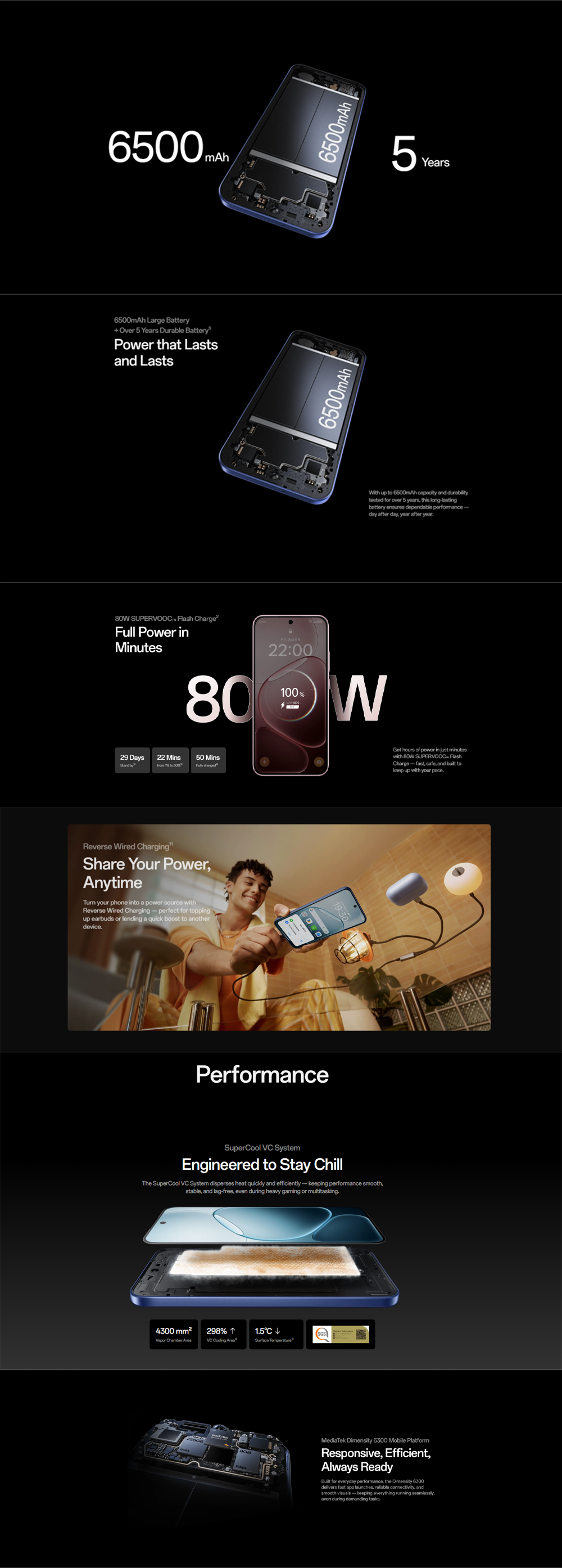▪ Battery Capacity(mAh): Li-Po 6500mAh,Fast charging 80W