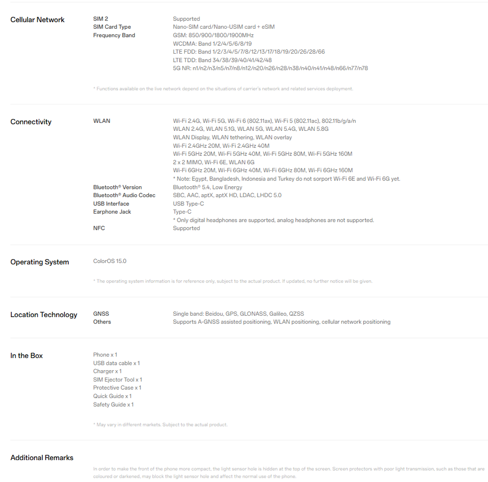 • Operating System : Android 15, ColorOS 15