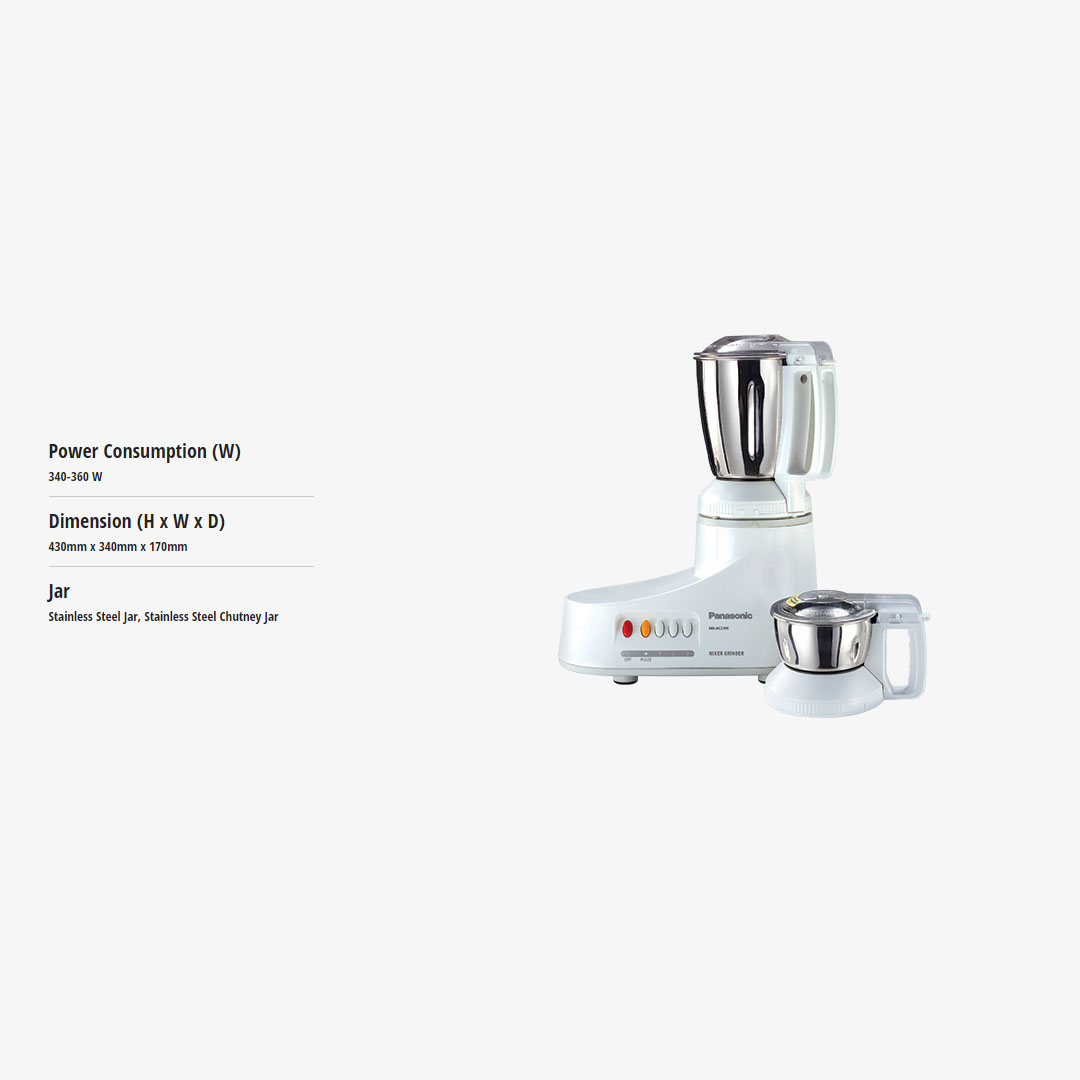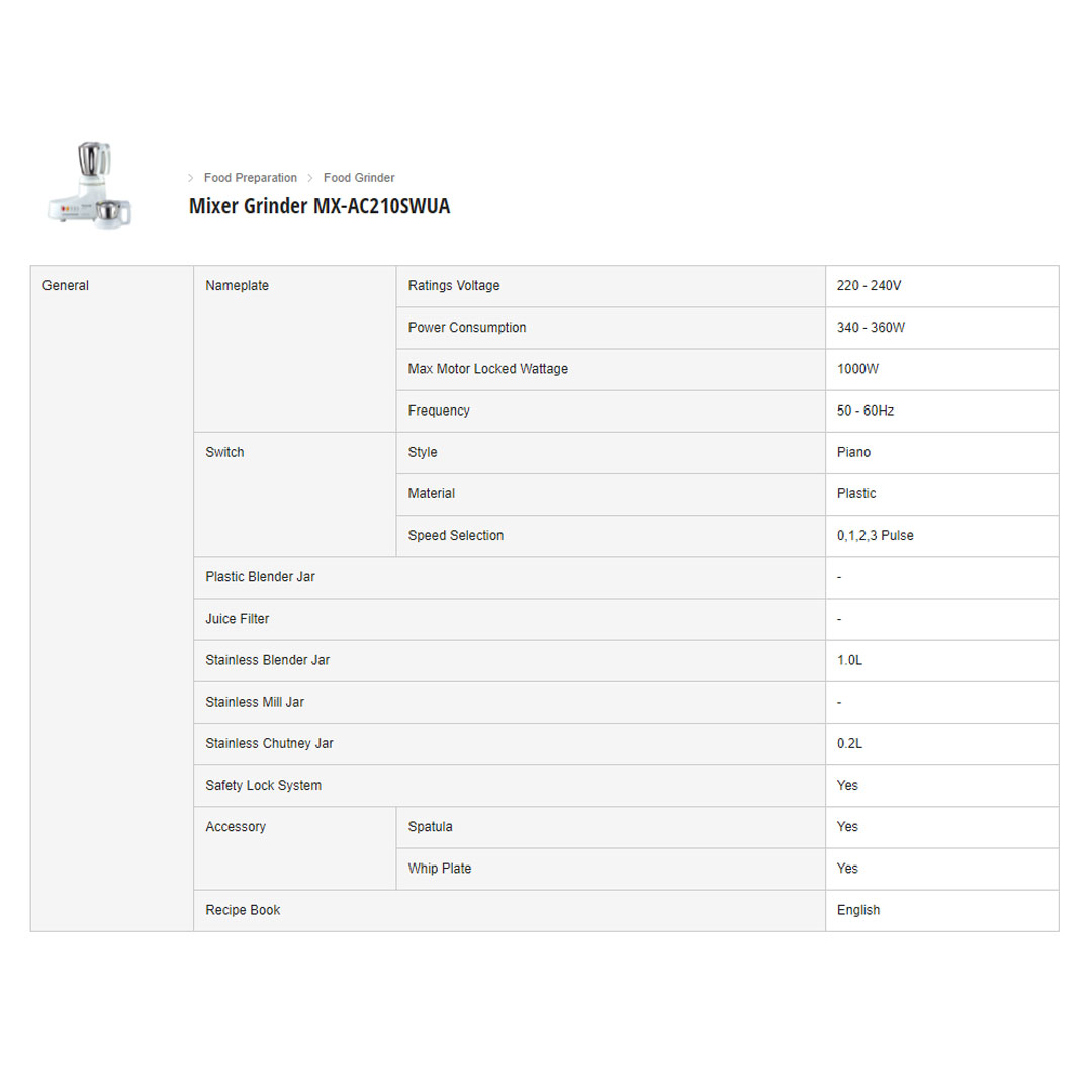 Panasonic 1.0L Mixer Grinder MX-AC210SWUA | Ultra Safe | Easy to Use | Safety Lock System | Grinders with 1 Year Warranty