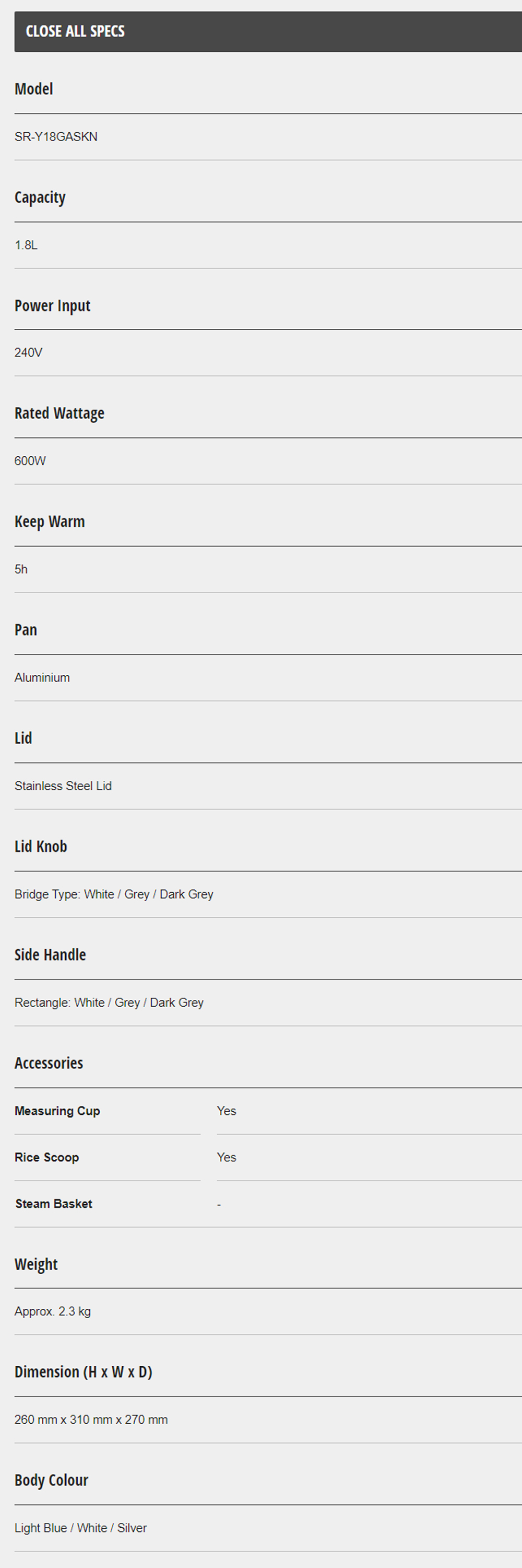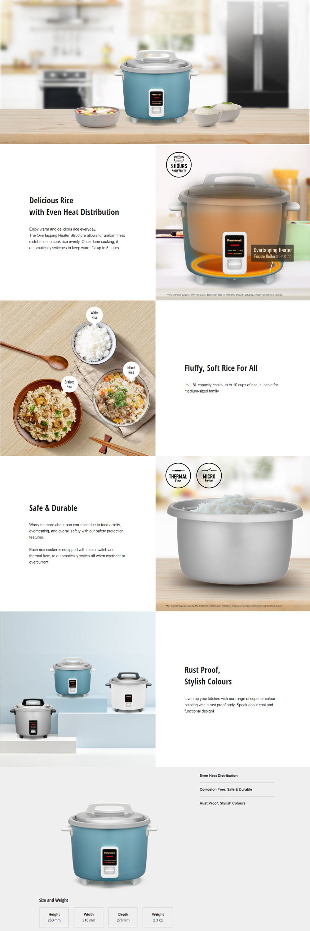 Panasonic 1.8L Conventional Rice Cooker SR-Y18GWSKN/ SR-Y18GASKN/ SR-Y18GLSKN | Micro switch & Thermal fuse | Rust Proof