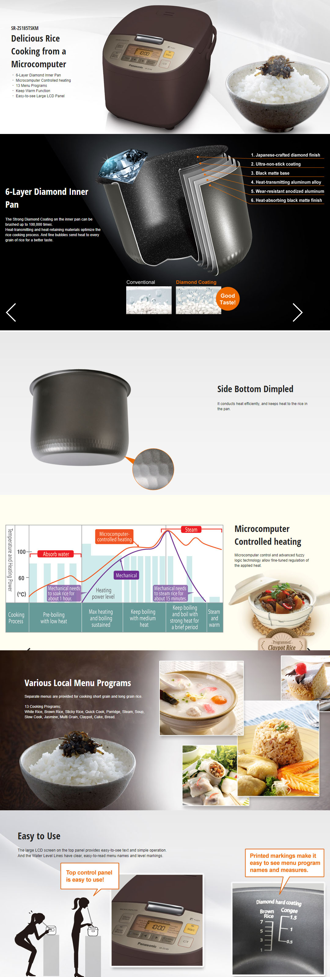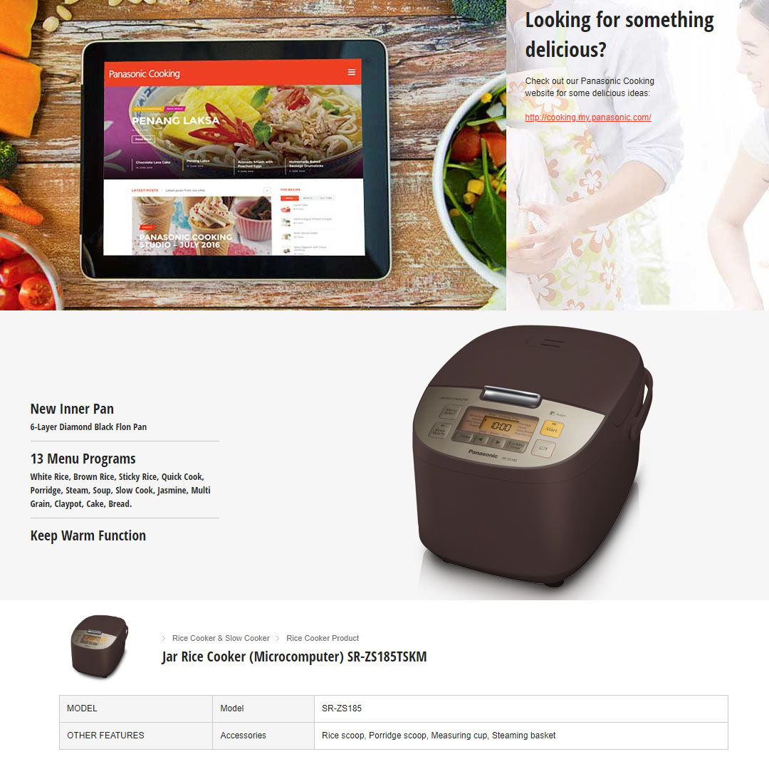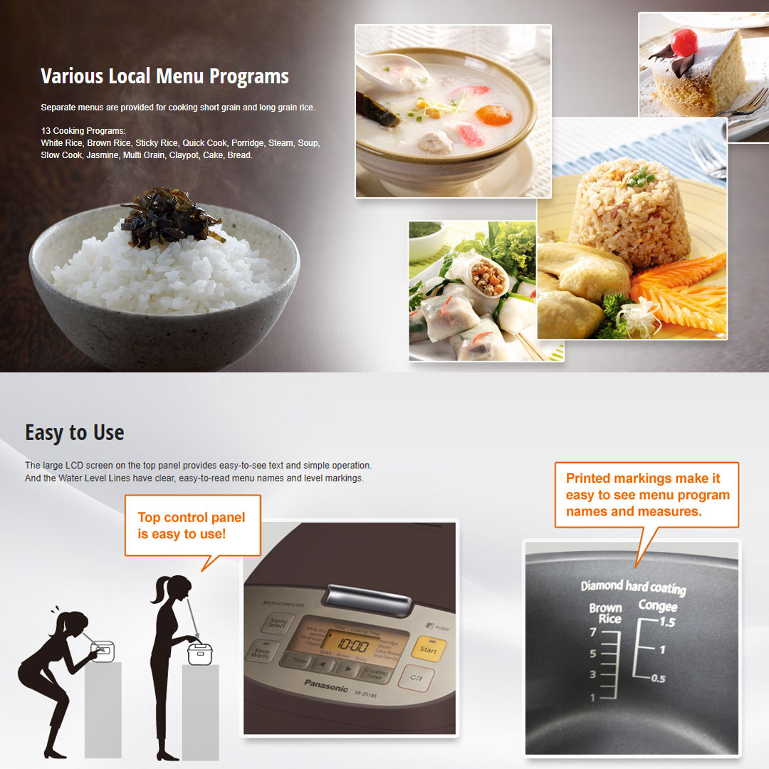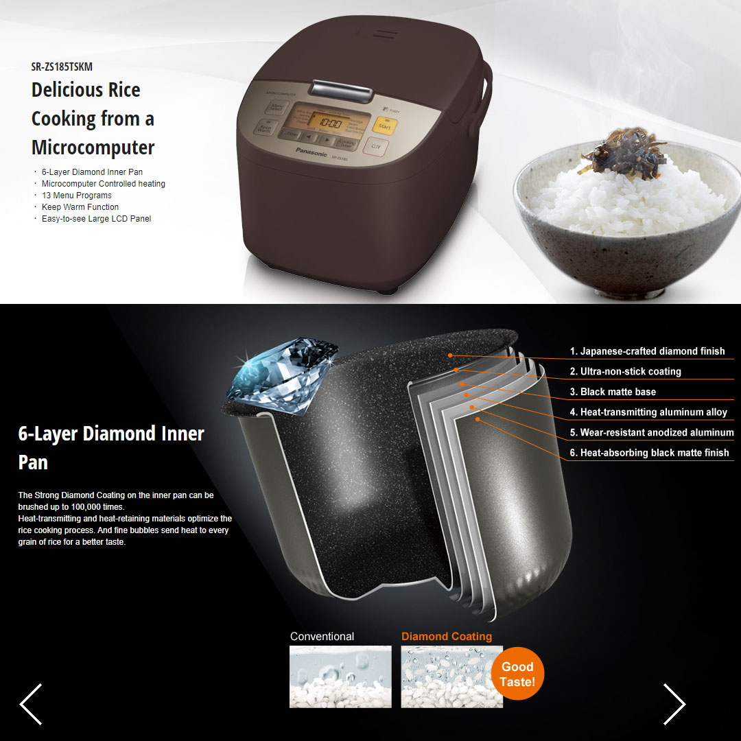 Panasonic 1.8L Jar Rice Cooker SR-ZS185TSKM | 6-Layer Diamond Inner Pan | Keep Warm Function | Side Bottom Dimpled | Rice Cookers with 1 Year Warranty