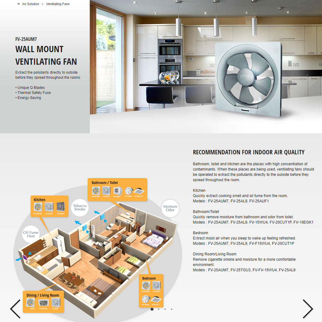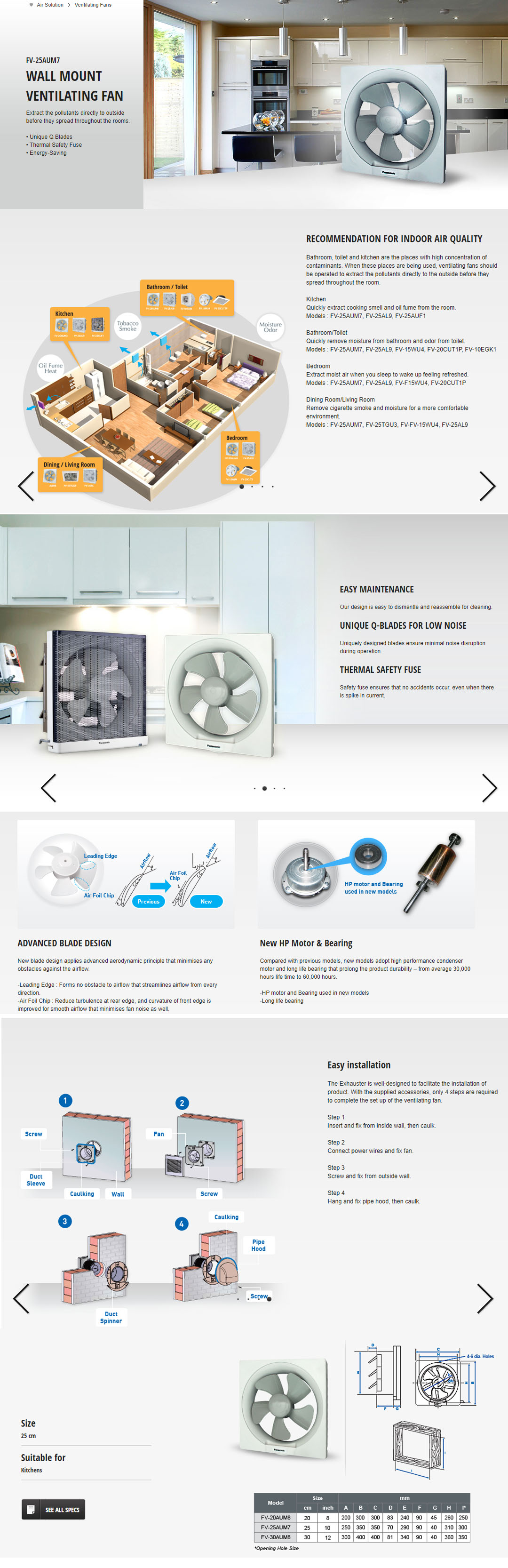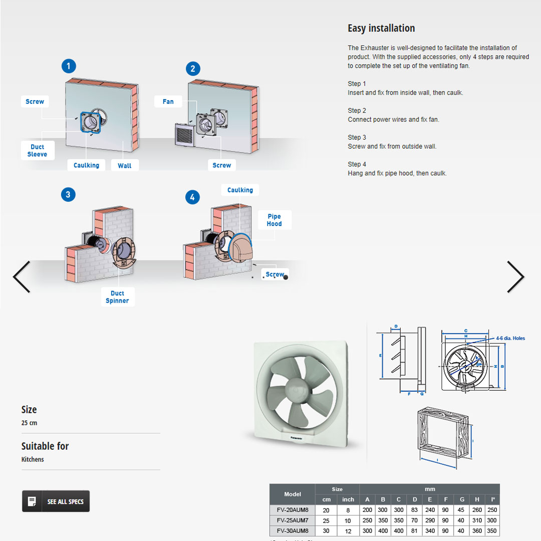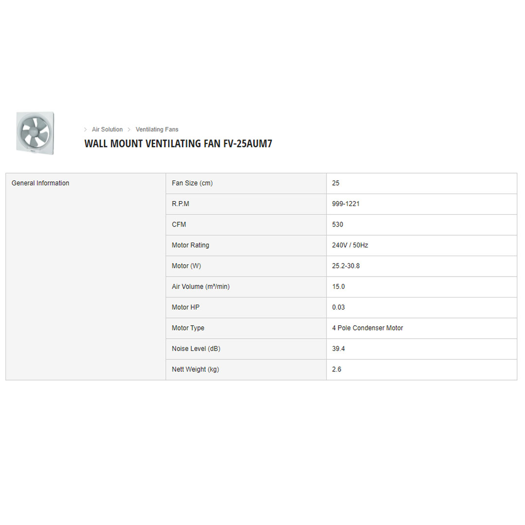 Panasonic 10" Wall Mount Ventilation Fan FV-25AUM7 | Unique Q Blades | Thermal Safety Fuse | Energy-Saving | Ventilation Fan with 1 Year Warranty