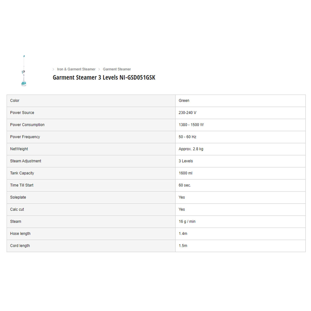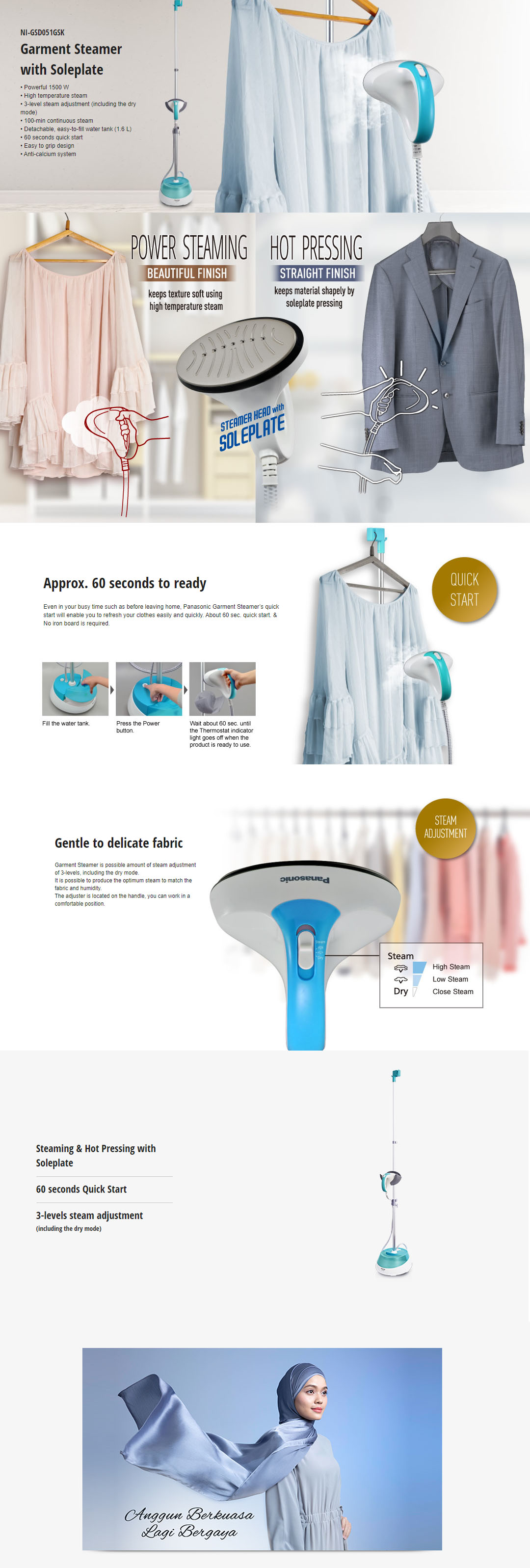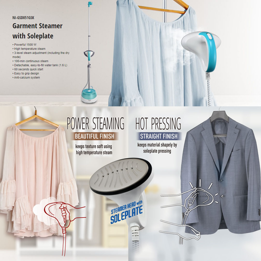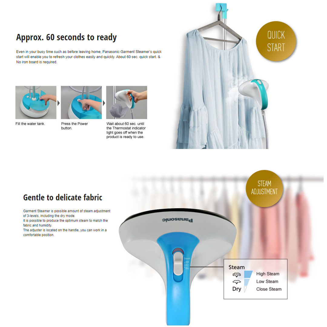 Panasonic 1500W Garment Steamer NI-GSD051GSK | High Temperature Steam | 60 seconds Quick Start | Easy to Grip Design | Garment Steamers with 1 Year Warranty