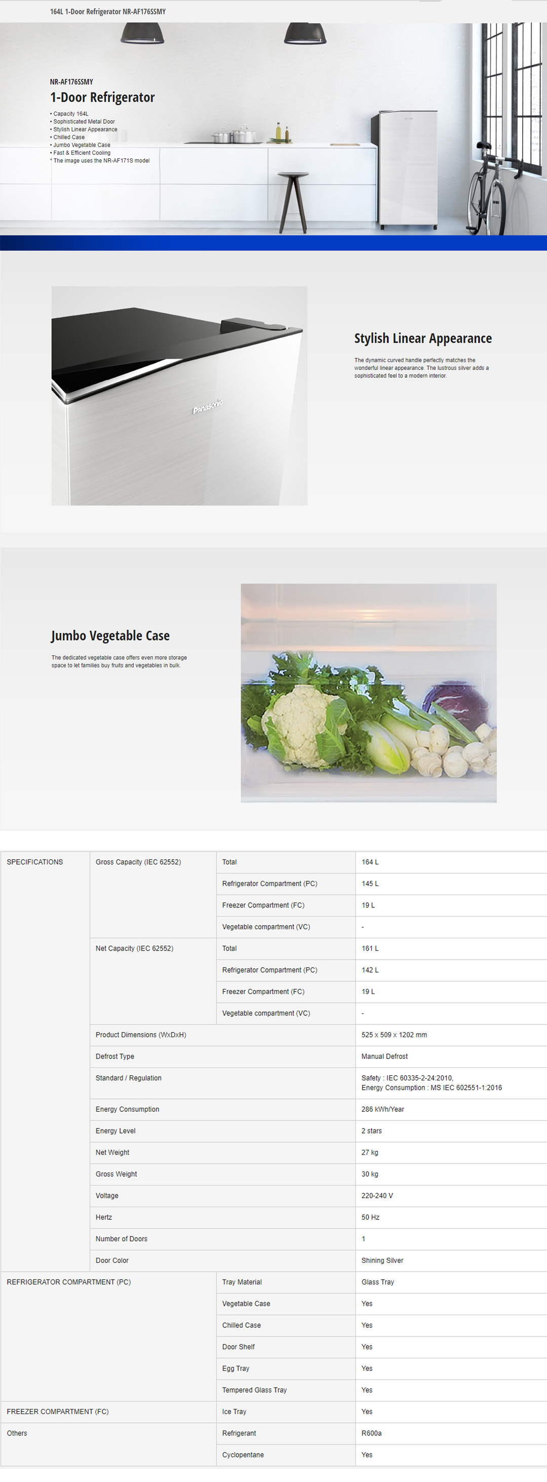 Panasonic 164L Single Door Top Mount Inverter Refrigerator with AI ECONAVI NR-AF176SSMY | Stylish Linear Appearance | Jumbo Vegetable Case | Fast & Efficient Cooling | Refrigerator With 1 Year Warranty