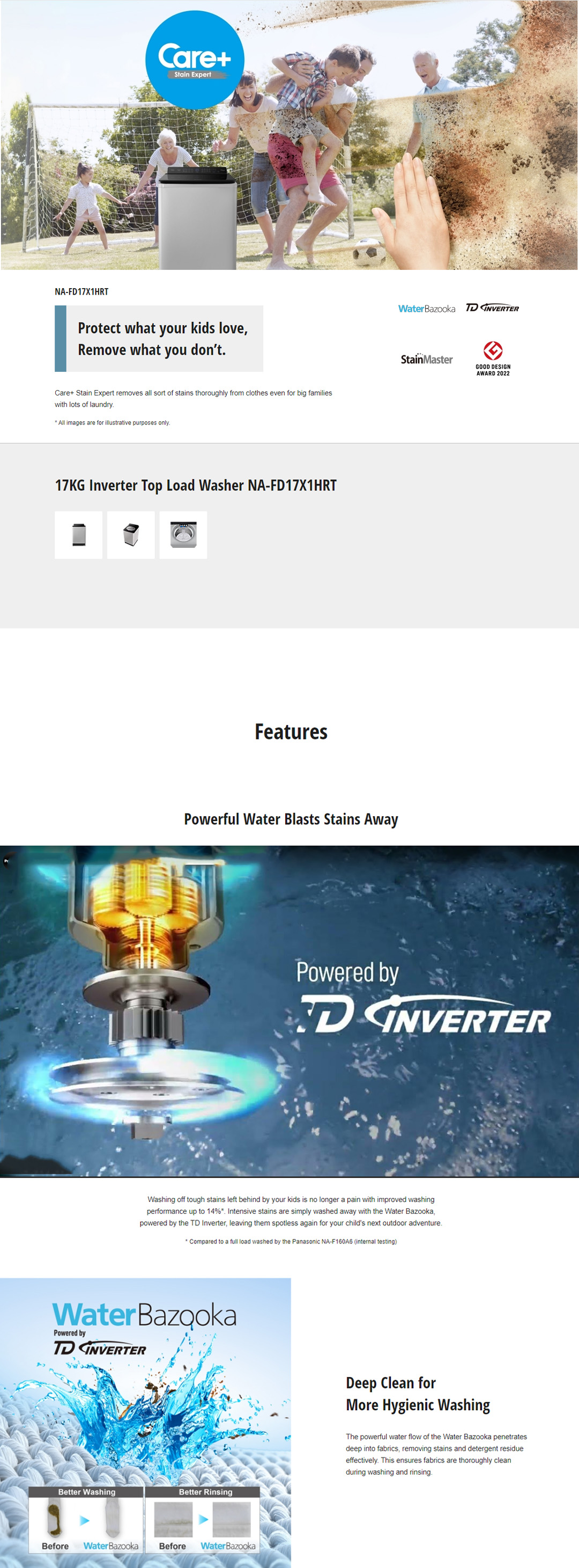 Panasonic 17KG Top Load Washing Machine NA-FD17X1HRT | Fine Foam to Lift Stains Easily | Powerful Water Blasts Stains Away | Deep Clean for More Hygienic Washing | Powerful Wash with Less Energy | Washing Machine with 1 Year Warranty