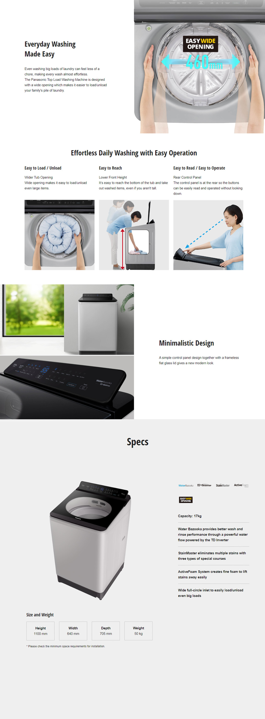 • Effortless Daily Washing with Easy Operation