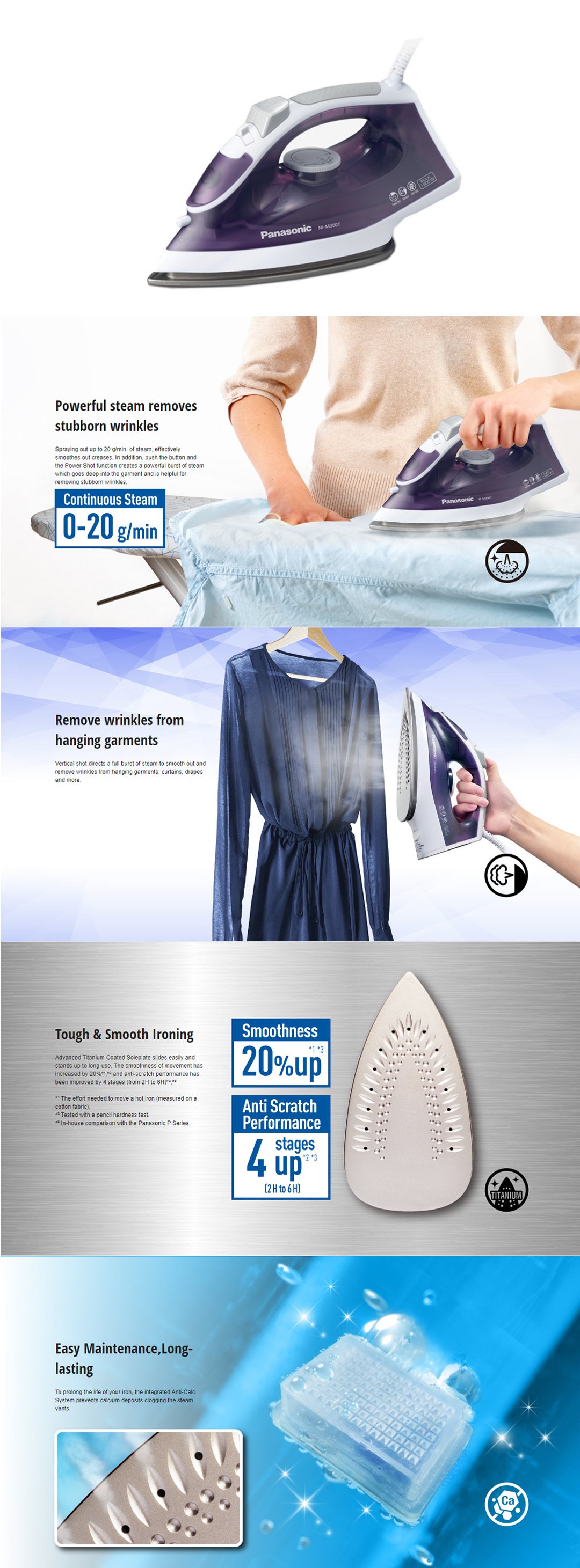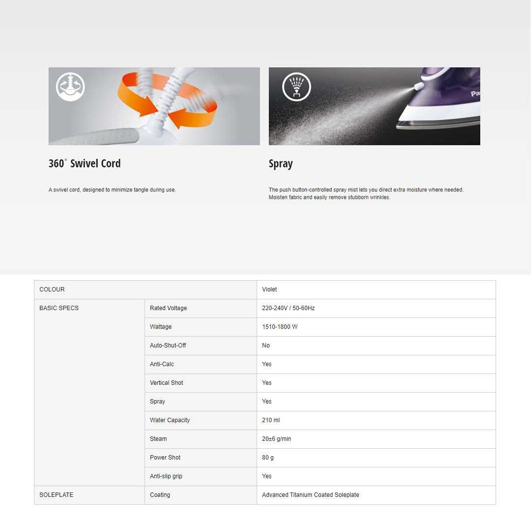 Panasonic 1800W M-Series Steam Iron NI-M300TVSK | Vertical Shot | Continuous Steam 0-20g/min | Anti-Calc System | Spray | Steam Iron with 1 Year Warranty