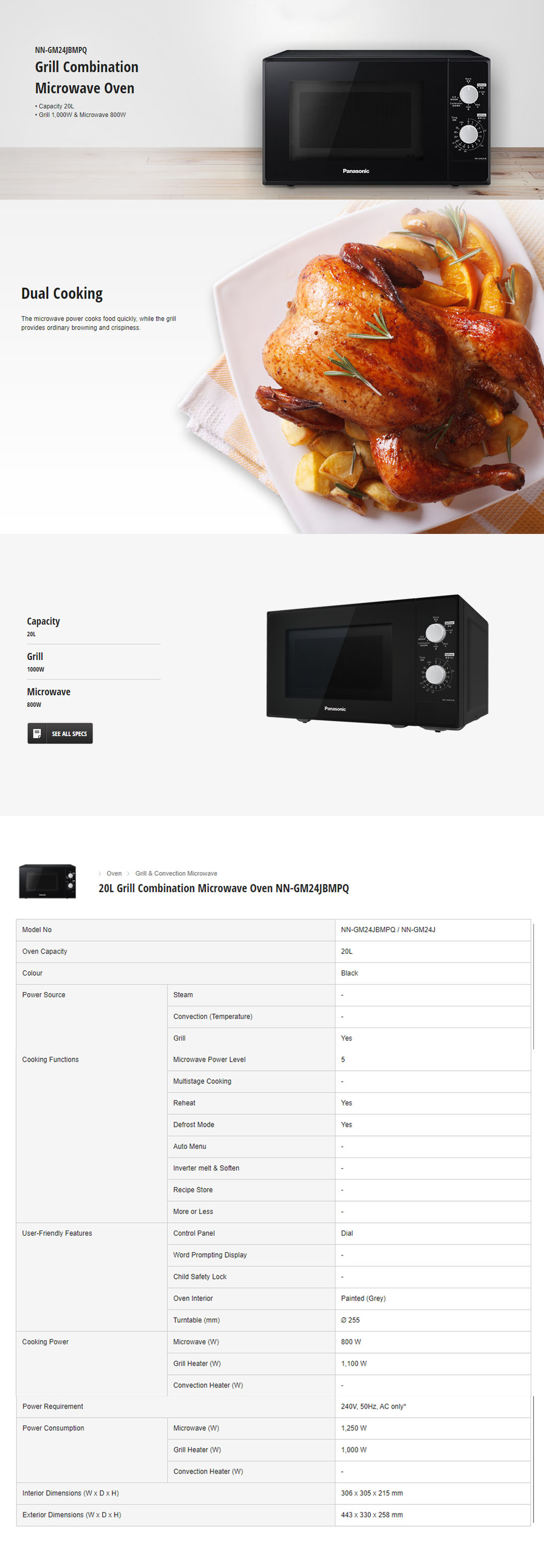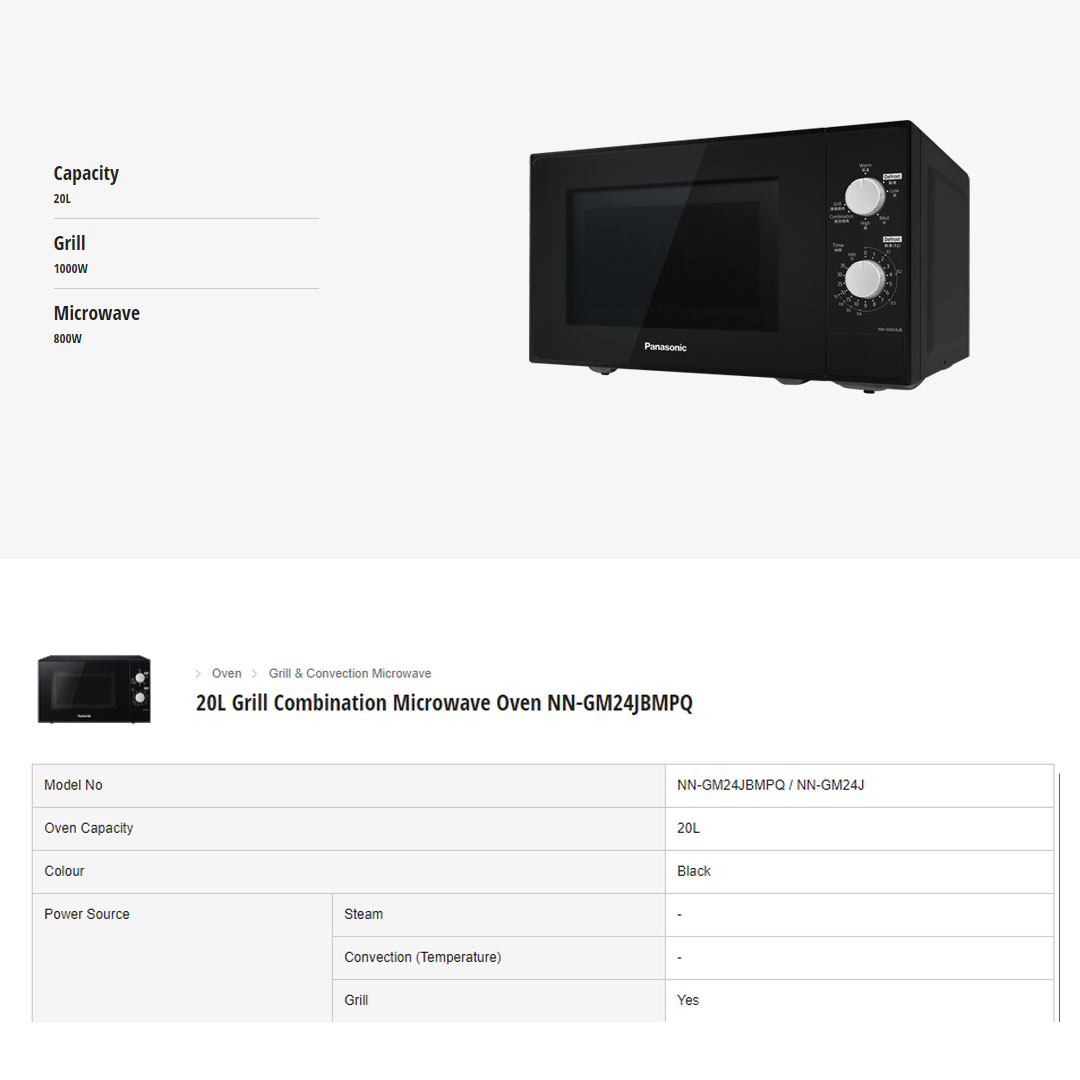 Panasonic 20L Grill Combination Microwave Oven NN-GM24JBMPQ | Dual Cooking | Defrost Mode | Reheat | Microwave Ovens with 1 Year Warranty