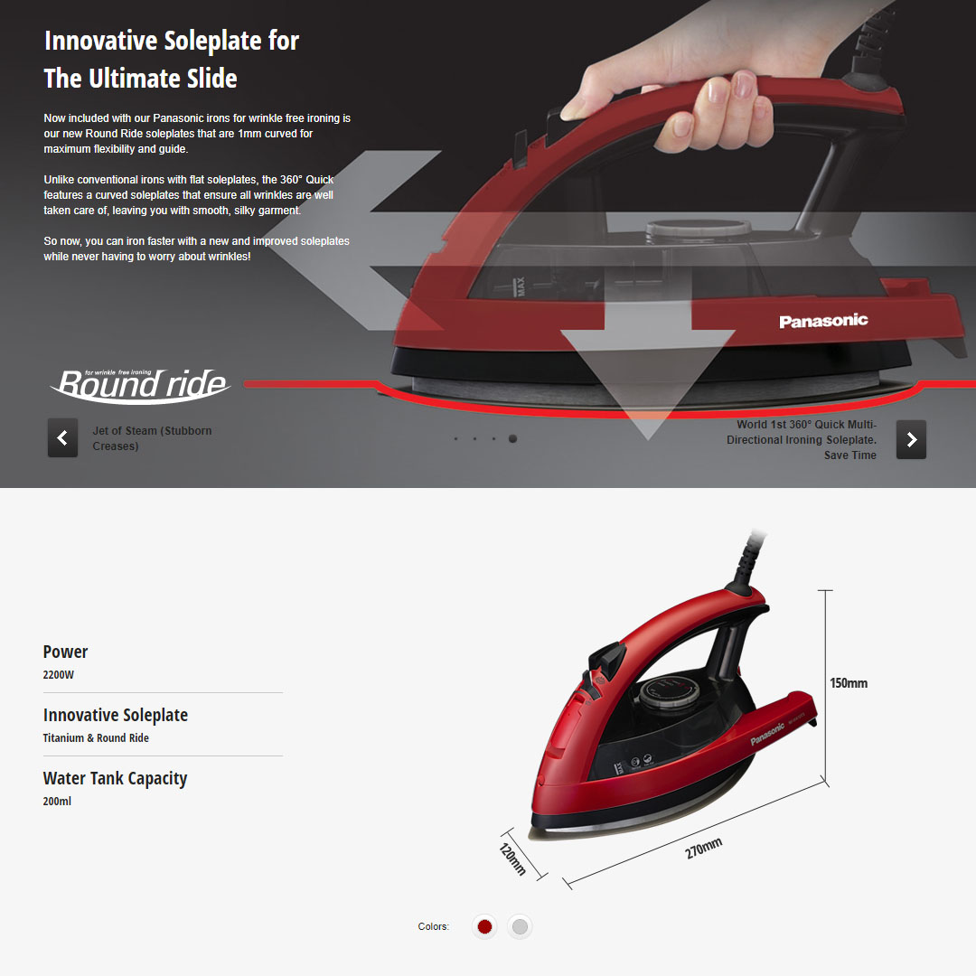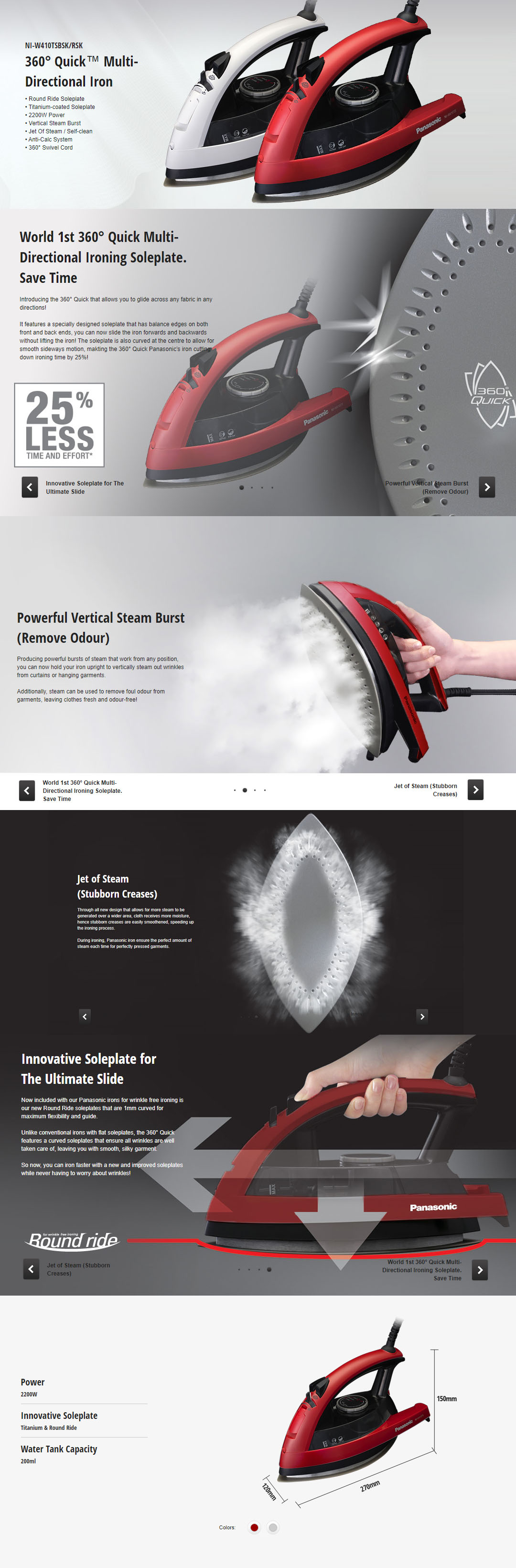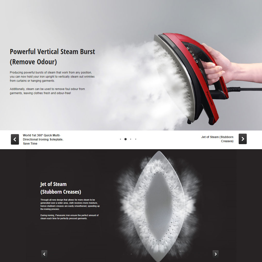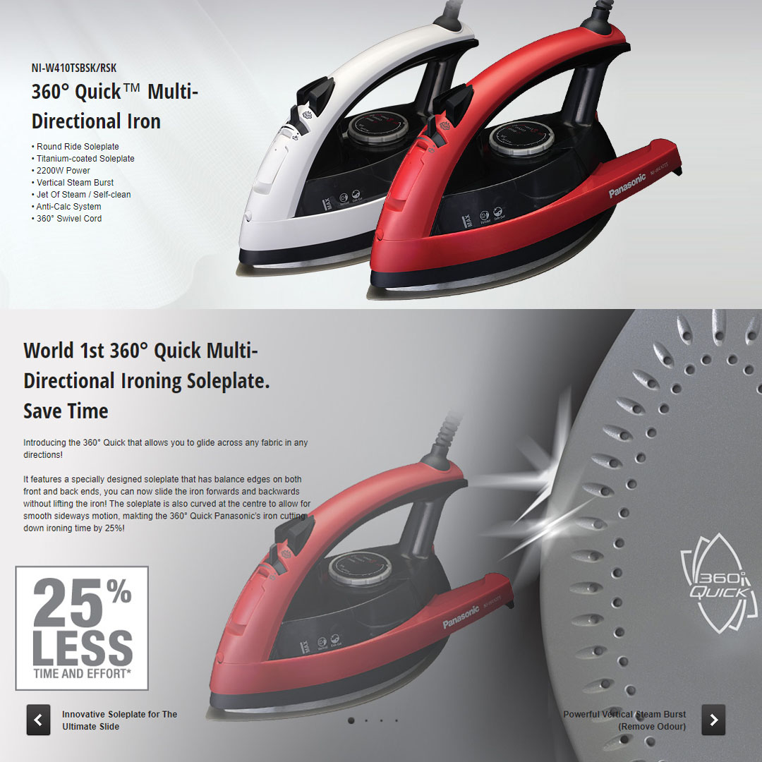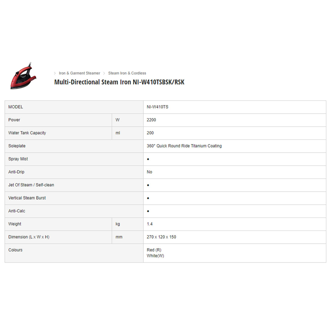 Panasonic 2200W Multi-Directional Steam Iron NI-W410TSBSK | Round Rice Soleplate | Titanium-coated Soleplate | Vertical Steam Burst | Anti-Calc System | 360 Degree Swivel Cord | Steam Iron with 1 Year Warranty