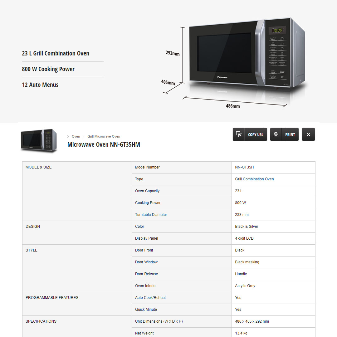 Panasonic 23L Grill Microwave Oven NN-GT35HM | 12 Auto Cooking Menus | 800W Power Cooking | Reheat | Microwave Oven with 1 Year Warranty