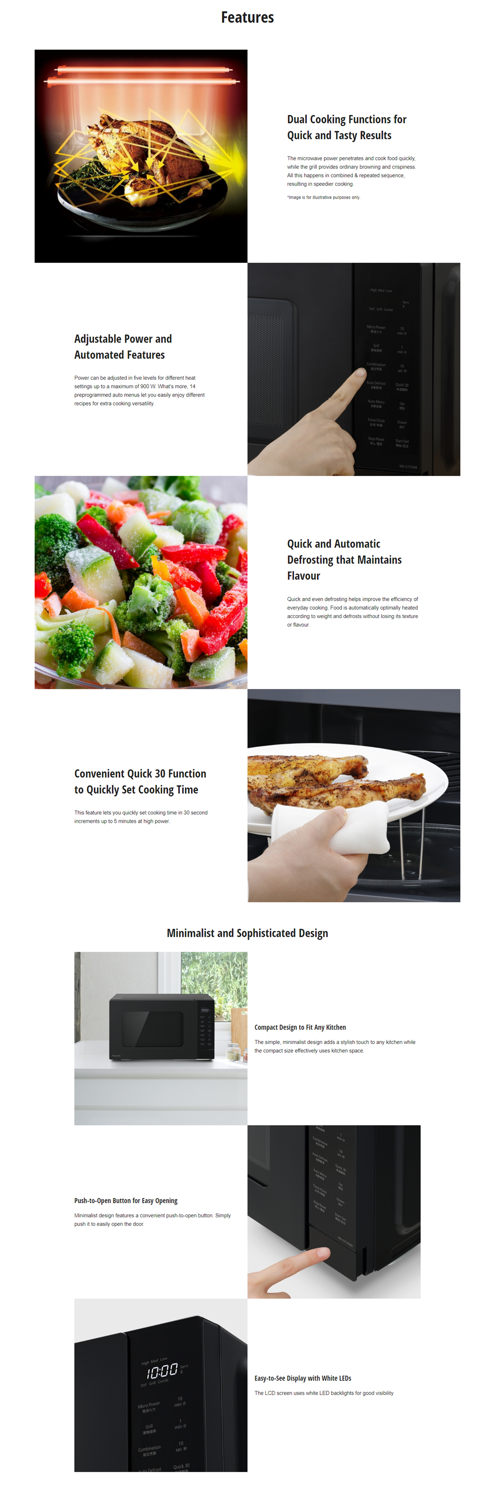 Panasonic 24L Grill Combination/25L Solo Microwave Oven NN-GT35NBMPQ/NN-ST34NBMPQ | 5 Level Power | Quick 30 Function