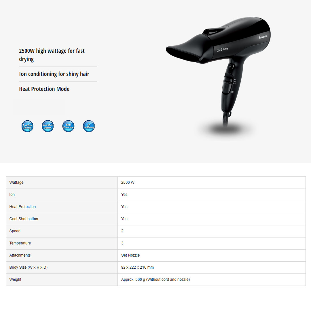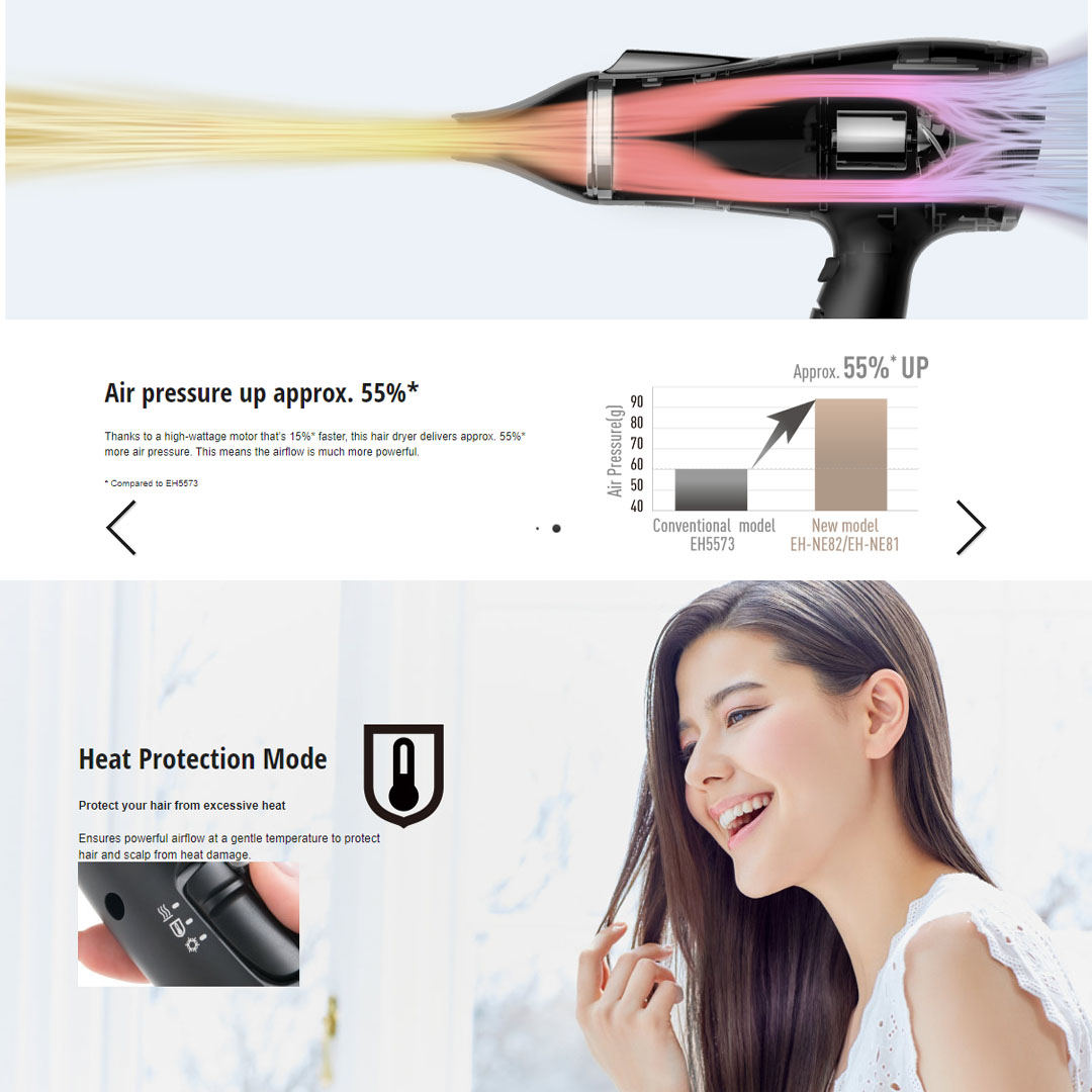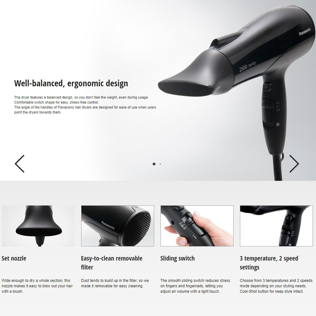 Panasonic 2500W High Power Ionity Hair Dryer EH-NE81-K655 | Heat Protection Mode | Ion Conditioning Delivers Extra Care | Well Balanced, Ergonomic Design | External Ion Outlets | Set Nozzle | Sliding Switch | Hair Dryer with 1 Year Warranty