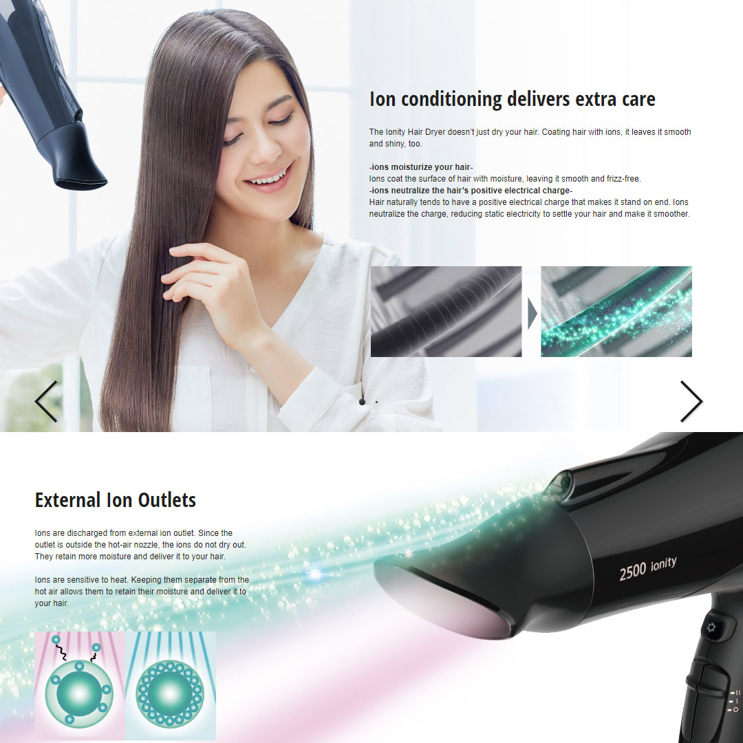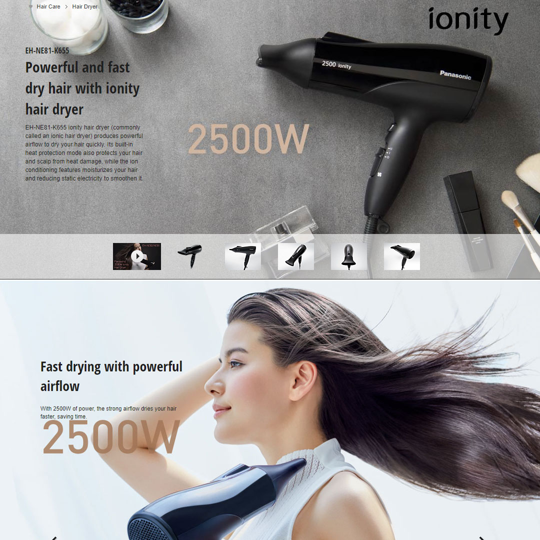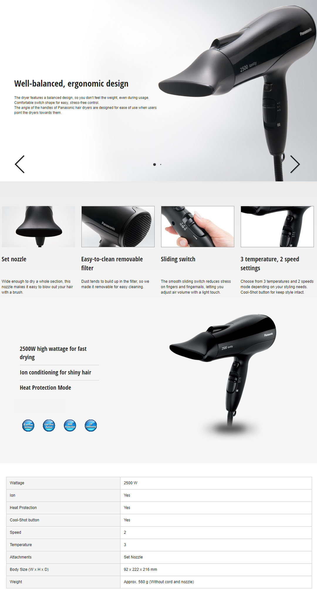 Panasonic 2500W High Power Ionity Hair Dryer EH-NE81-K655 | Heat Protection Mode | Ion Conditioning Delivers Extra Care | Well Balanced, Ergonomic Design | External Ion Outlets | Set Nozzle | Sliding Switch | Hair Dryer with 1 Year Warranty
