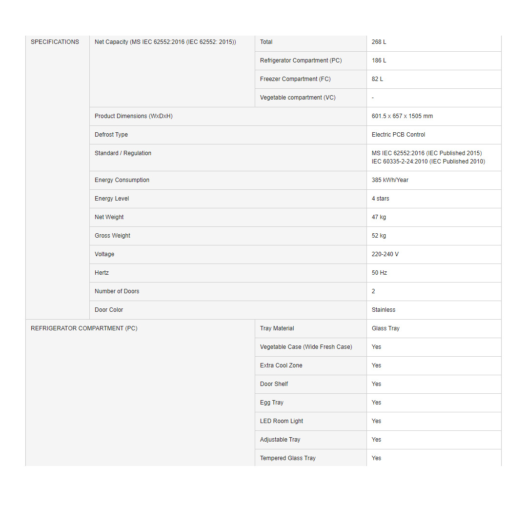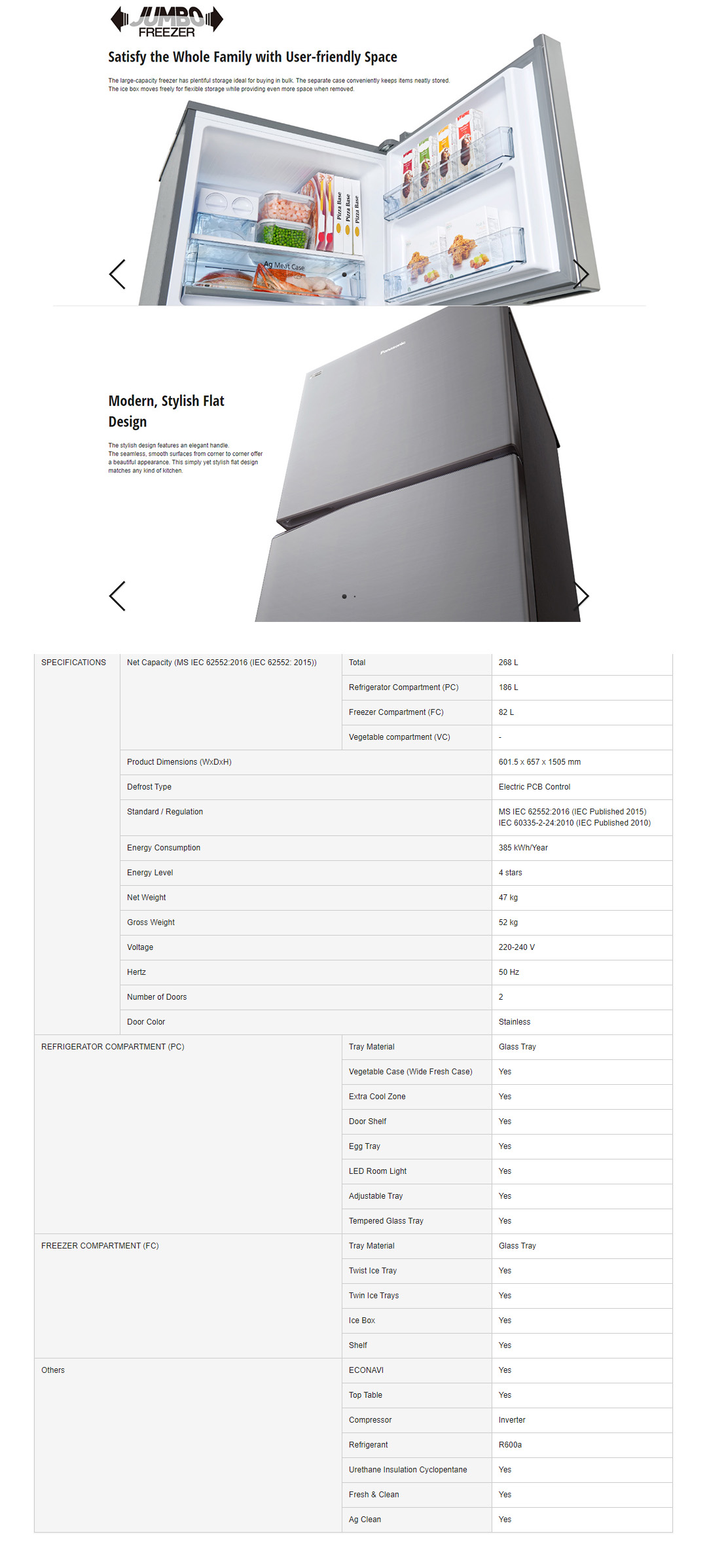 Panasonic 288L 2 Doors Top Mount Wide Fresh Case & Ag Clean ECONAVI Inverter Refrigerator NR-BL302PSMY | LED Room Light | Adjustable Tray | Extra Cool Zone | Refrigerator with 1 Year Warranty