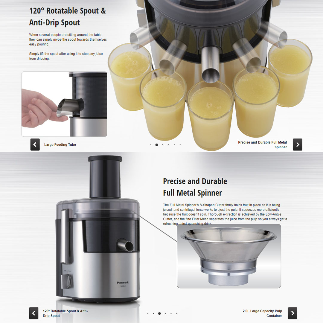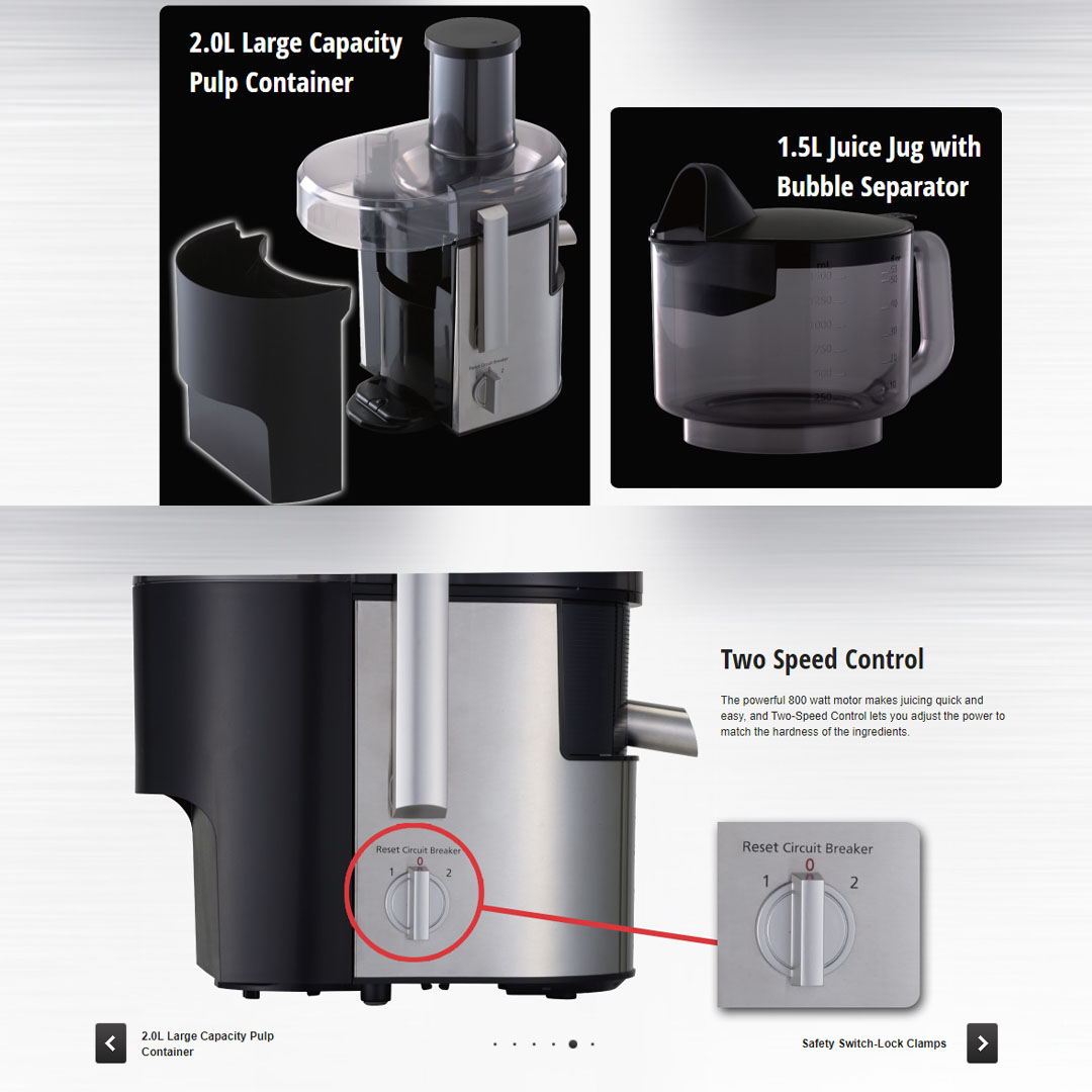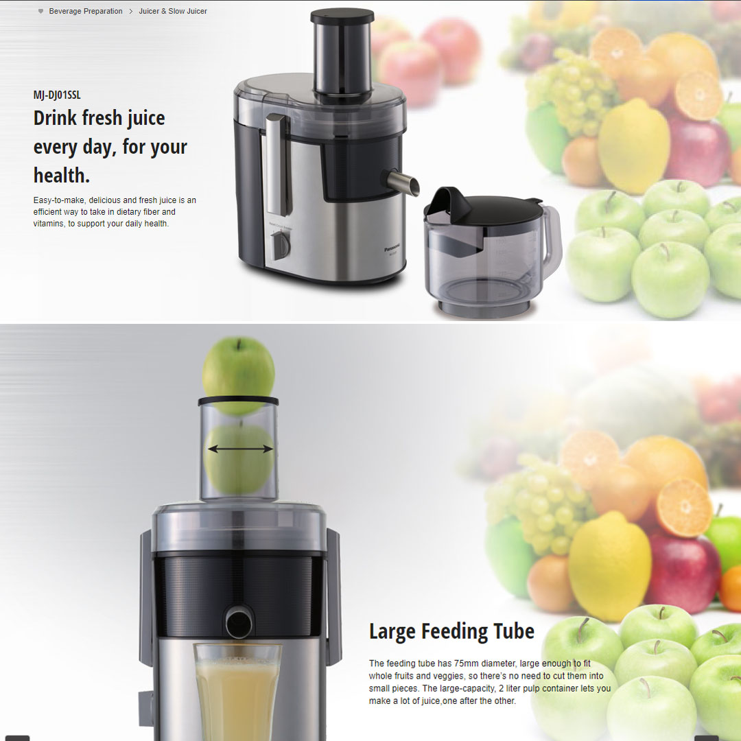 Panasonic 2L Stainless Steel Wide Tube Juicer MJ-DJ01SSL | Two Speed Control | Safety Switch Lock Clamps | Juice Extractor with 1 Year Warranty