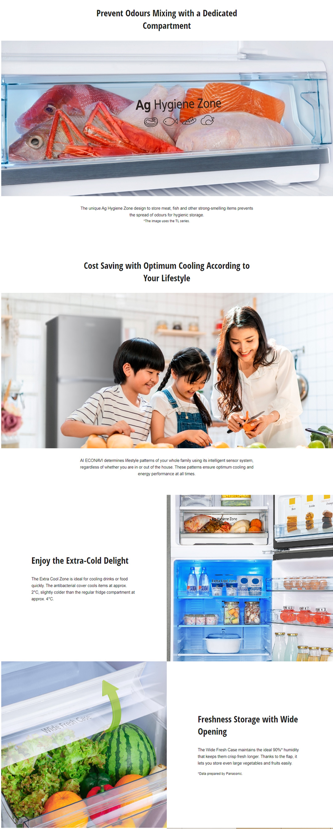 Panasonic 325L 2 Doors Top Mount Inverter Refrigerator with AI ECONAVI NR-TV341BPKM | Hygienic Storage with Blue Ag | Clean Air Surrounds Your Food | Enjoy the Extra-Cold Delight | Freshness Storage with Wide Opening | Refrigerator With 1 Year Warranty