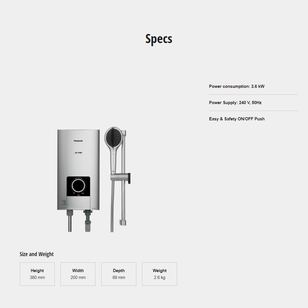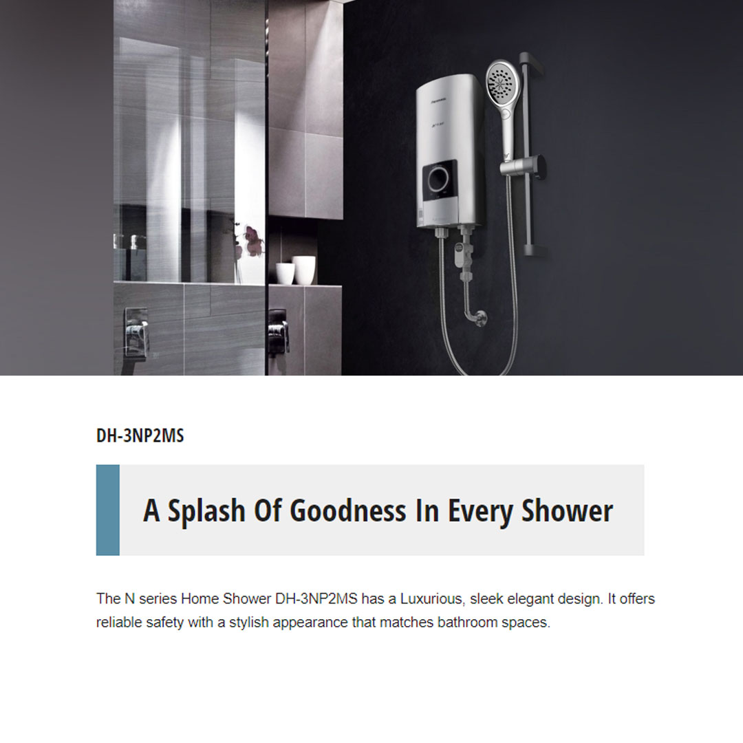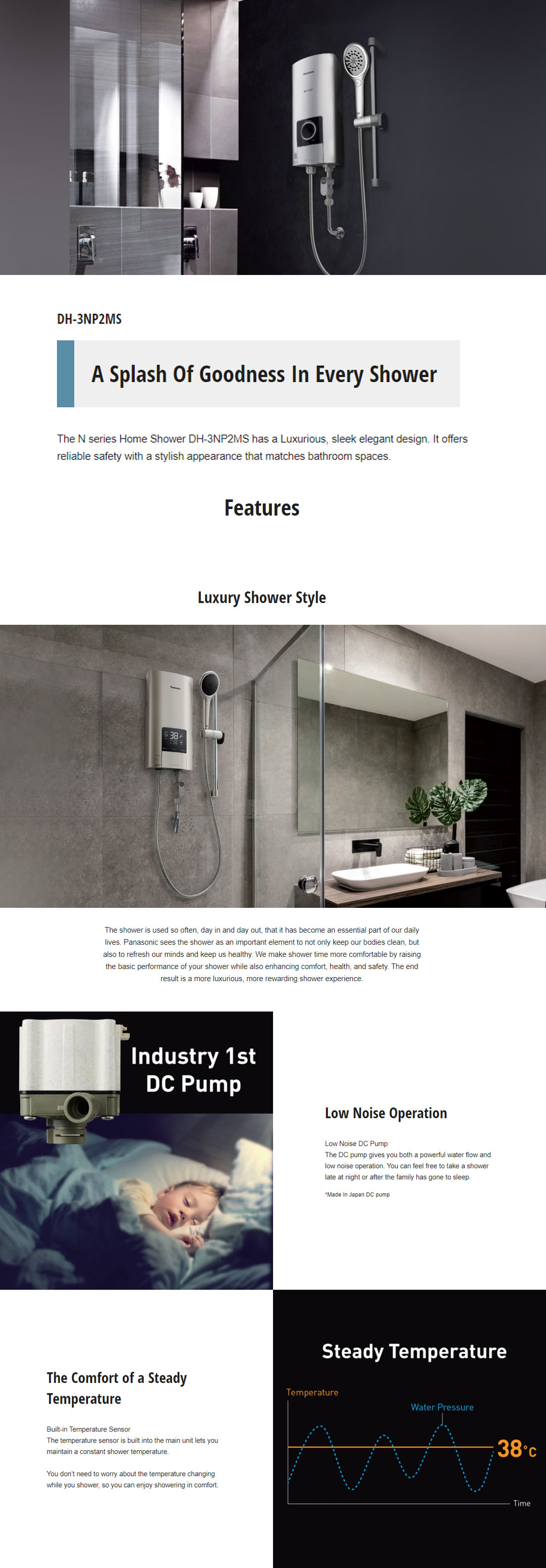 Panasonic 3600W Jet Pump Home Shower DH-3NP2MS | Water Splash Proof | Built-In ELB | DC Pump | Water Flow Sensor | Jet Pump with 1 Year Warranty