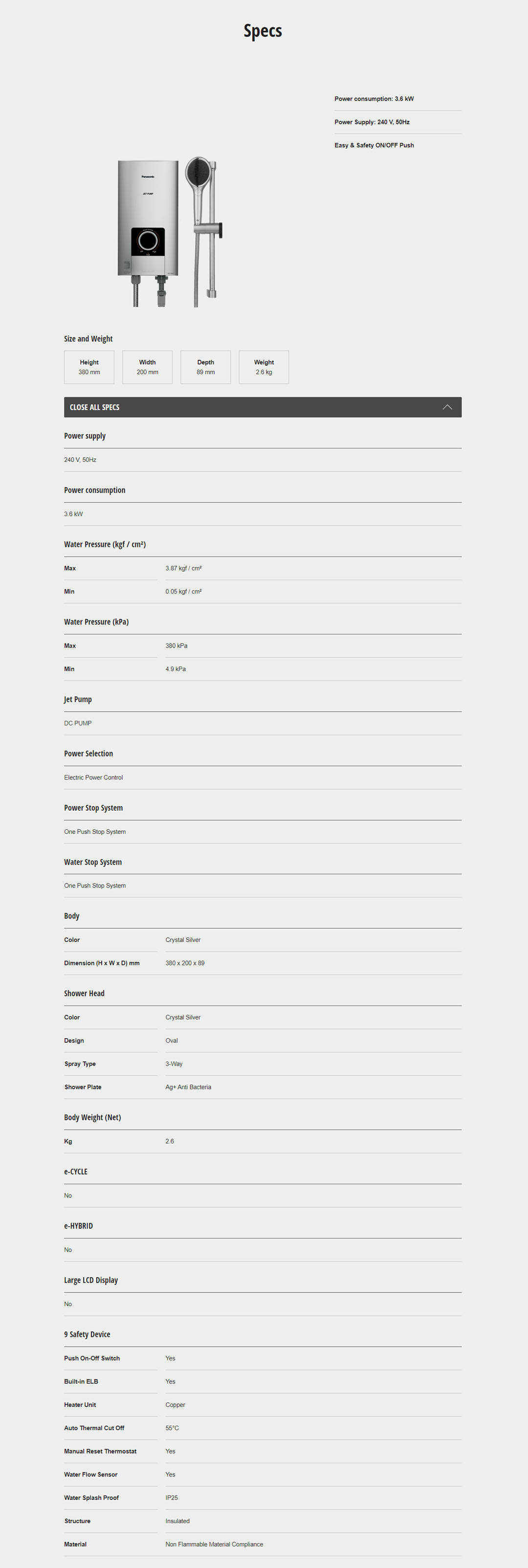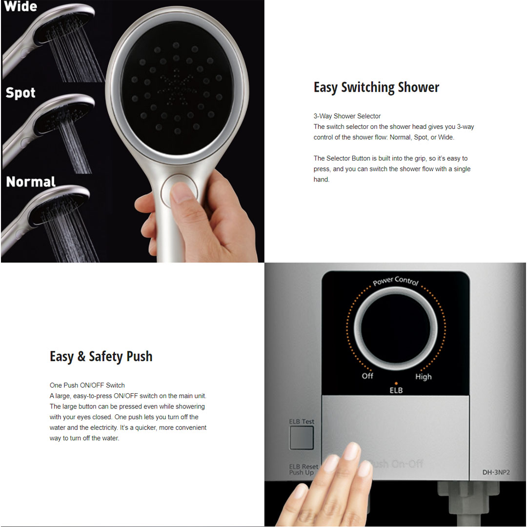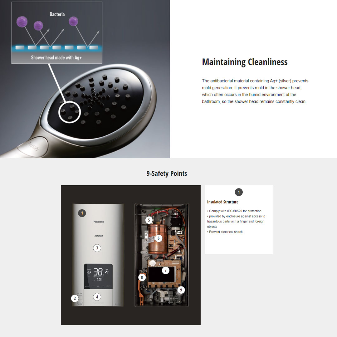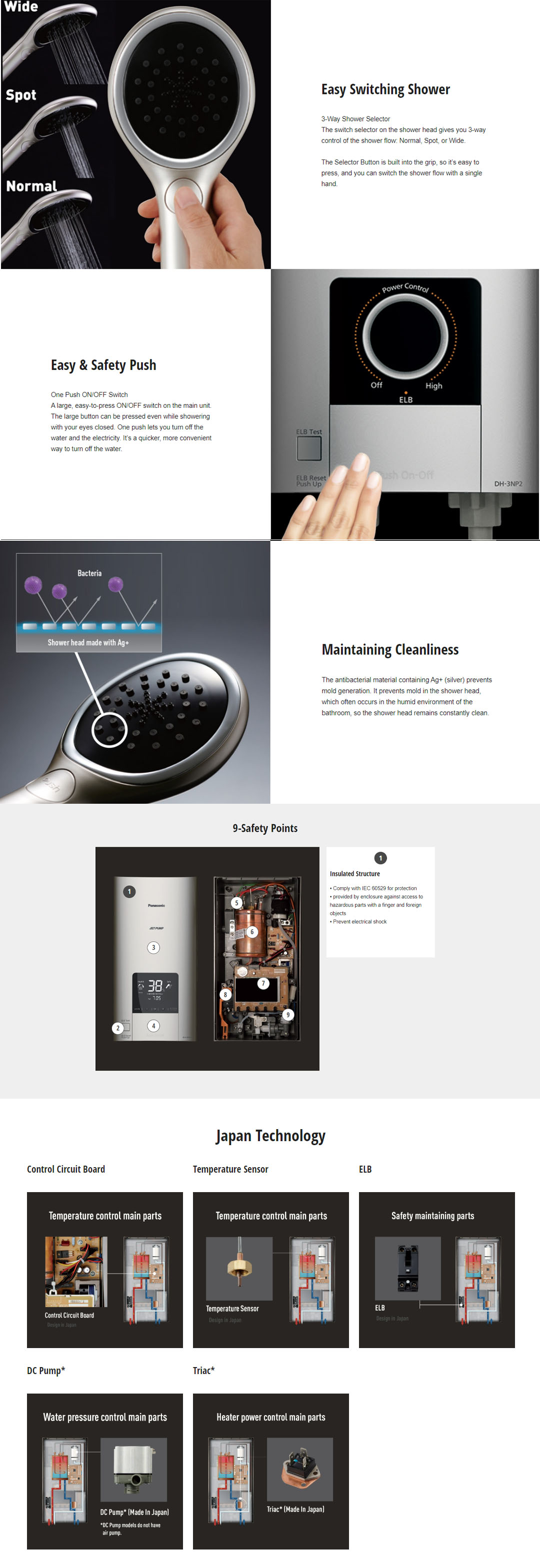 Panasonic 3600W Jet Pump Home Shower DH-3NP2MS | Water Splash Proof | Built-In ELB | DC Pump | Water Flow Sensor | Jet Pump with 1 Year Warranty
