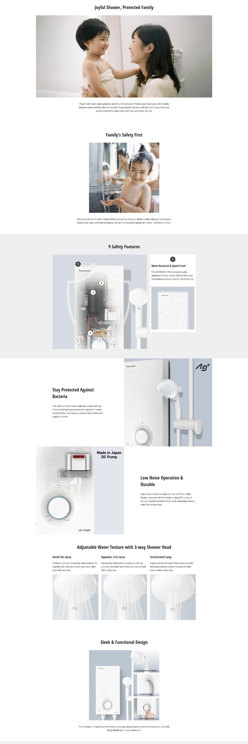 Panasonic 3600W Jet Pump V Series Home Shower (Water Heater) DH-3VP1MW | 9 Safety Features | Water Flow Sensor