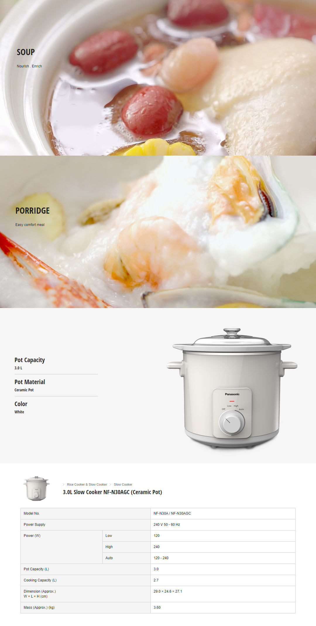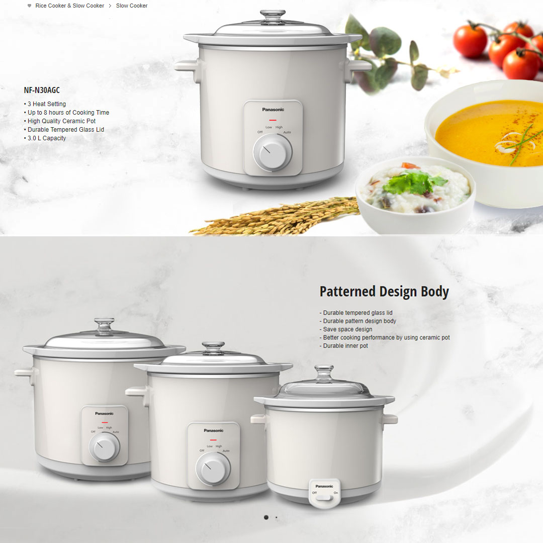 Panasonic 3L Ceramic Slow Cooker NF-N30AGC | 3 Heat Setting | Up to 8 hours of Cooking Time | Even Heat Distribution | Cookers with 1 Year Warranty