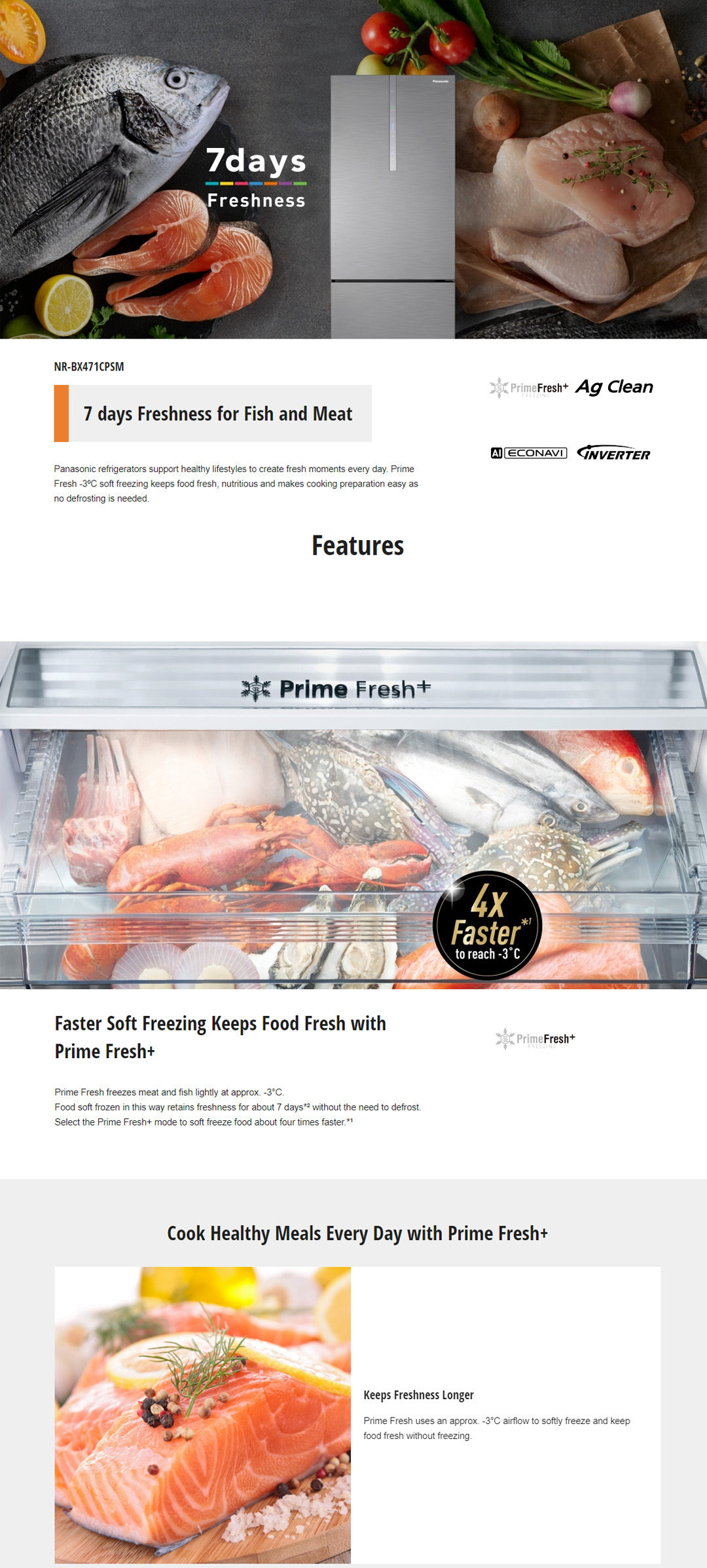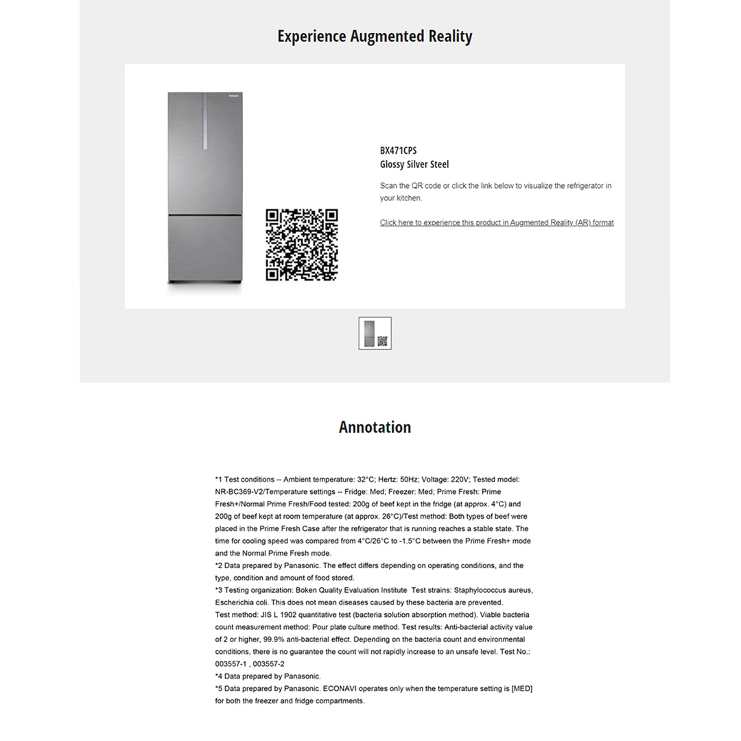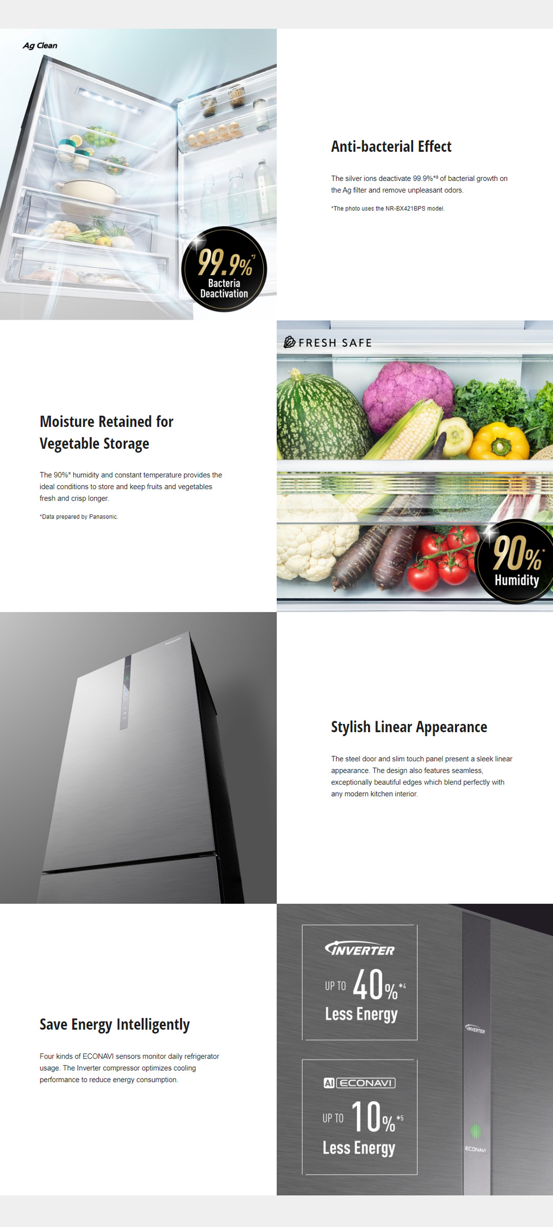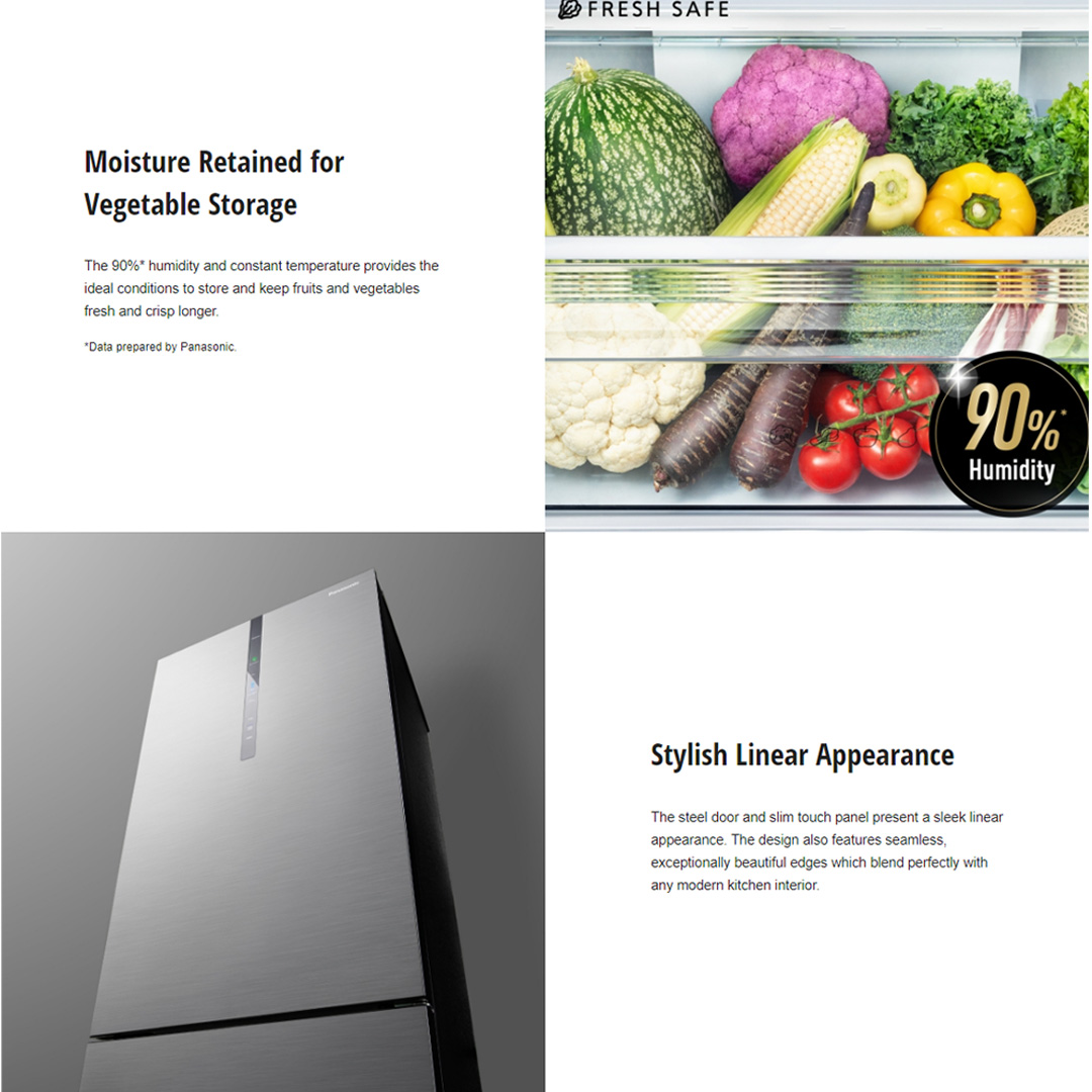 Panasonic 465L 2 Doors Bottom Mount ECONAVI Inverter Refrigerator NR-BX471CPSM | Control Panel | Height Adjustable Shelves | LED Light | Power Control | Refrigerator with 1 Year Warranty