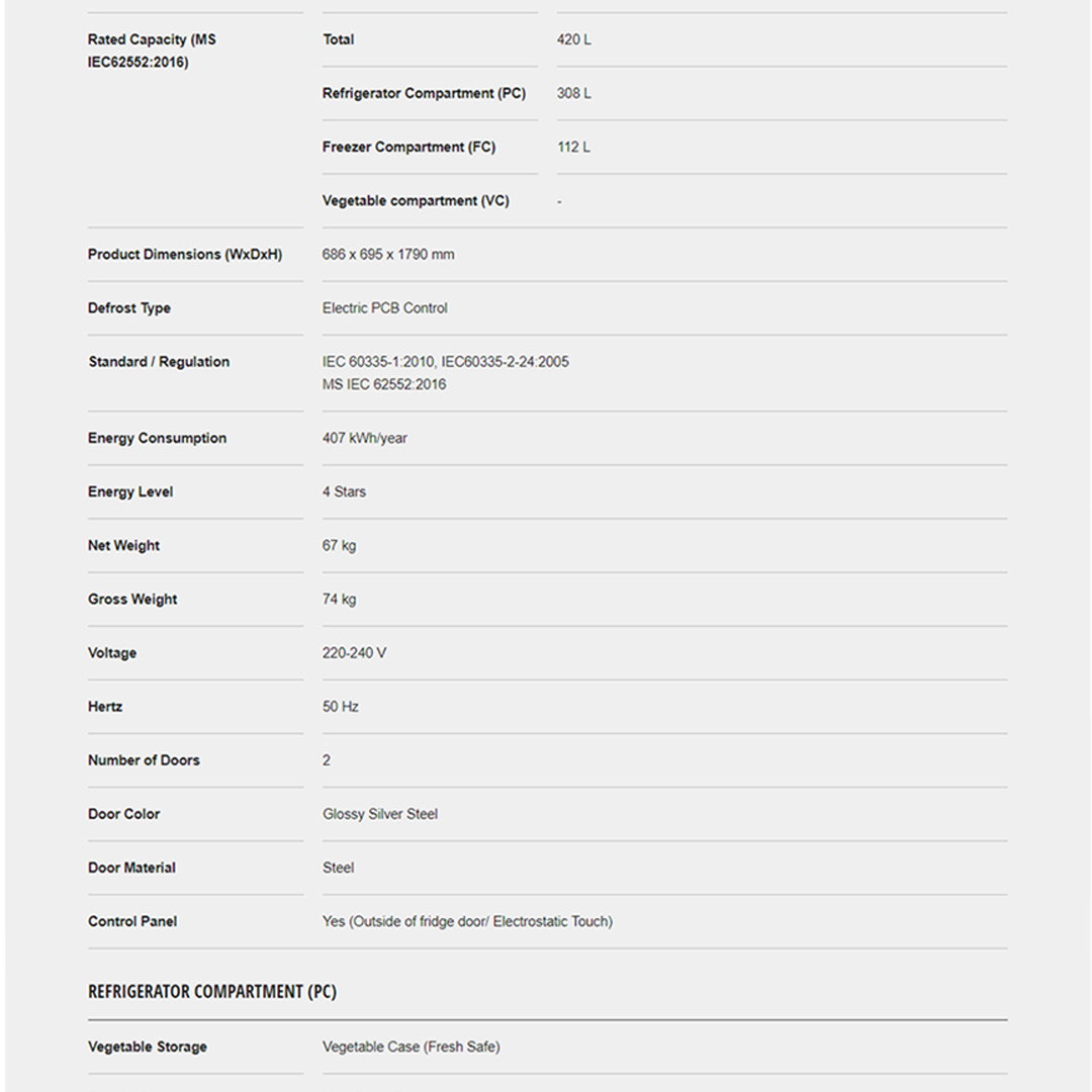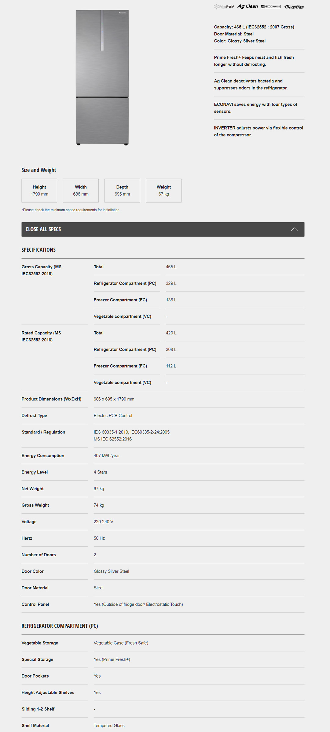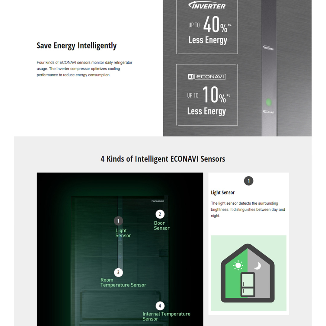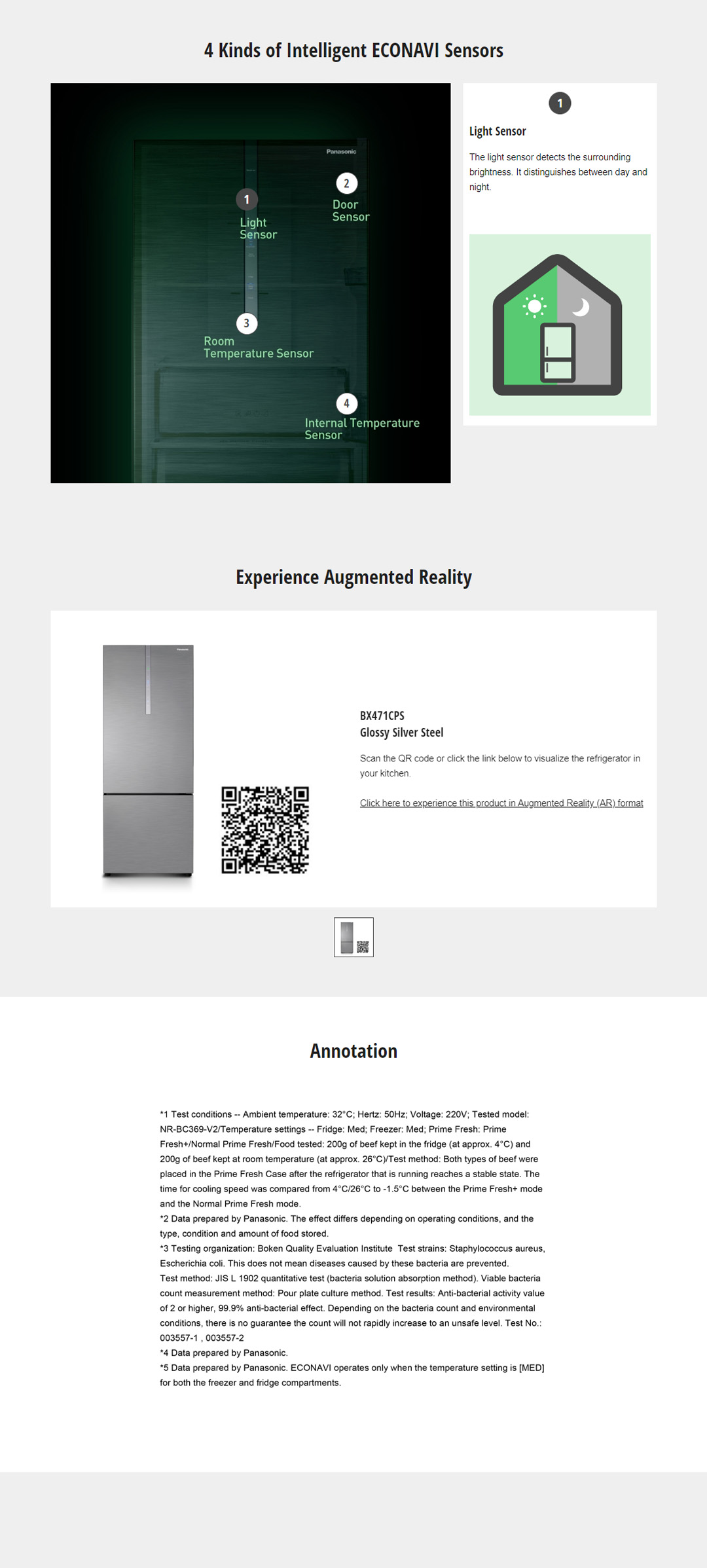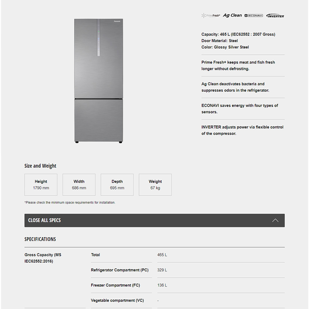 Panasonic 465L 2 Doors Bottom Mount ECONAVI Inverter Refrigerator NR-BX471CPSM | Control Panel | Height Adjustable Shelves | LED Light | Power Control | Refrigerator with 1 Year Warranty