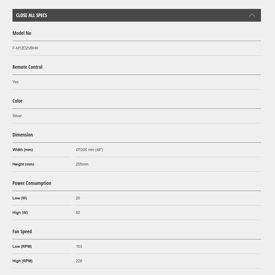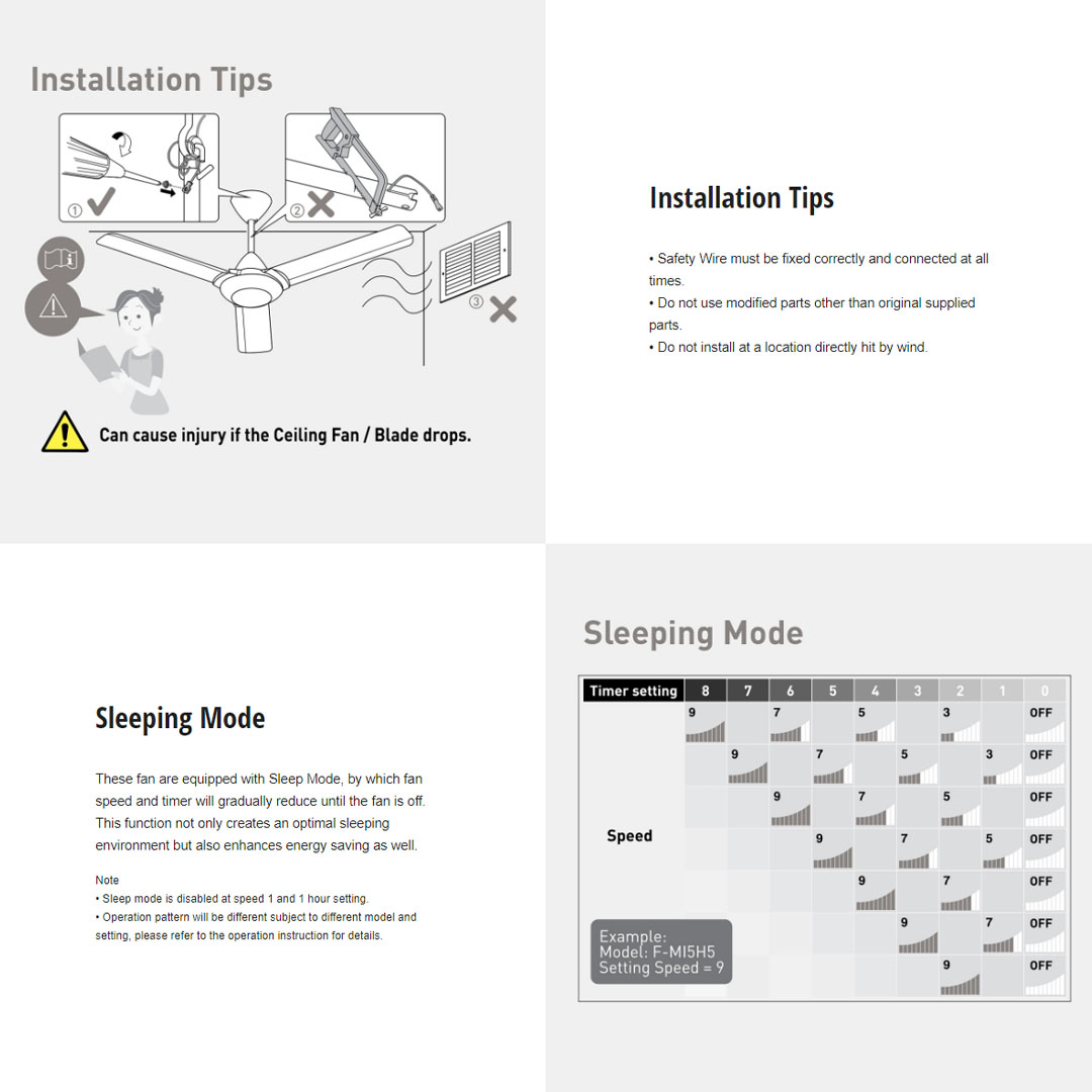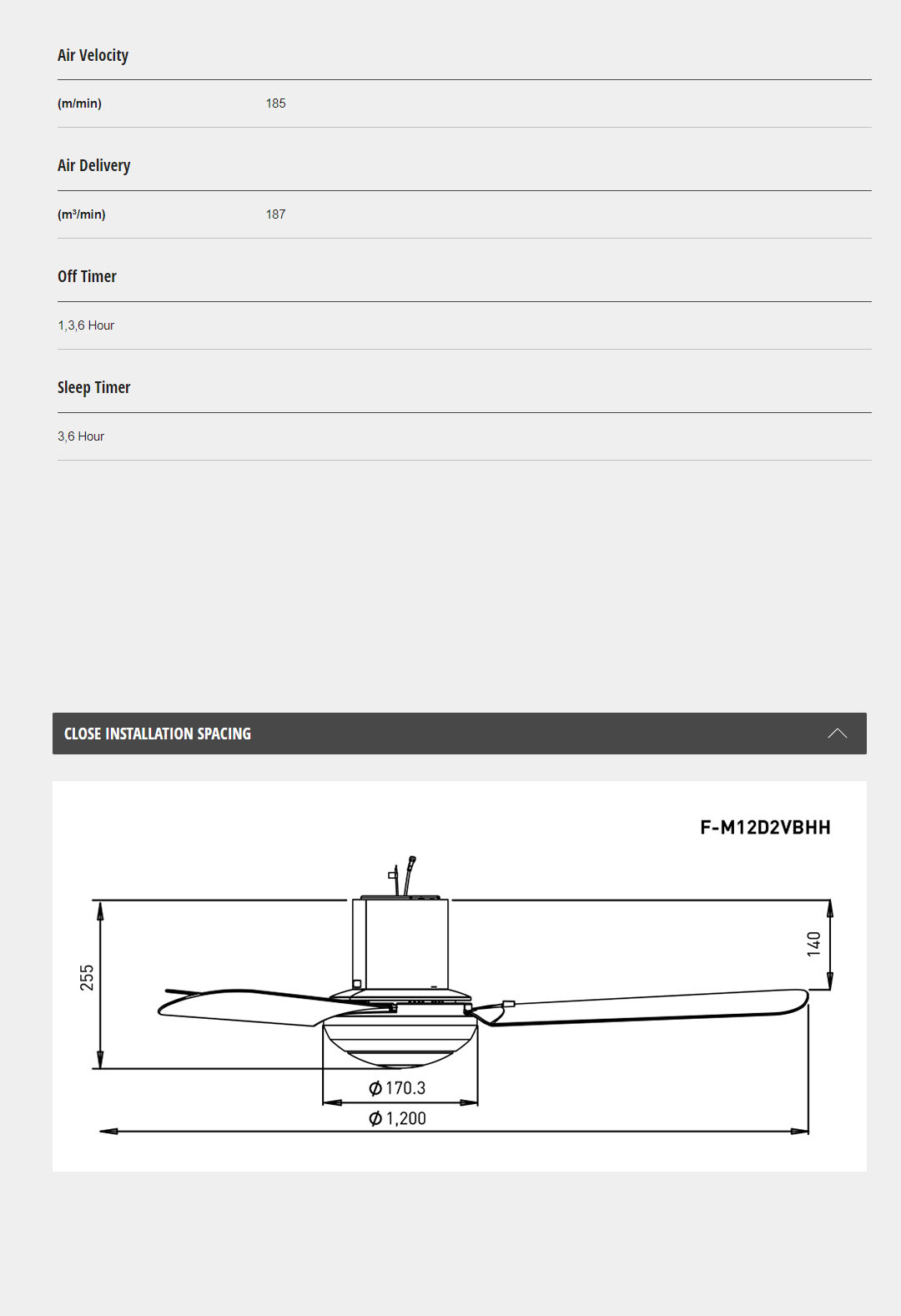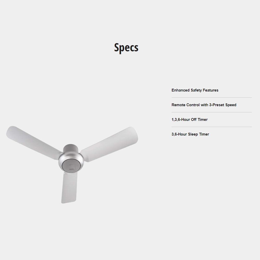Panasonic 48" Bayu 3 Blade Ceiling Fan F-M12D2VBHH | New 3-Blade Design | Enhanced Safety Features | Remote Control with 3-Preset Speed | 1,3,6-Hour Off Timer | 3,6-Hour Sleep Timer |
