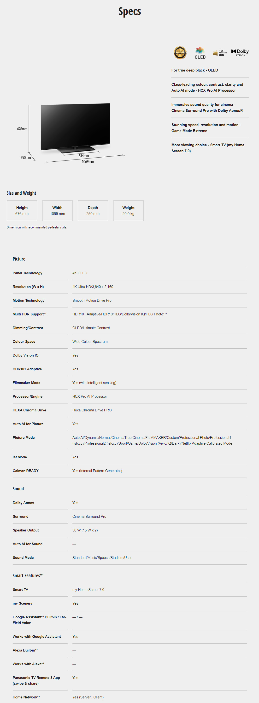 Panasonic 48" OLED 4K HDR Smart LED TV TH-48LZ1000K | Dolby ATMOS | Enjoy Smarter Entertainment | Big Screen 4K OLED Gaming Action | Smart TV With 1 Year Warranty