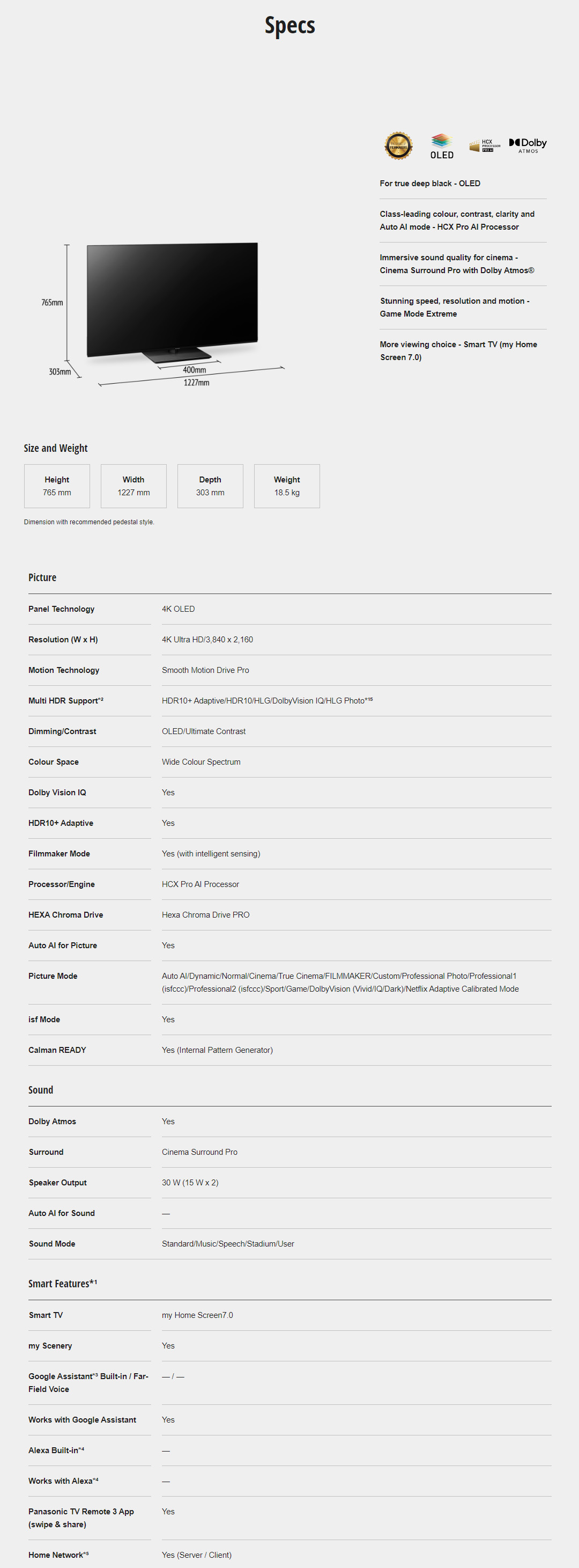 Panasonic 55" OLED 4K HDR Smart LED TV TH-55LZ1000K | Dolby ATMOS | Enjoy Smarter Entertainment | Big Screen 4K OLED Gaming Action | Smart TV with 1 Year Warranty