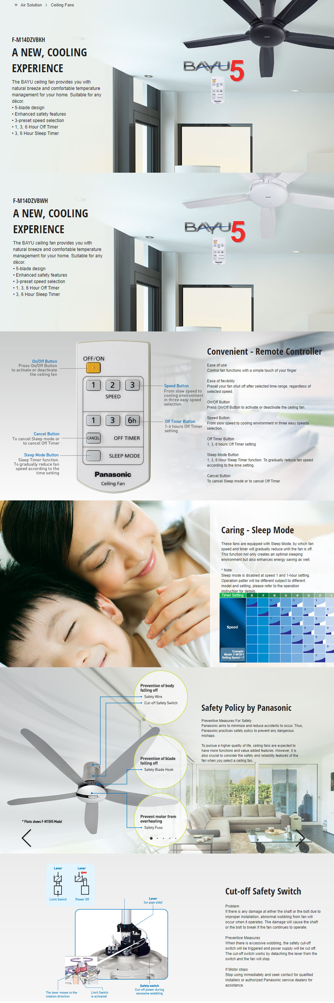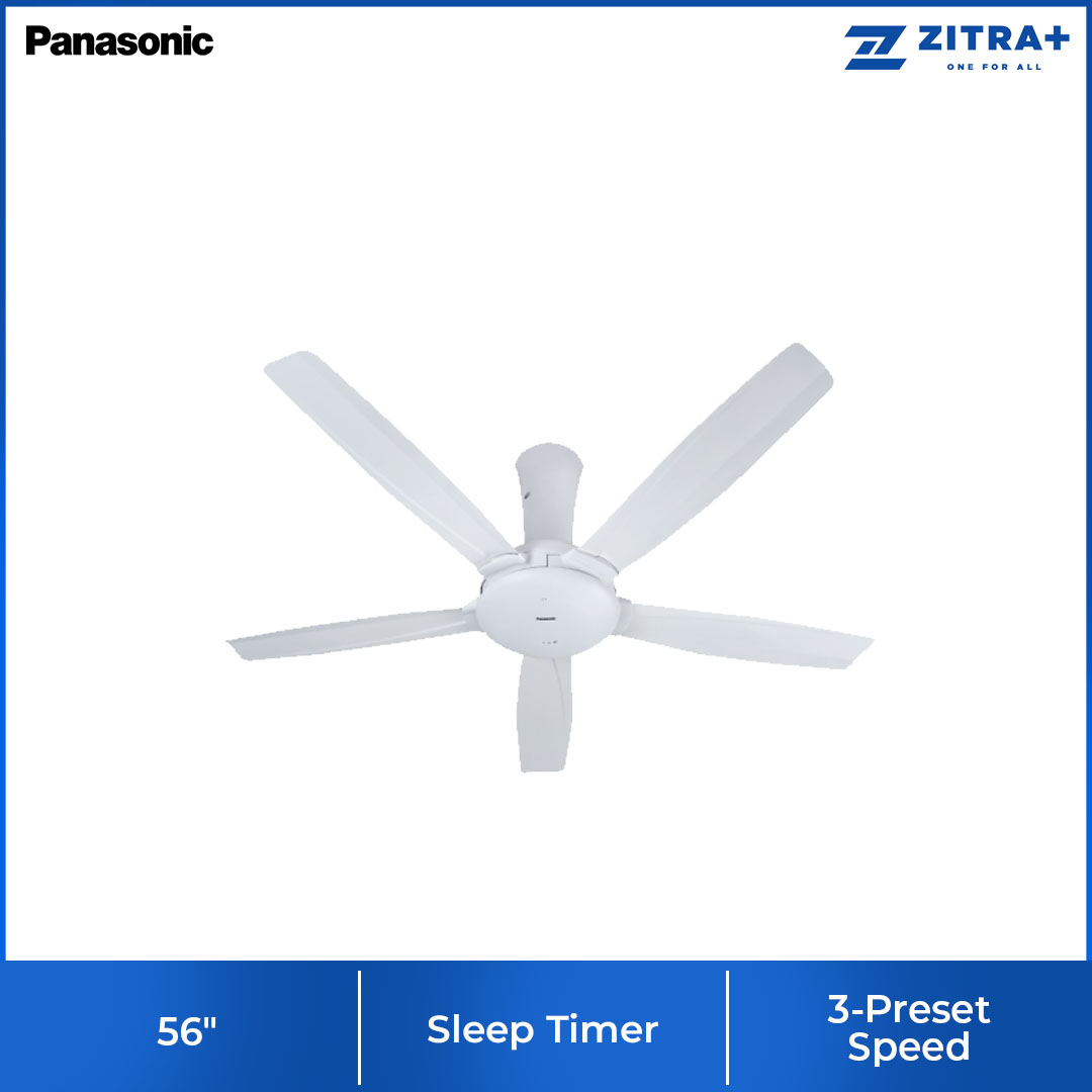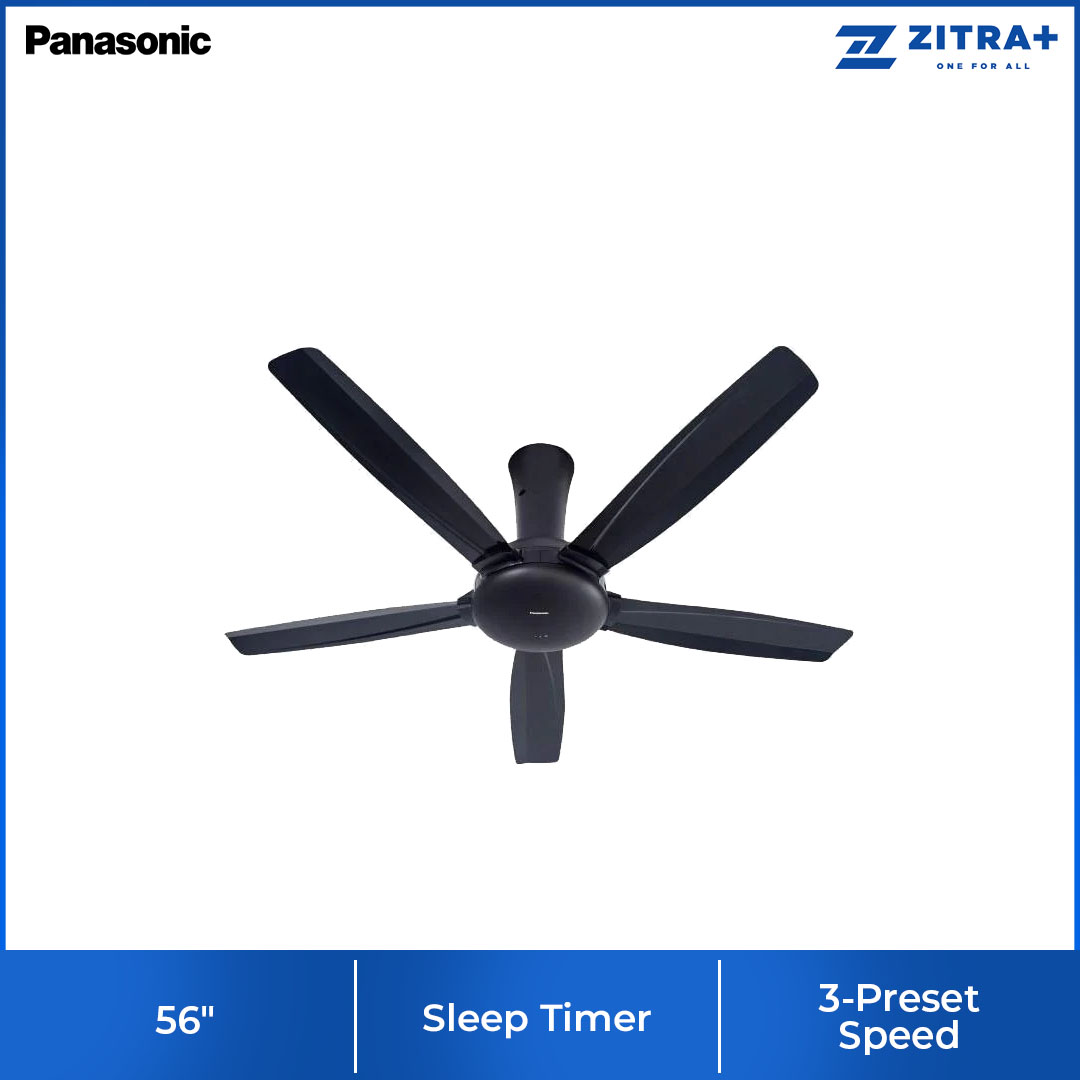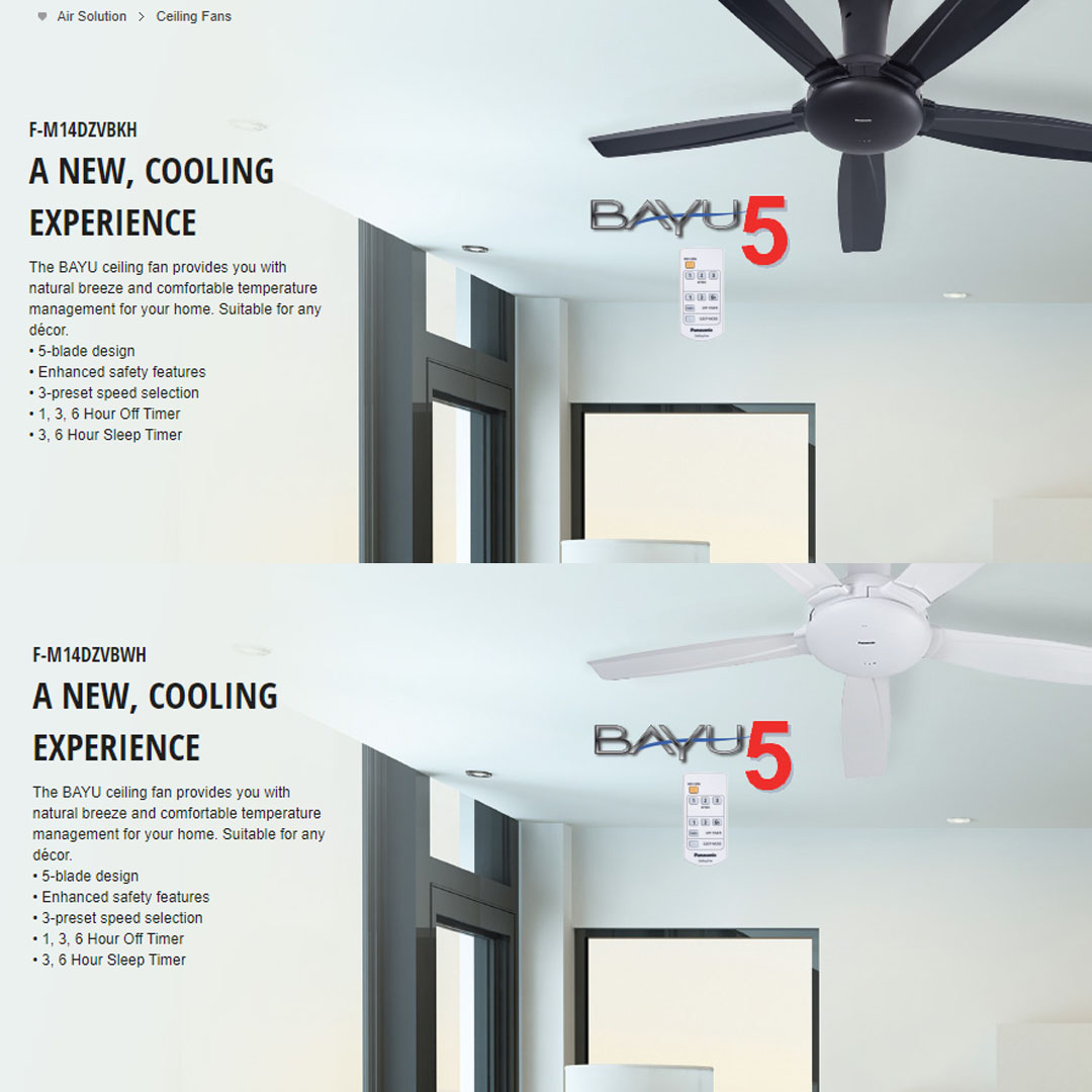 Panasonic 56" Bayu 5 Blade Ceiling Fan F-M14DZVBKH / F-M14DZVBWH | Enhanced Safety Features | Remote Control with 3-Preset Speed | 1, 3, 6-hour Off and Sleep Timer | 3, 6-hour Sleep Timer