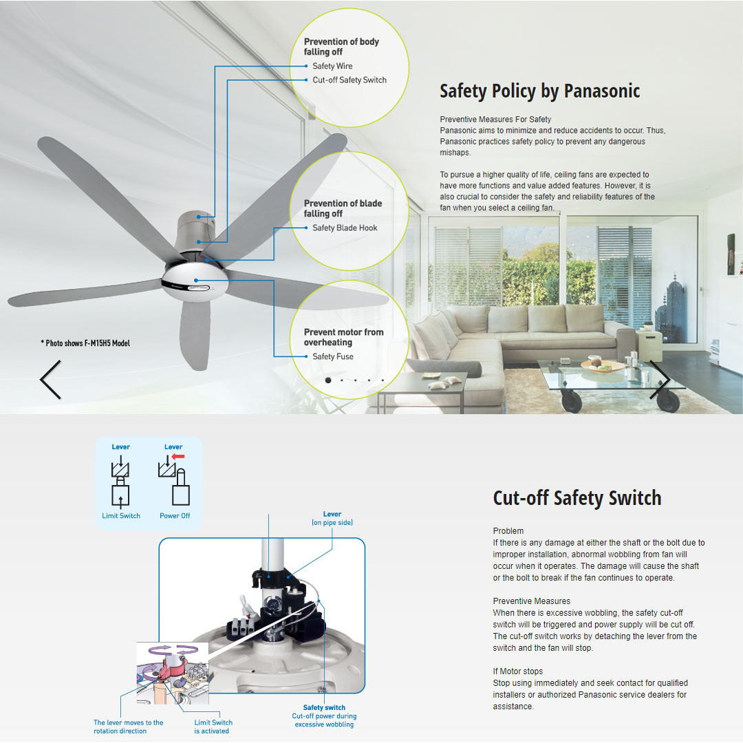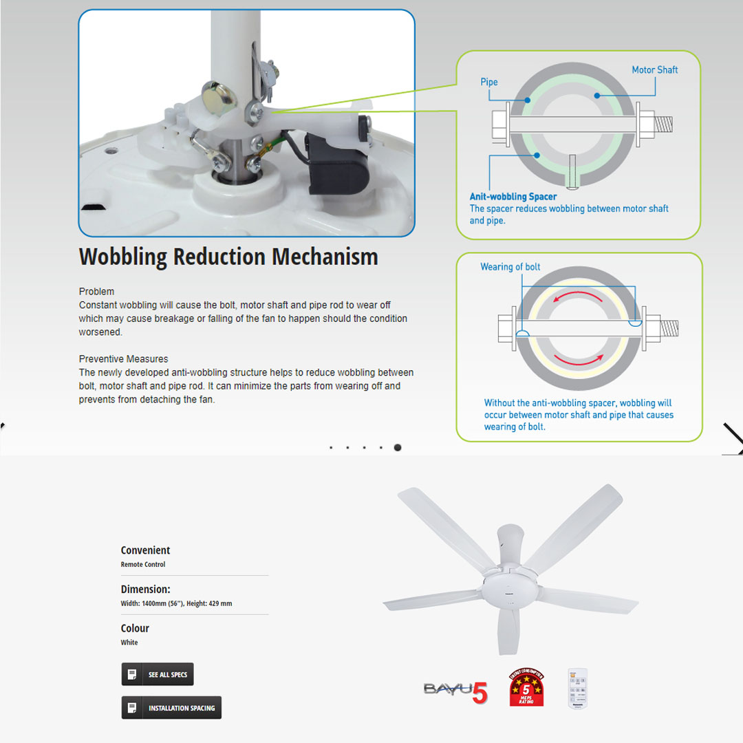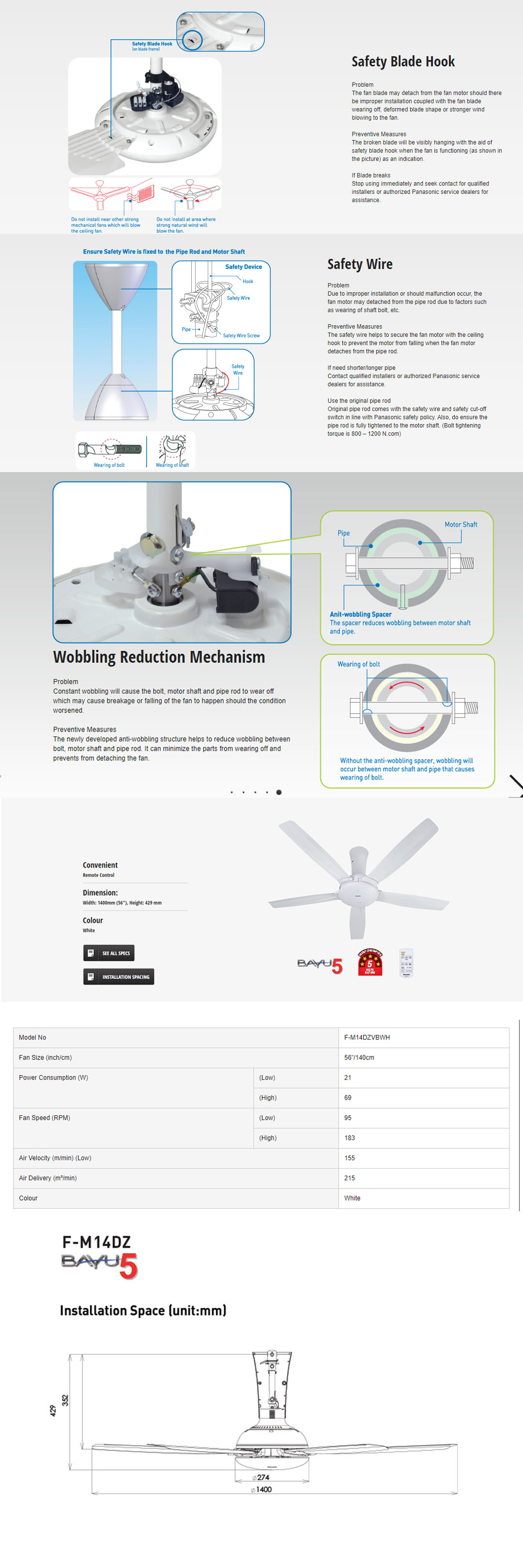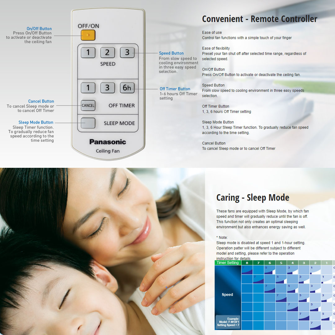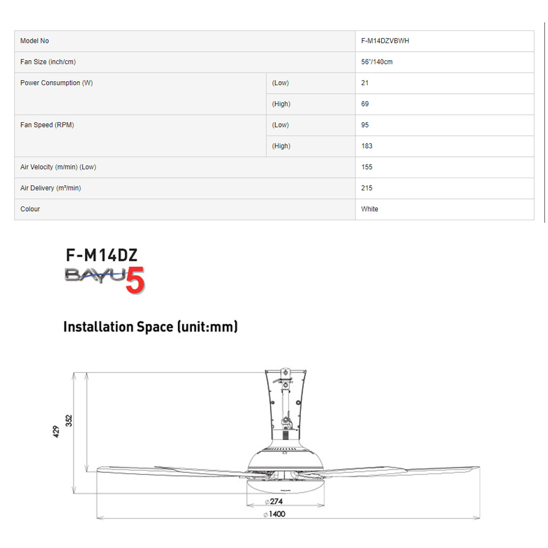 Panasonic 56" Bayu 5 Blade Ceiling Fan F-M14DZVBKH / F-M14DZVBWH | Enhanced Safety Features | Remote Control with 3-Preset Speed | 1, 3, 6-hour Off and Sleep Timer | 3, 6-hour Sleep Timer