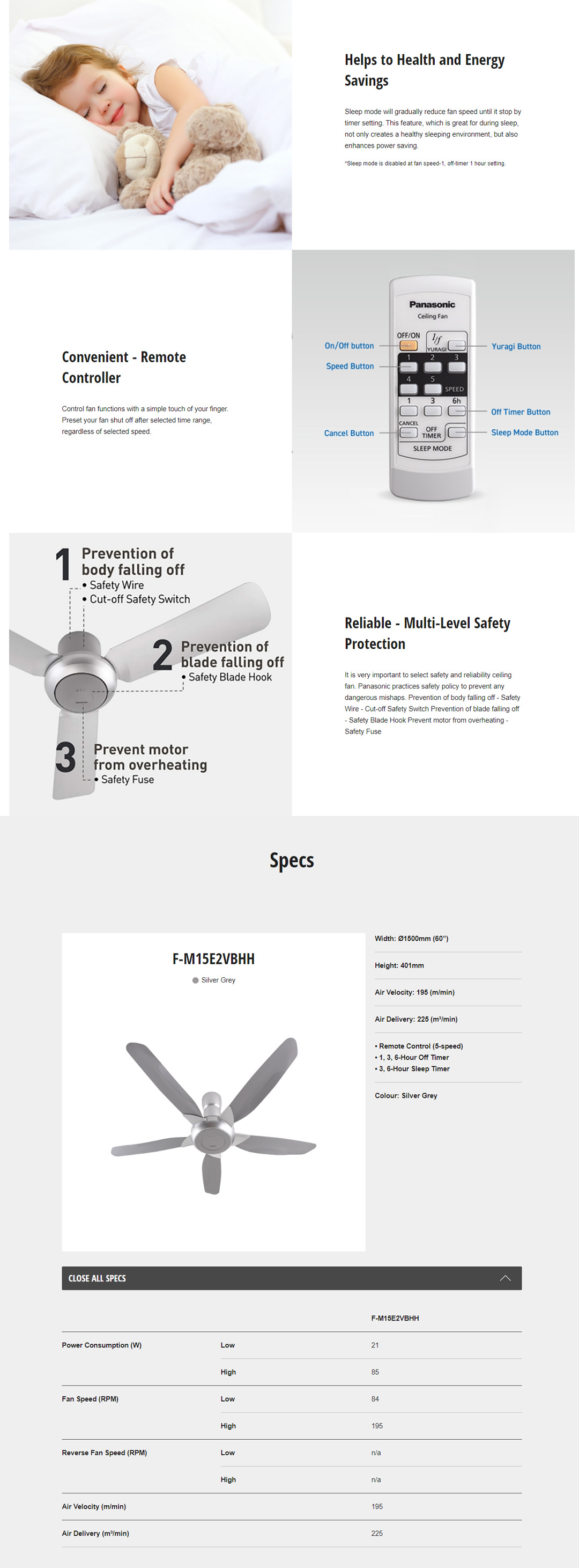 Panasonic 60" Nami 5 Blade Ceiling Fan F-M15E2VBHH | Multi-Level Safety Protection | 3D Blade - Powerful Airflow | Ceiling Fan with 1 Year Warranty
