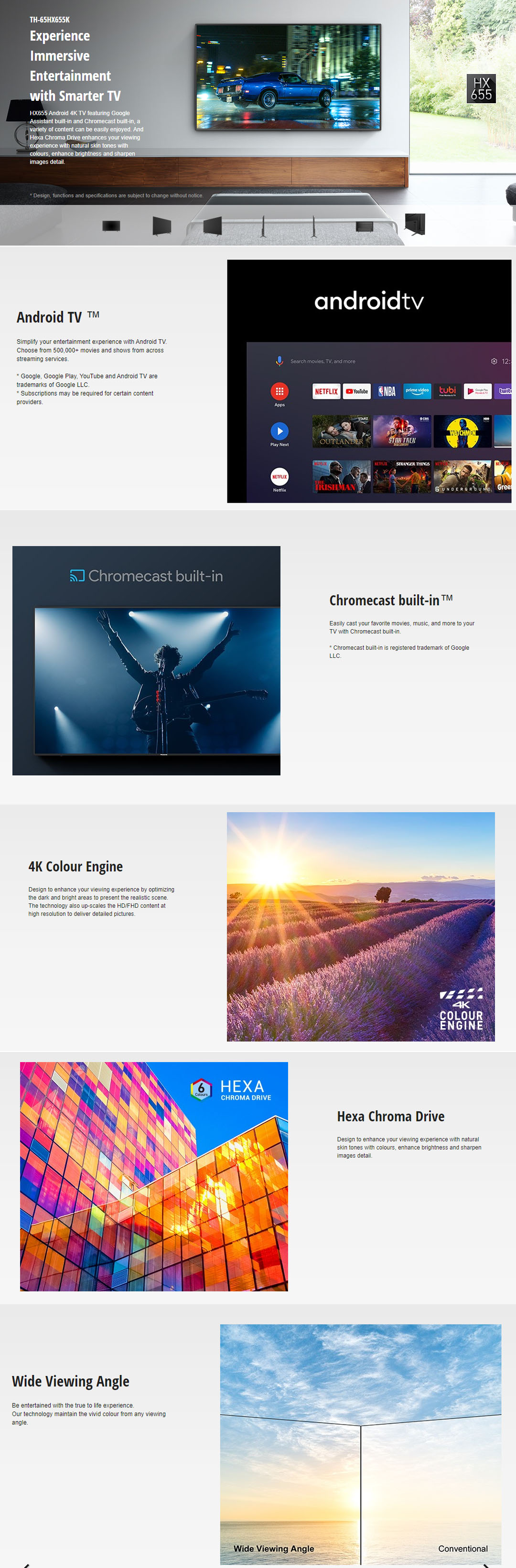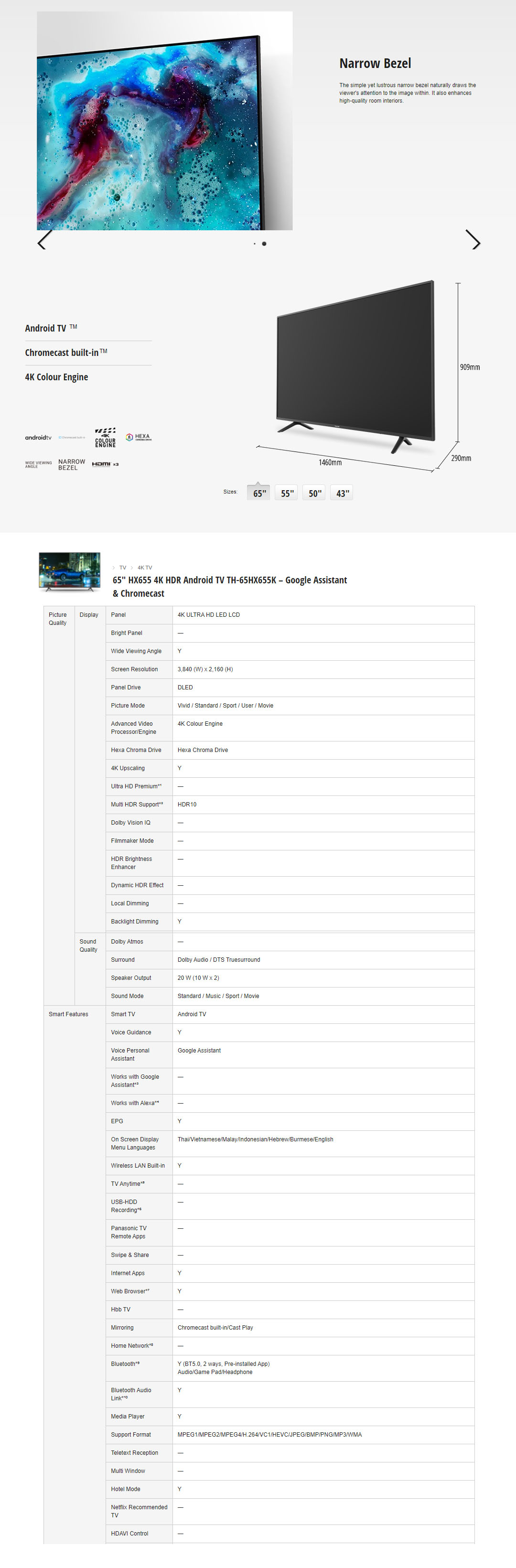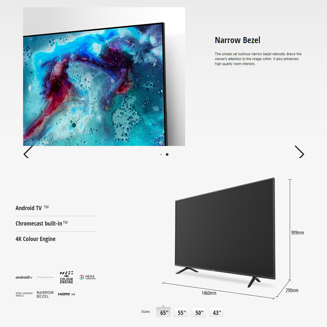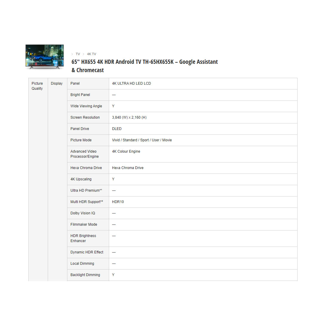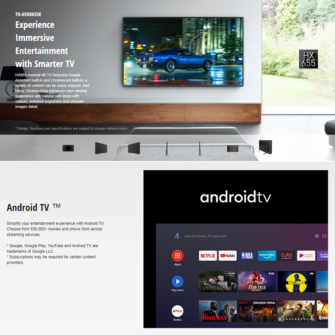 Panasonic 65" 4K UHD Android LED TV TH-65HX655K | Chromecast Built-In | Google Assistant | USB | HDMI | Ethernet LAN | Digital Audio | Smart TV with 2 Year Warranty