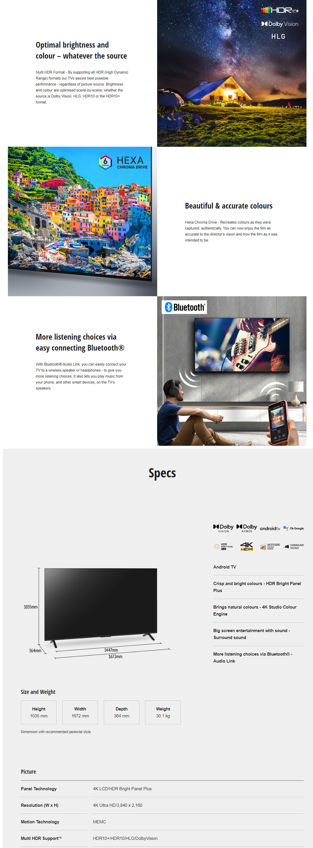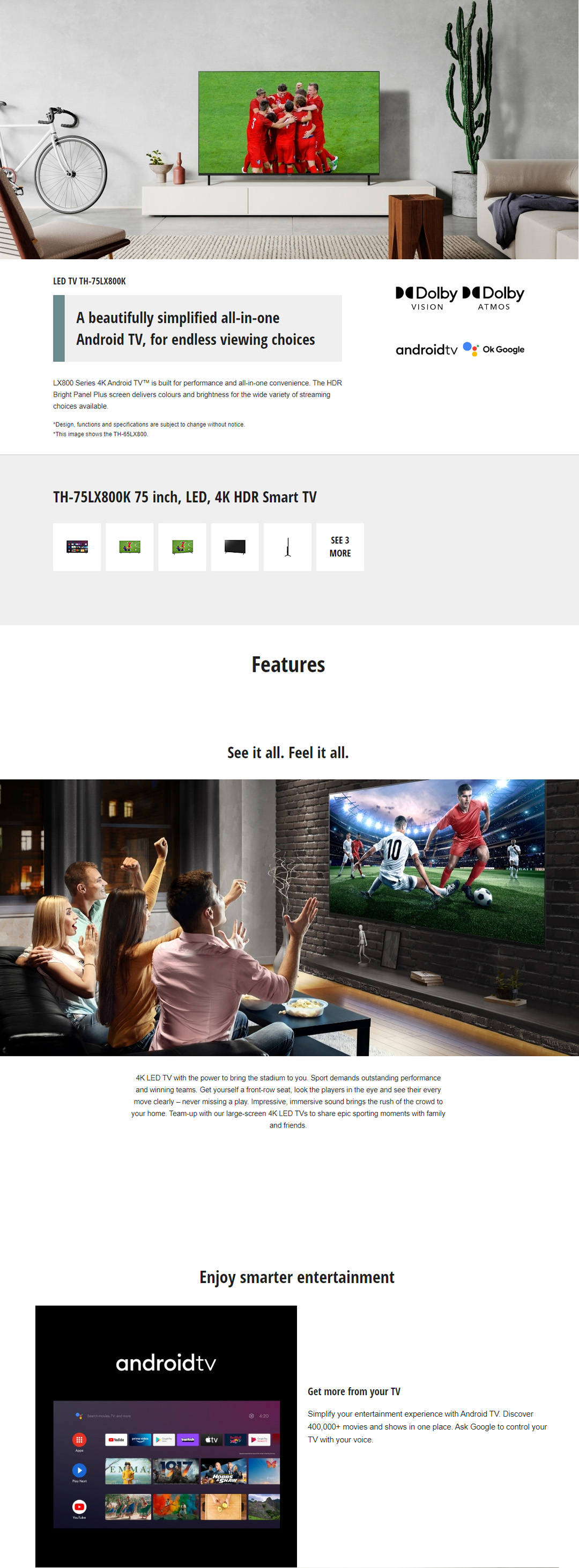 Panasonic 75" 4K HDR Smart LED TV TH-75LX800K | Dolby ATMOS | Enjoy Smarter Entertainment | Big screen entertainment with sound - Surround sound | Smart TV with 1 Year Warranty