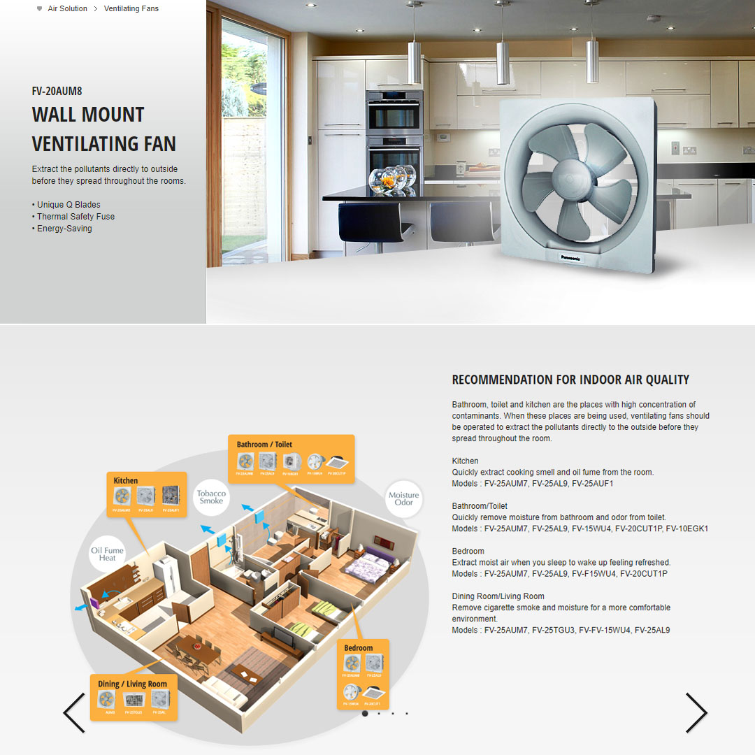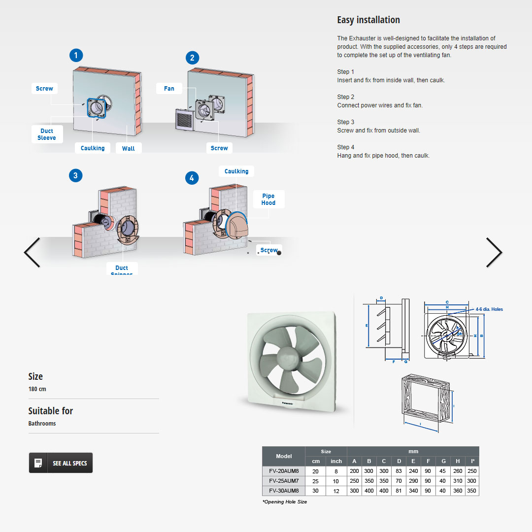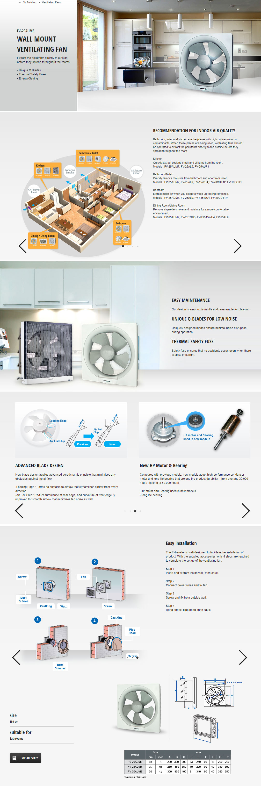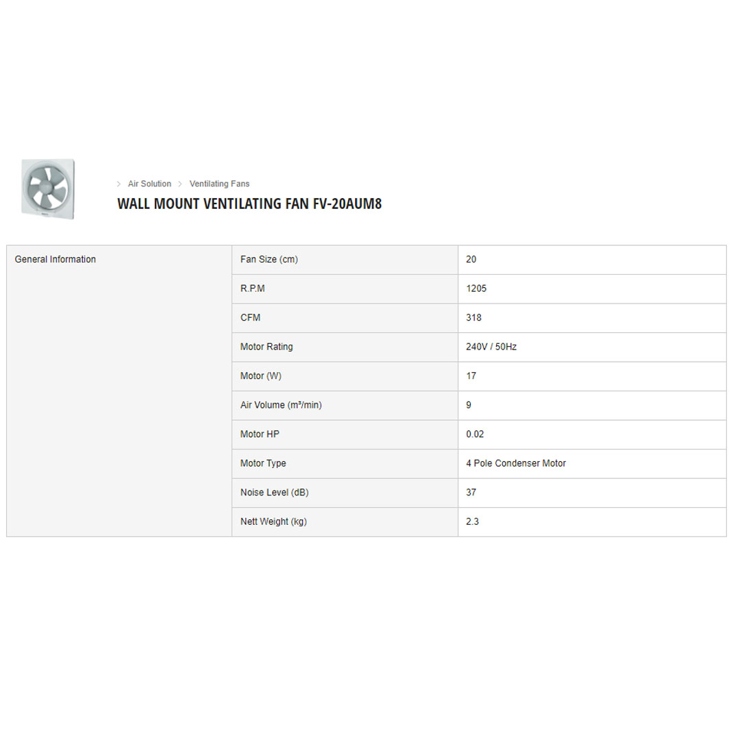 Panasonic 8" Wall Mount Ventilation Fan FV-20AUM8 | Unique Q Blades | Thermal Safety Fuse | Energy-Saving | Ventilation Fan with 1 Year Warranty