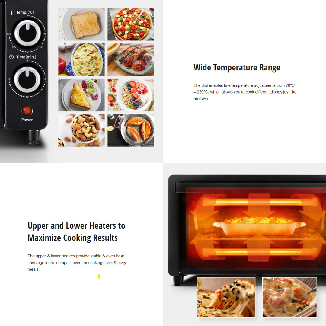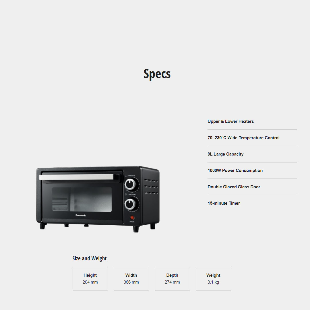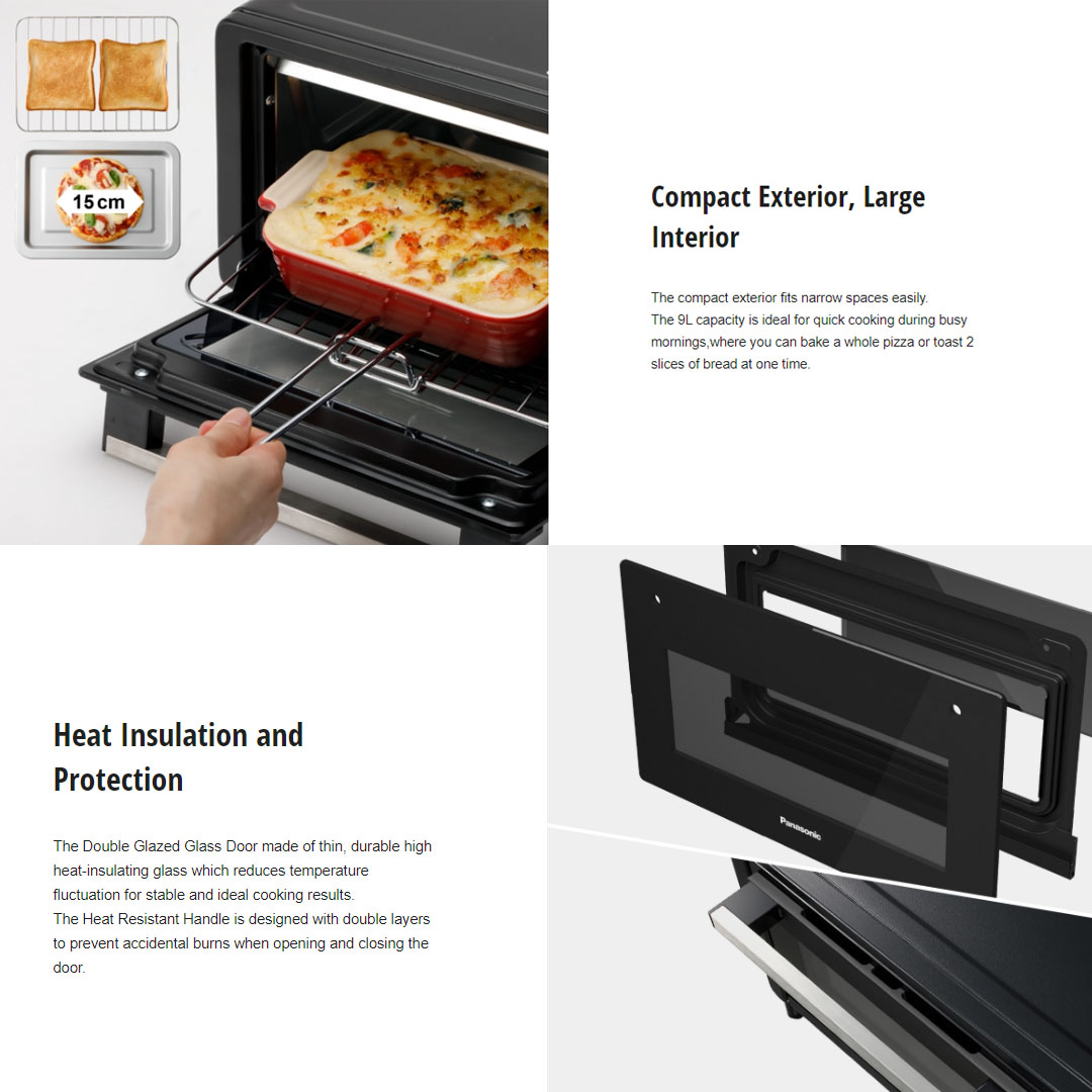 Panasonic 9L Compact Toaster Oven NT-H900KSK | Double Glazed Glass Door | 1000W Power Consumption | Upper & Lower Heaters | Toaster Oven with 1 Year Warranty