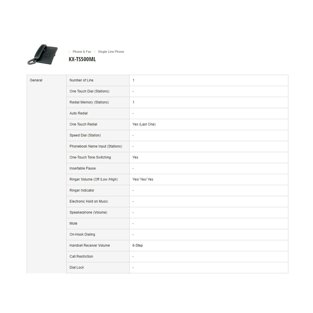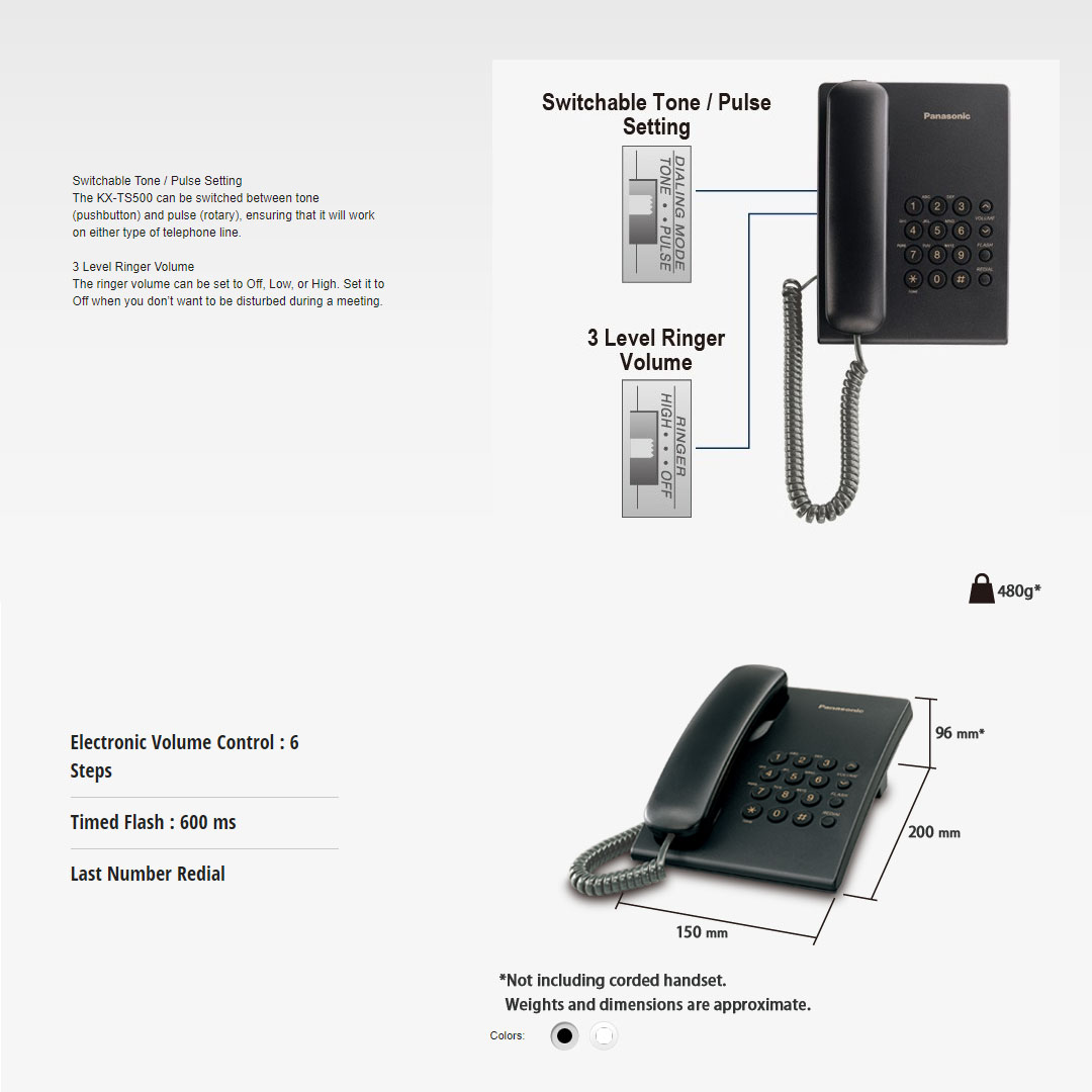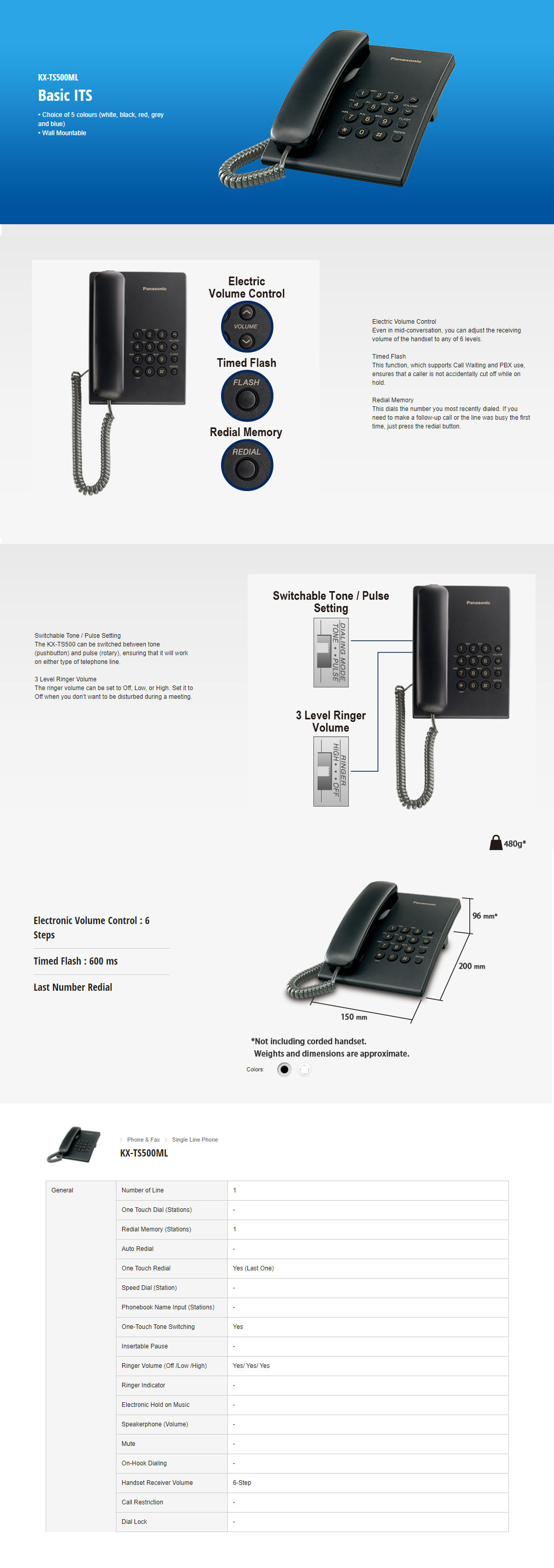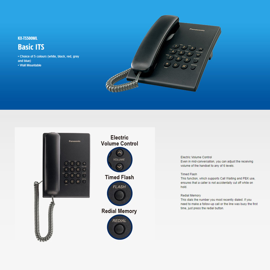 Panasonic Basic Phone KX-TS500MLB | Electronic Volume Control | Last number redial | Wall Mountable | Phone with 1 Year Warranty