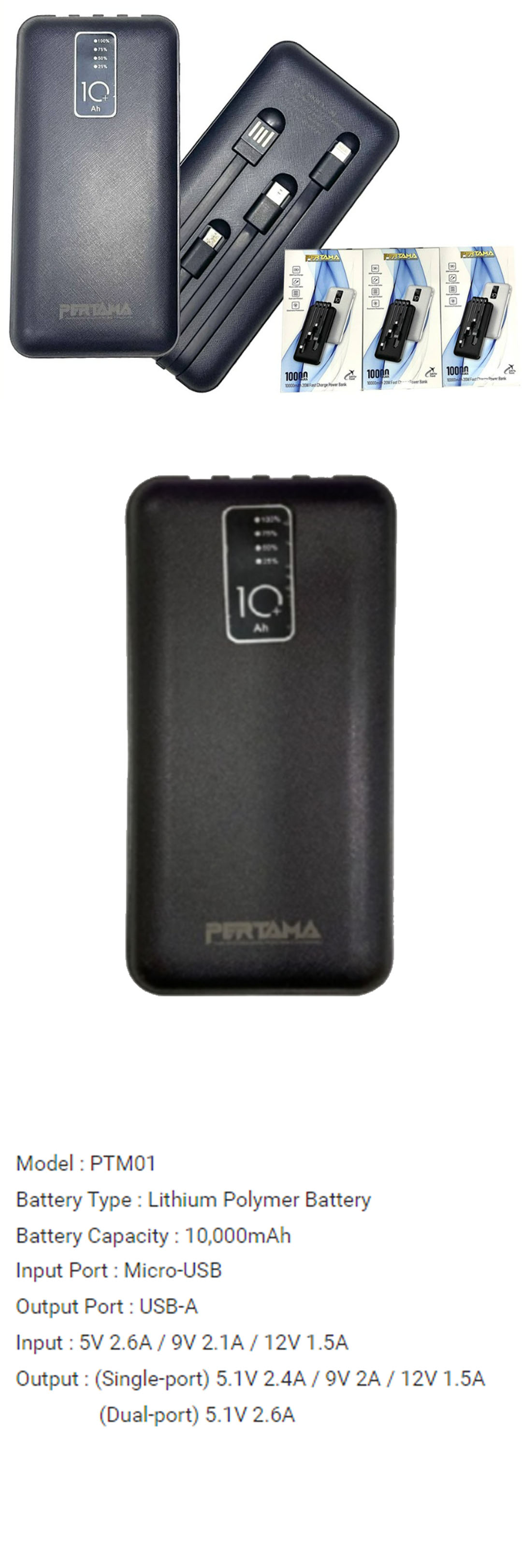Pertama 10000mAh Power Bank (Chinese Version) PTM01 | Lithium Polymer Battery | Micro-USB | USB-A |