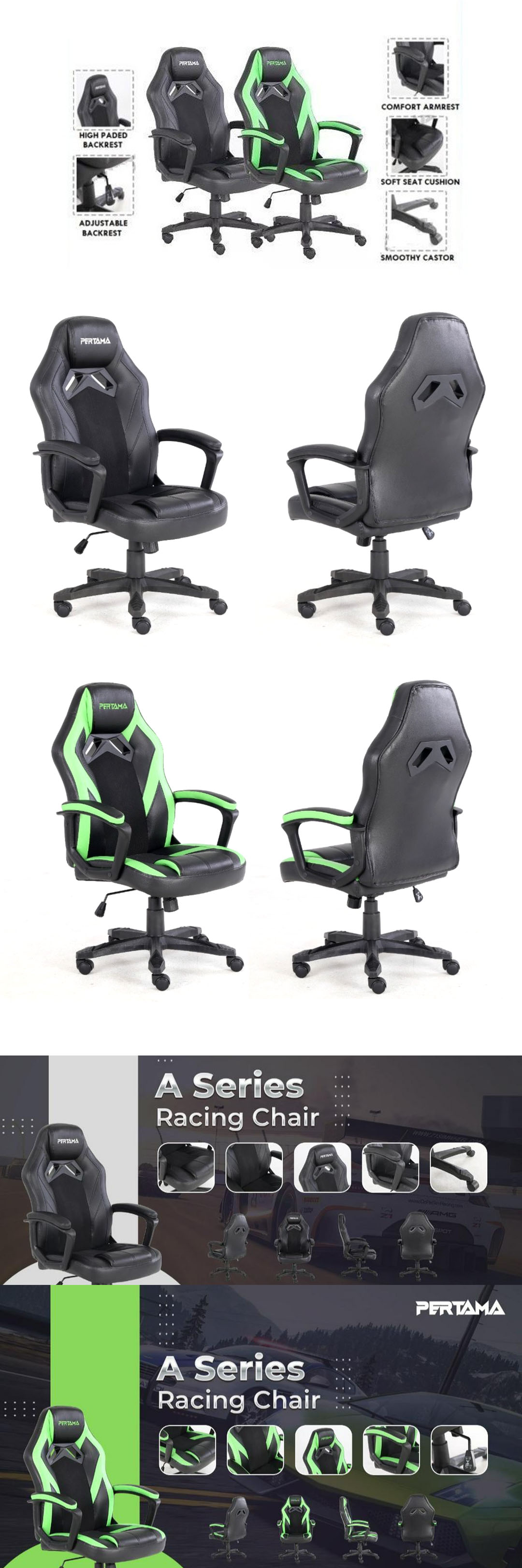 Pertama A Series Gaming Chair / Office Chair | High Padded Backrest | Comfort Armrest | Soft Seat Cushion | Adjustable Backrest | Gaming Chair with 2 Year Warranty