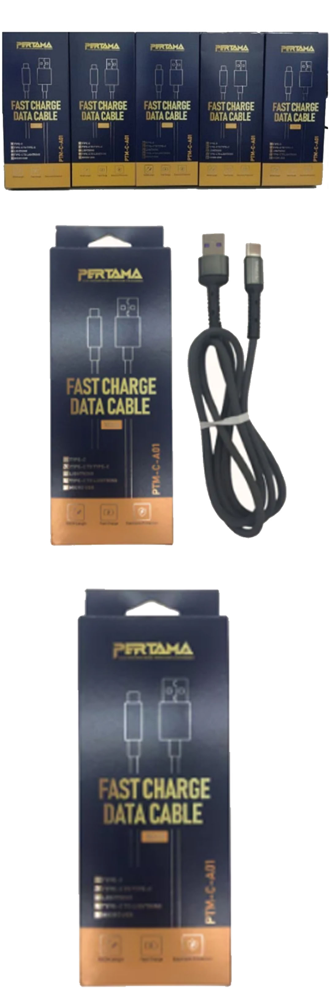Pertama Fast Charge Data Cable PTM-C-A01 | Type C to Type C /Type C to Lighting/Micro USB/Type C /Lighting | Output 3.1A | Line length: 100cm | Fast Charging |