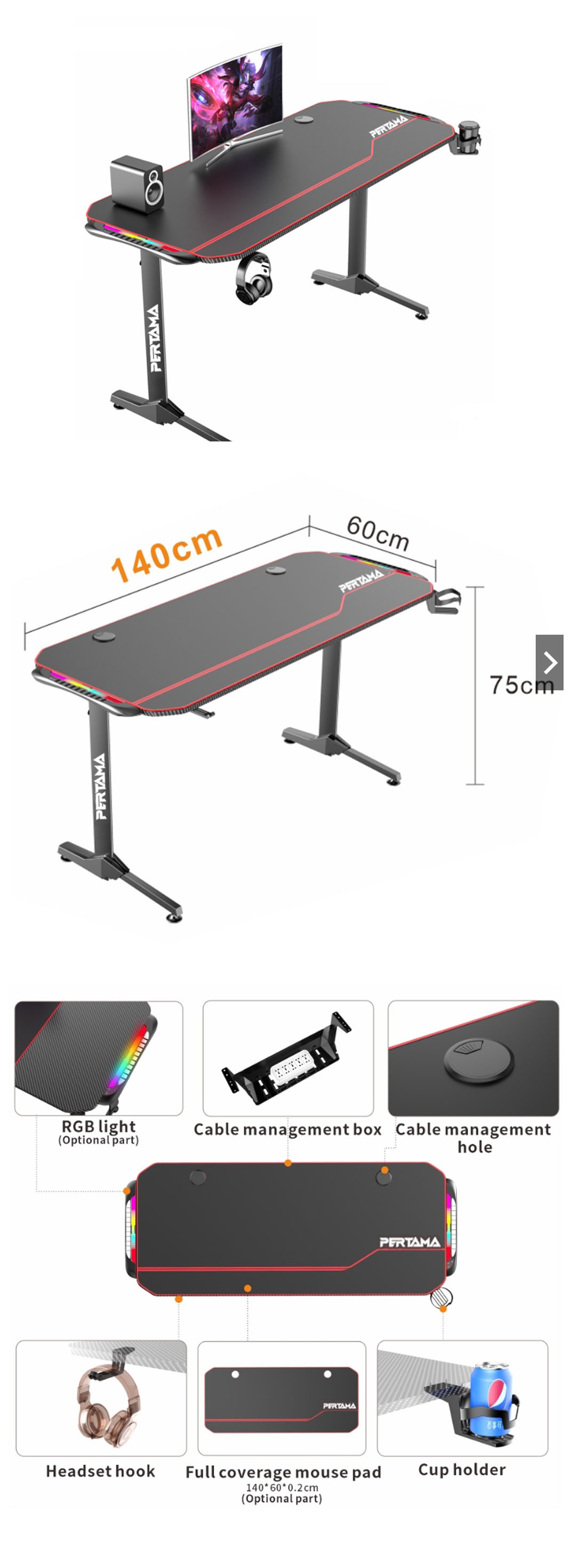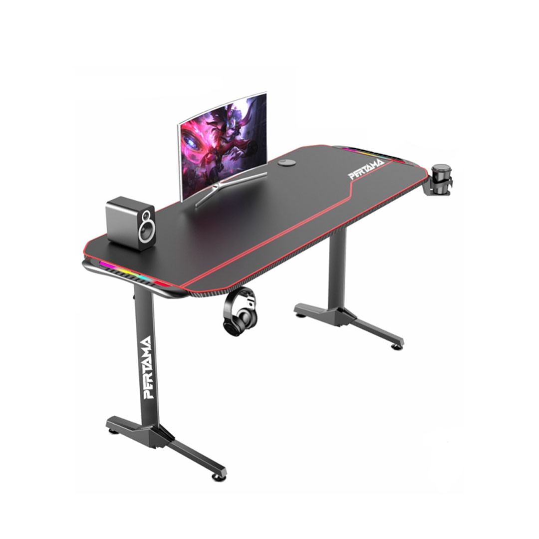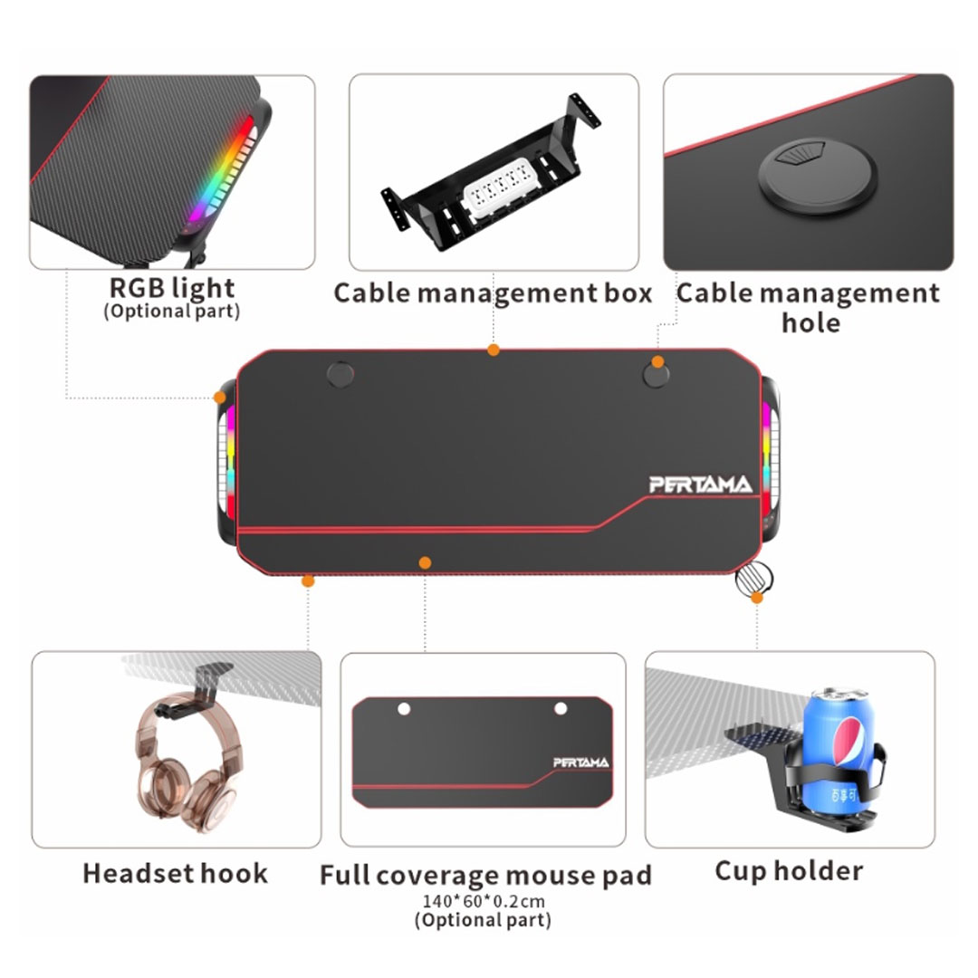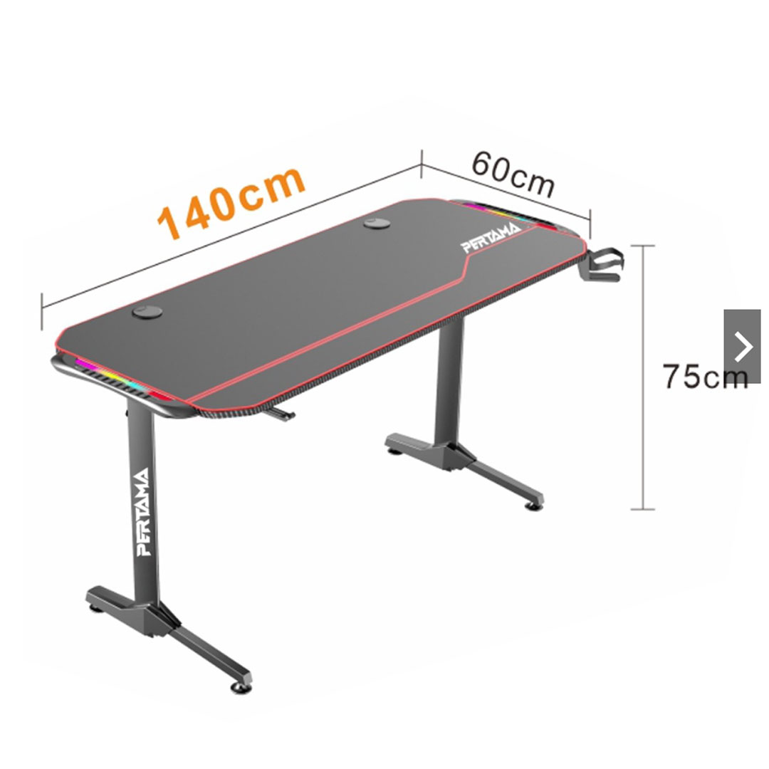 Pertama NV1 Gaming Desk Gaming Table | Non-slip Carbon Fiber Tabletop | Dimension: 140 X 60 X 75 CM | With Headset Hook & Cup Holder | Gaming Table with 2 Years Warranty