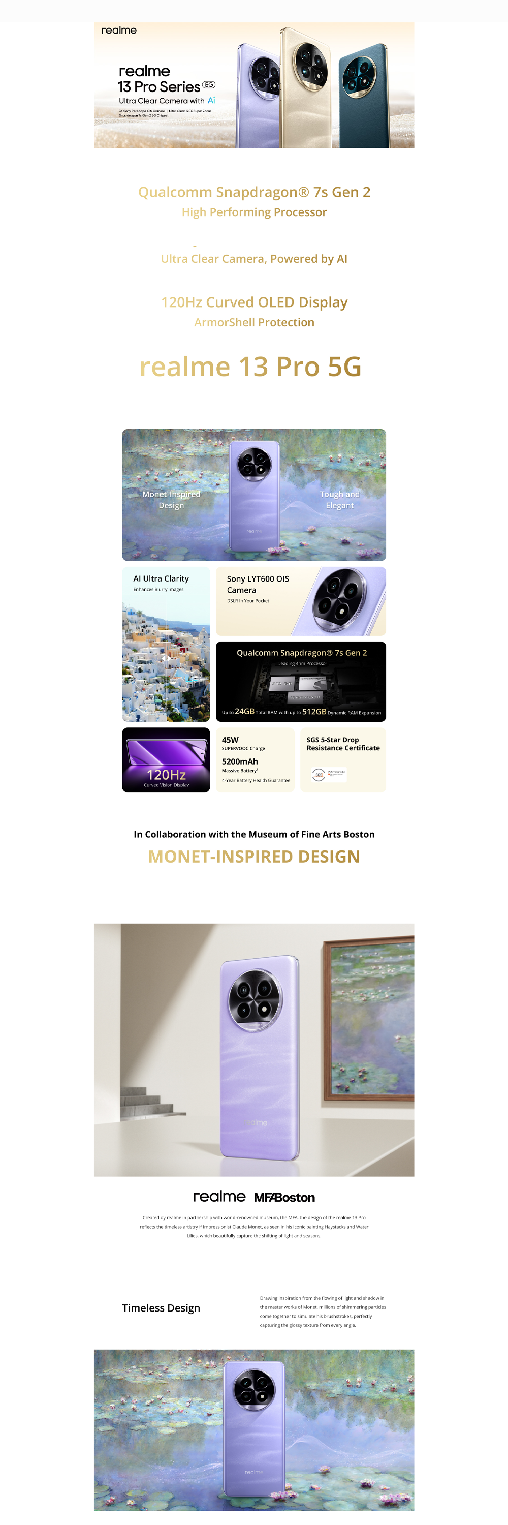 Realme 13 Pro 5G 12GB+512GB | 6.7 inches OLED | 50MP Sony LYT-600 OIS Camera | Snapdragon 7s Gen 2, Octa-core up to 2.4Ghz | Li-Po 5200mAh