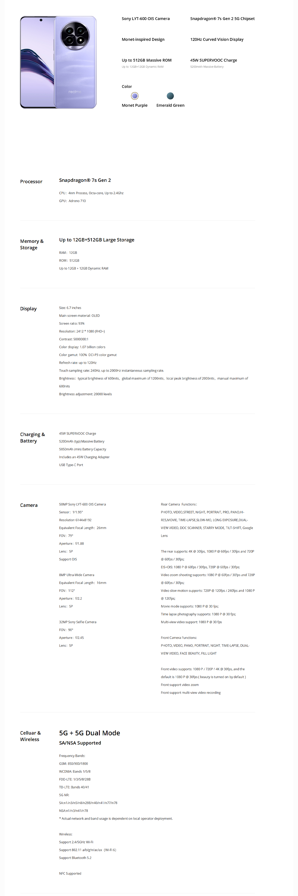 ▪ Operating System : realme UI 5.0, Android 14